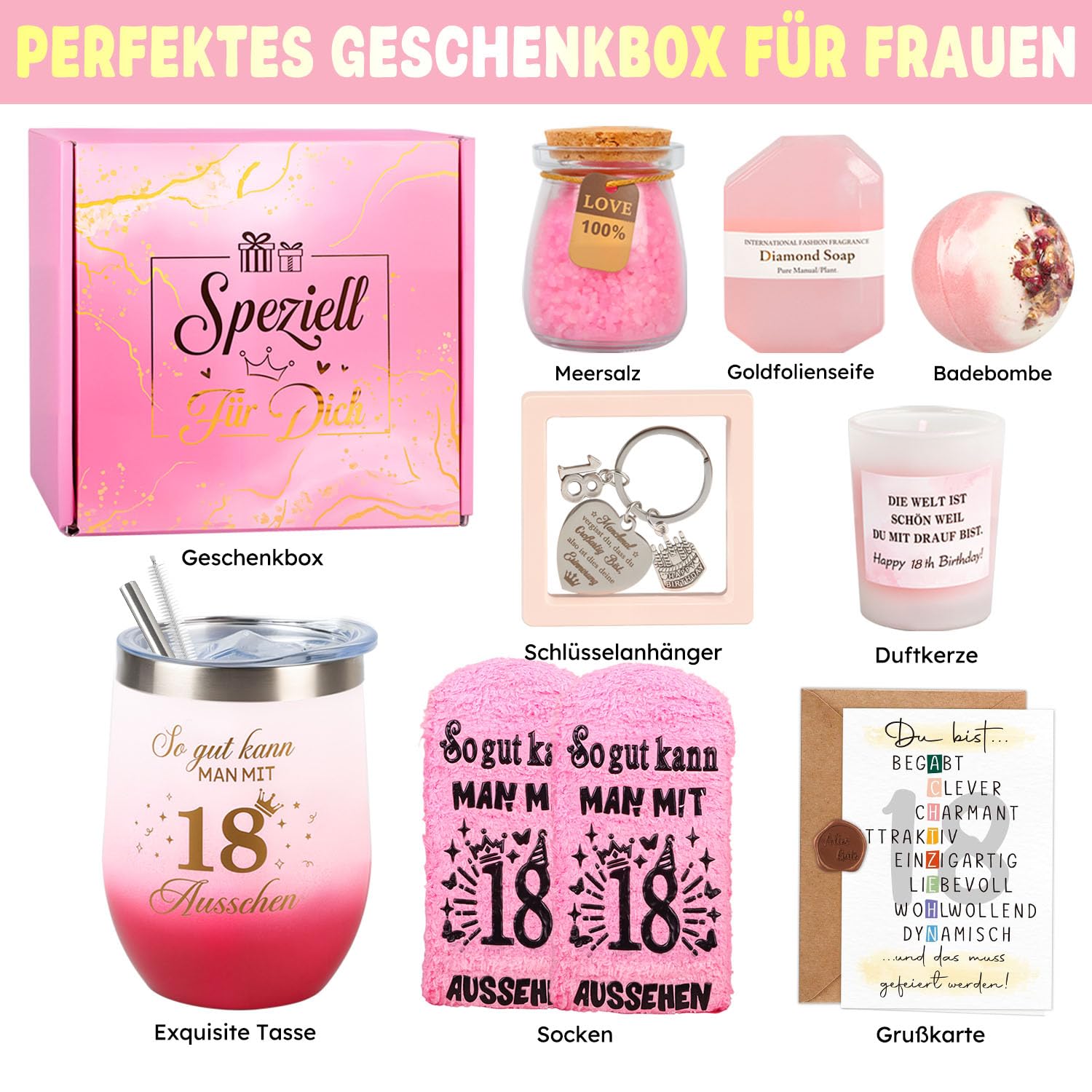 Giftota 18. Geburtstag Mädchen, Geschenke zum 18 Geburtstag Mädchen Geschenke für Frauen, Geburtstagsgeschenk Rituals Geschenkset frauen Geburtstagsgeschenk für Schwester Beste Freundin Klassenkamerad