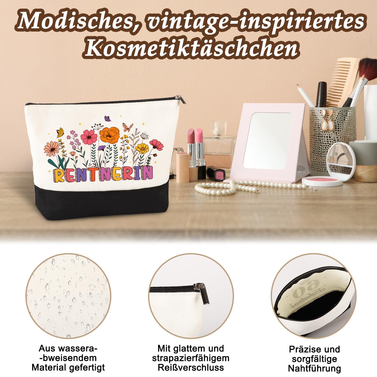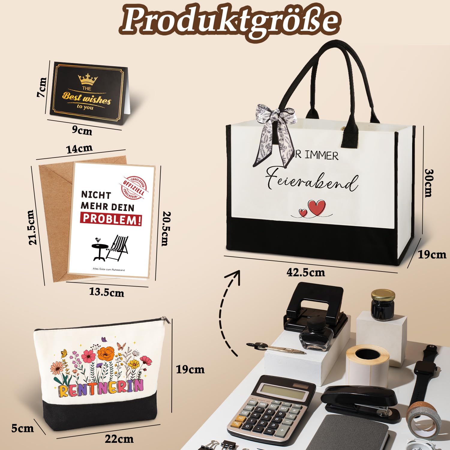 Giftota Rentnerin Geschenk Set – Abschiedsgeschenk zum Ruhestand mit Canvas Tasche & Kosmetiktasche
