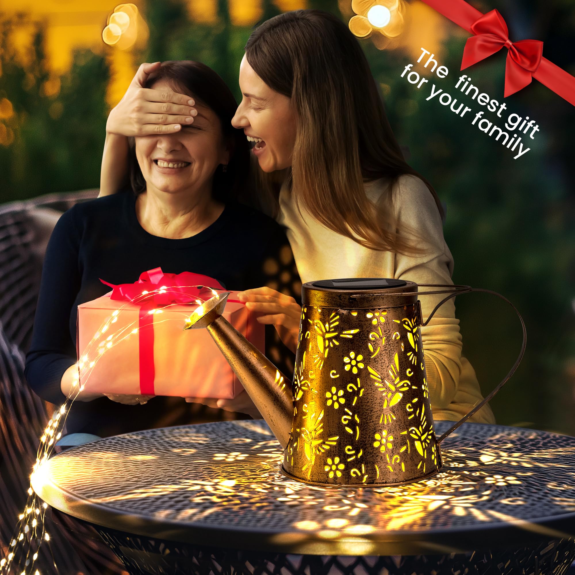 GIGALUMI Solarlampen für aussen, Gartendeko für aussen, Wasserdicht LED giesskanne,Solar Hängelaterne mit Halterung, für Garten, Rasen, Weg, Terrasse (Kolibri)