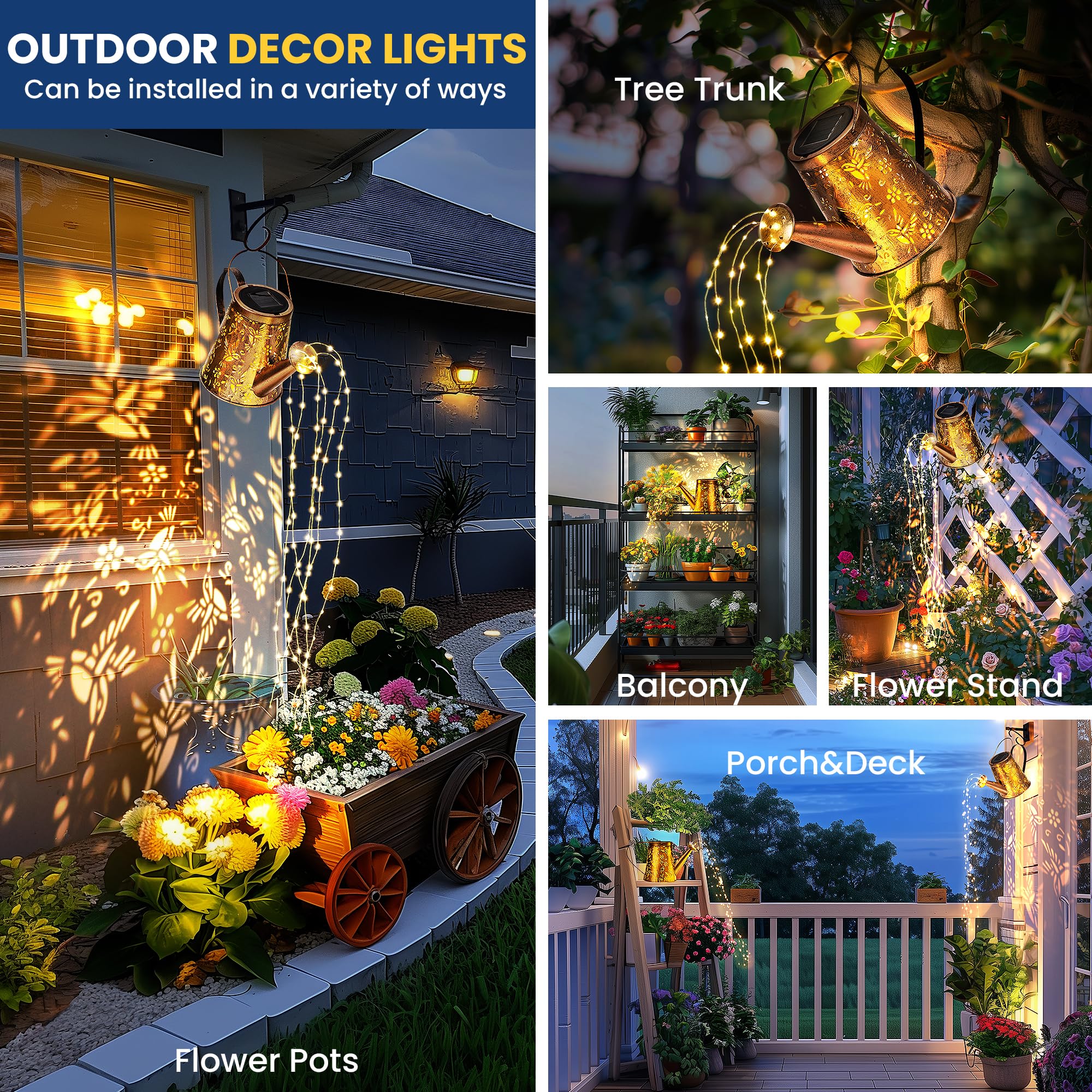 【Einzigartige Aussendekor】Solar-Gartenleuchten mit einem einzigartigen Giesskannen-Design und Kolibri-Ausschnitt, projizieren Lichtpunkte in mehrere Richtungen. Die Lichtstränge des Auslaufs imitieren das Bewässern und können in Kombination mit Grün, Skulptur verwendet werden 【Umweltfreundliche Beleuchtung】Solarleuchten aussen laden sich tagsüber automatisch 6-8 Stunden lang auf und bieten nachts eine Beleuchtung für 8-12 Stunden. Keine Verkabelung oder externe Stromversorgung erforderlich, wodurch sie umweltfreundlich und energiesparend sind 【Premium-Leistung】 Dieses Bewässerungslicht besteht aus hochwertigem Metall, das wasserdicht und korrosionsbeständig ist. Sie müssen sich keine Sorgen machen, es an regnerischen oder verschneiten Tagen zu verwenden 【Einfach zu montieren und zu verwenden】Gartenornamente im Freien müssen nur den mitgelieferten 39-Zoll-Schäferhaken (höhenverstellbar) zusammenbauen, den Schalter einschalten und in den weichen Boden stecken. (Es kann auch direkt platziert oder aufgehängt werden) 【Perfektes Dekorationsgeschenk】Solarbetriebene Giesskannenlichter verleihen Ihrem Garten, Blumenbeeten, Terrassen, Ästen, Topfpflanzen usw. einen charmanten Glanz. Es ist ein besonderes Gartengeschenk für alle, die Gartendekoration im Freien lieben.