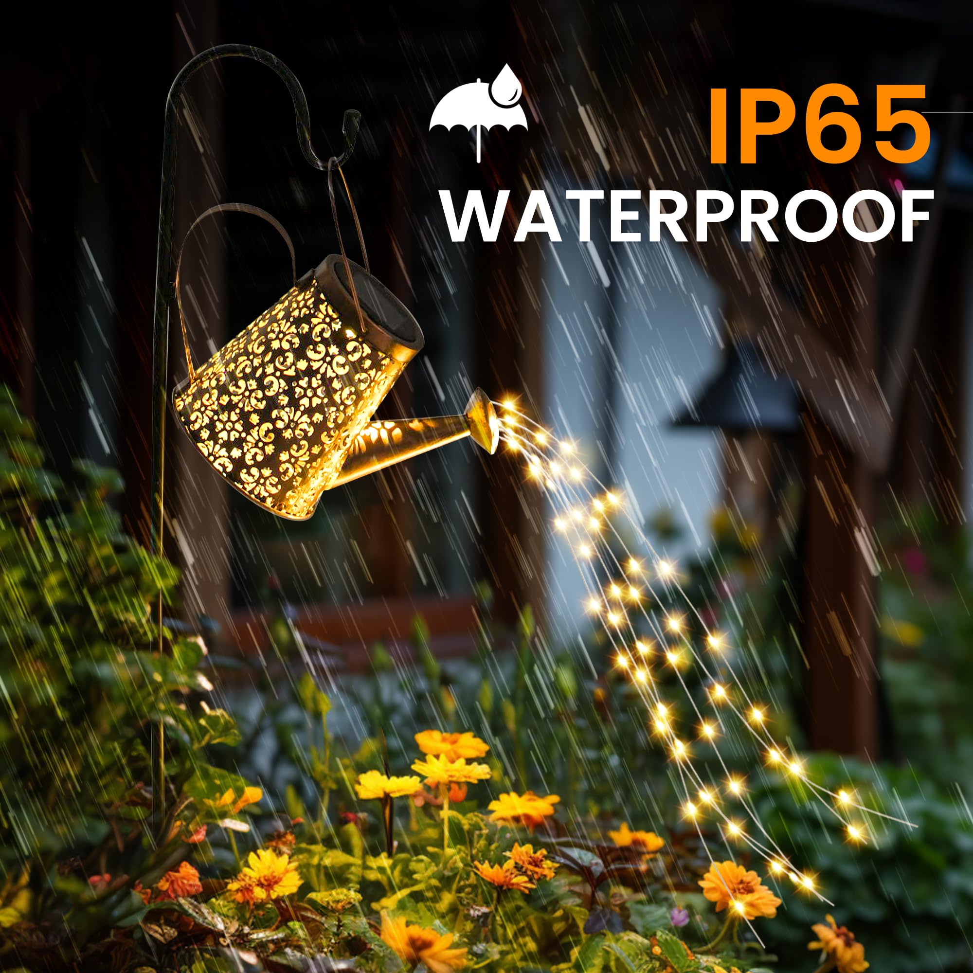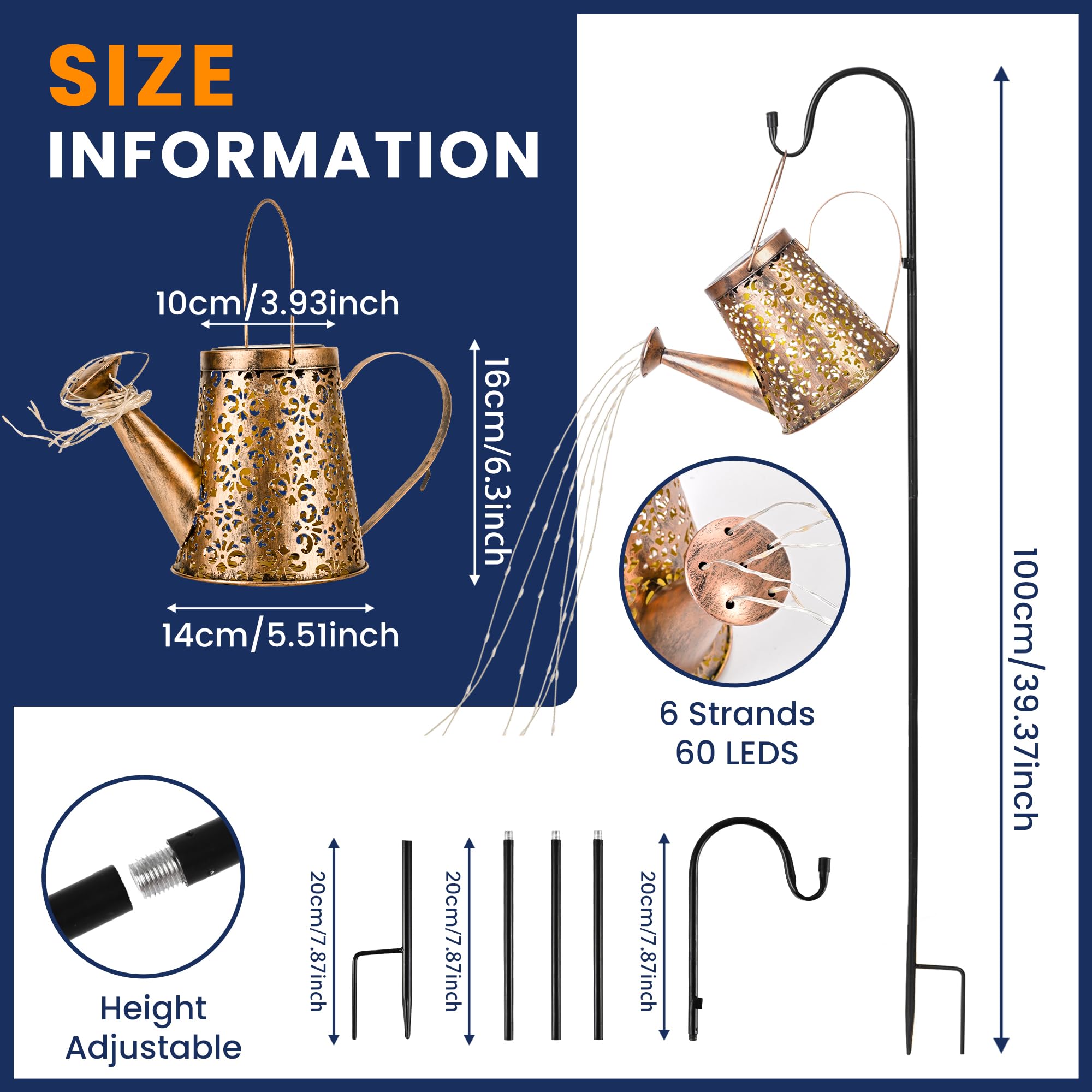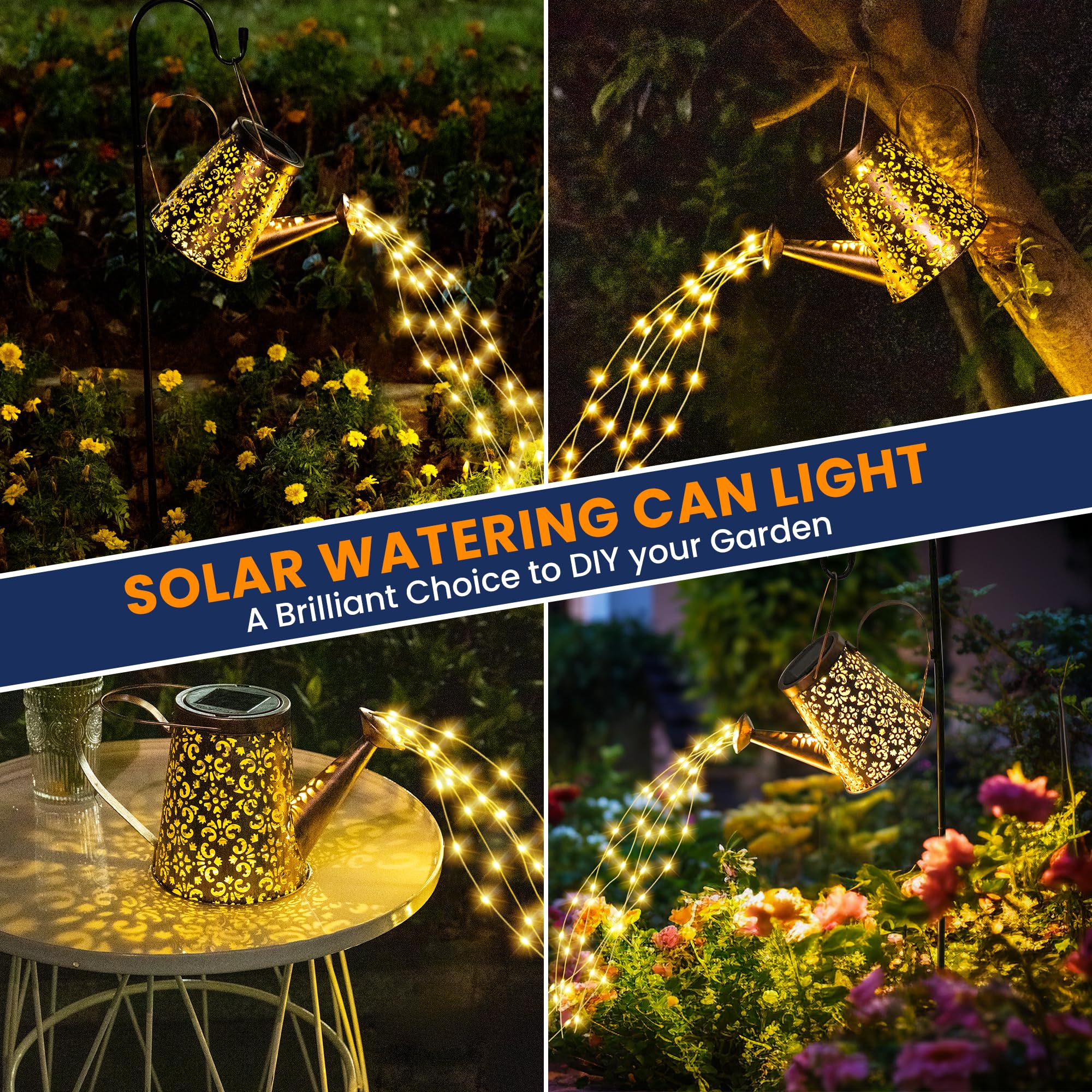 Einzigartige DIY-Giesskanne-Leuchte: Diese Solar Gartenleuchte besteht aus 6 Lichtketten und 61 LEDs. Mit ihrem einzigartigen Sprühkopf und dem hohlen Design kann sie nachts wunderschöne Muster in verschiedene Richtungen leuchten Automatisches EIN-/AUS & Umweltschutz: Die Giesskanne-Leuchte nutzt Sonnenenergie, um Licht zu erzeugen. Es lädt tagsüber 6-8 Stunden lang unter Sonneneinstrahlung und schaltet automatisch nachts ein, um 8-10 Stunden lang zu leuchten Langlebig & Wetterfest: Die Solar-Giesskanne besteht aus hochwertigem Metall, das wasserdicht und korrosionsbeständig ist, sodass Sie sich keine Sorgen machen müssen, wenn Sie sie an regnerischen oder verschneiten Tagen verwenden Einfache Installation: Es muss lediglich mit dem mitgelieferten 100 cm langen Hirtenhaken (höhenverstellbar) zusammengebaut, eingeschaltet und in den weichen Boden gesteckt werden (Sie kann auch direkt aufgestellt oder aufgehängt werden) Perfekte Dekoration & Geschenk: Solarbetriebene Giesskannenleuchten verleihen Garten, Blumenbeeten, Terrassen, Ästen, Topfpflanzen usw. Es ist ein besonderes Gartengeschenk für alle, die Garten-Dekoration im Freien lieben