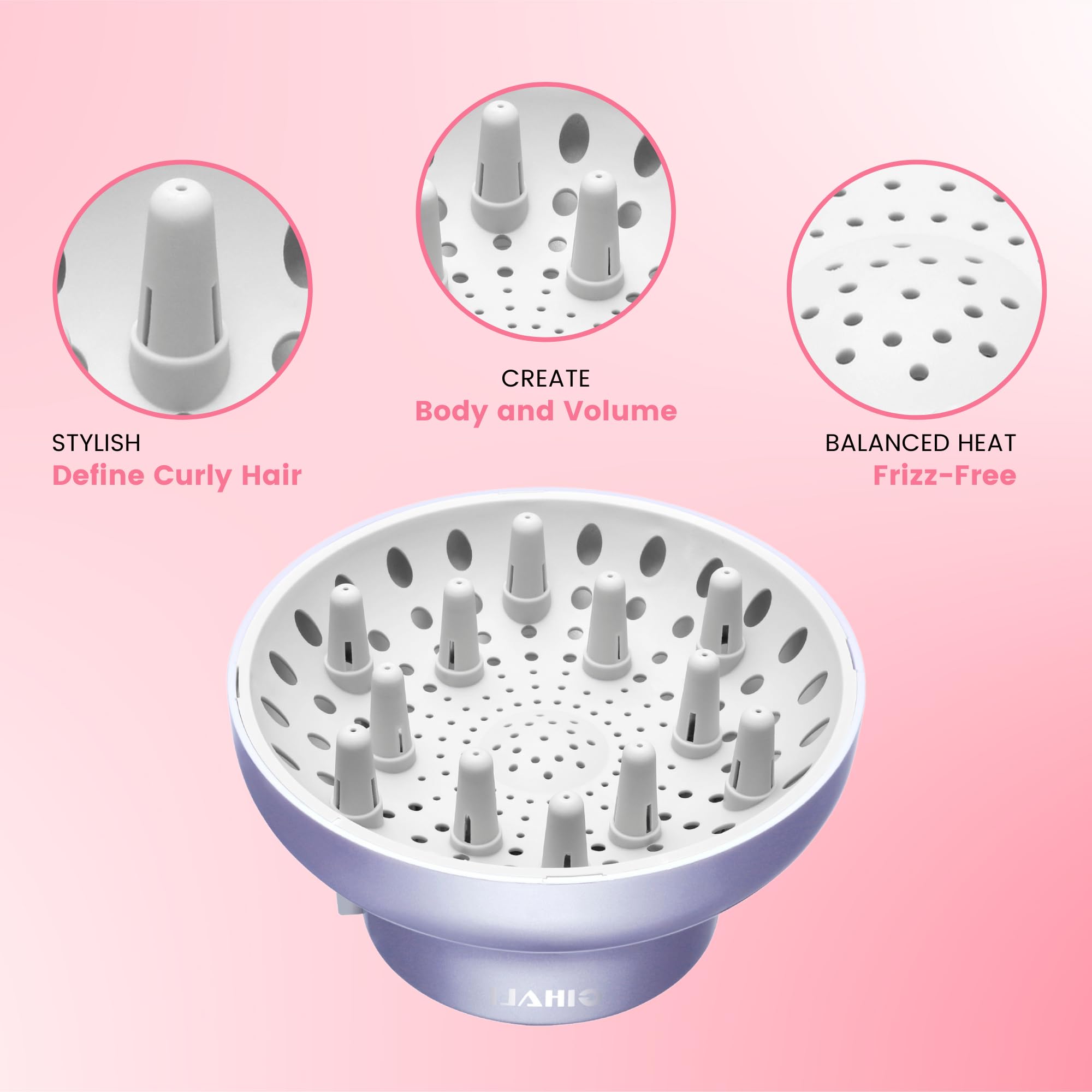 GIHALI Haar Diffusor "Super Stabil" 4,4–6,6 cm für lockiges und welliges Haar, Universalaufsatz für Haartrockner, Diffuser Haare Locken (Lavanda)