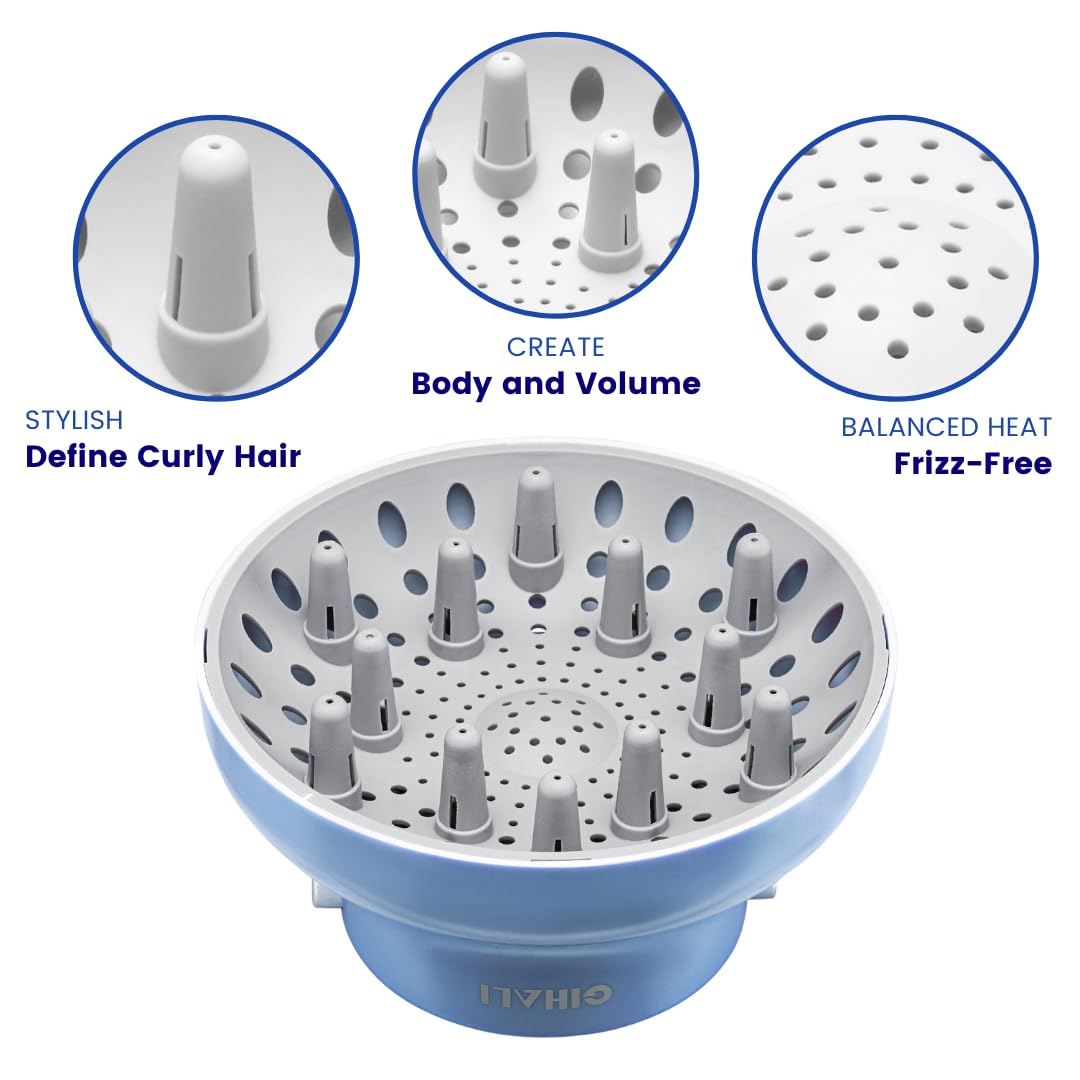 Erzielen Sie perfekte, frizzfreie Locken mit dem universellen Haardiffusor von GIHALI, der speziell für natürlich lockiges und welliges Haar entwickelt wurde. Dieser äusserst robuste Diffusor passt auf Haartrockner mit Düsen von 4,4 cm bis 6,6 cm Durchmesser und bietet eine sichere, leicht anzubringende Lösung, die ideal für Reisen ist. Für den täglichen Gebrauch konzipiert, verteilt er den Luftstrom gleichmässig, um Locken und Wellen zu definieren, ohne das Haar zu schädigen. Ob zu Hause oder unterwegs – GIHALI macht es einfach, professionelle Ergebnisse zu erzielen und Ihre Styling-Routine mit Komfort und Zuverlässigkeit zu revolutionieren