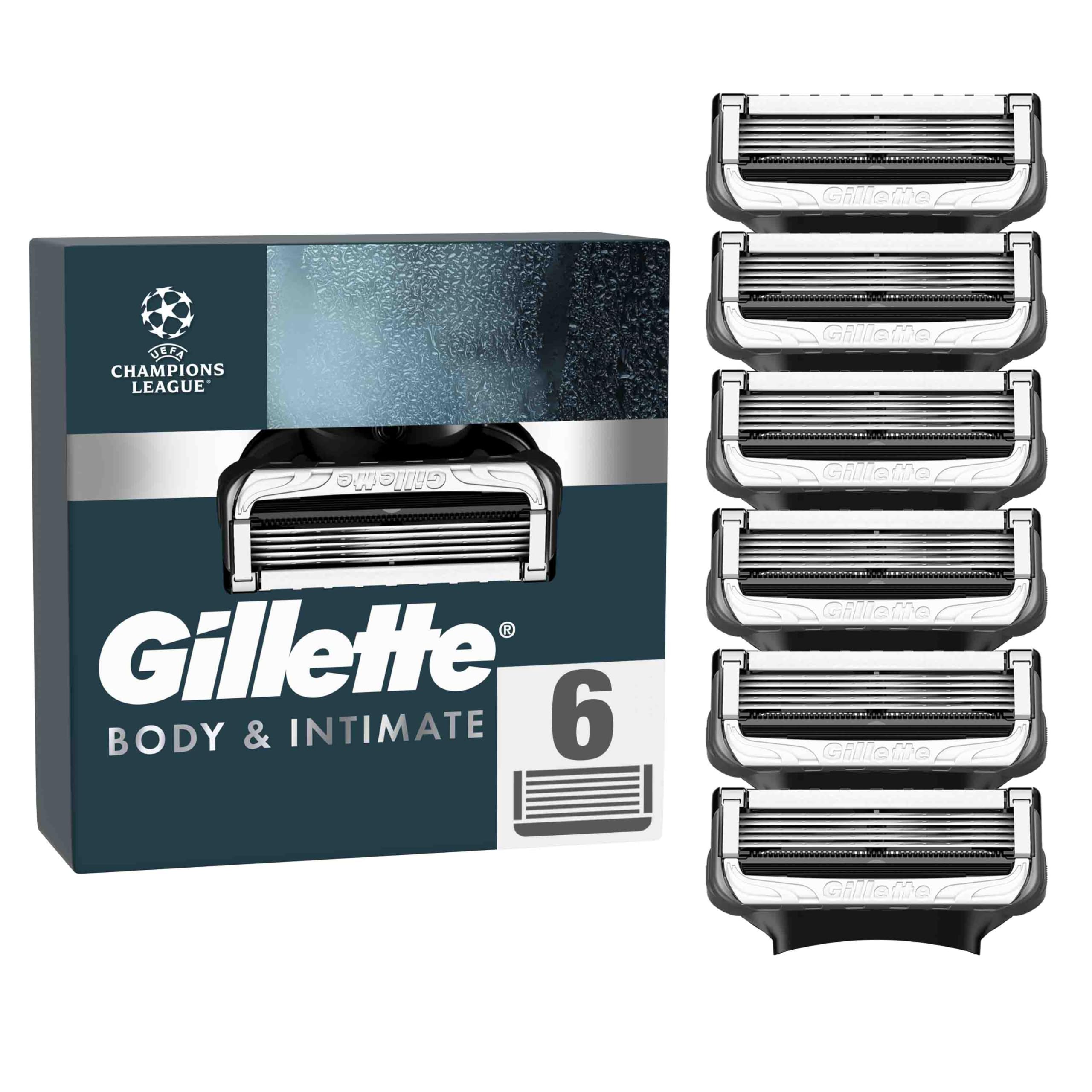 Gillette Intimate Rasierklingen für den Intimbereich, 6 Intimrasierer Ersatzklingen für Nassrasierer, mit Gleitstreifen für eine sanfte Anwendung, dermatologisch getestete Klingen für Rasierer