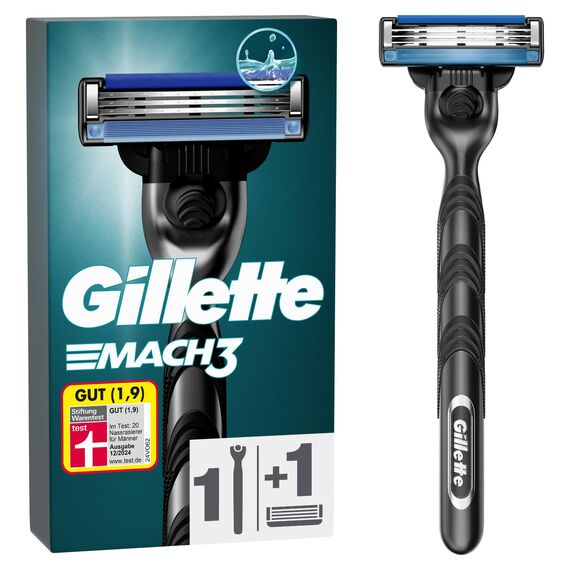 Der Gillette Mach3 Rasierer für Männer ist ein 3-Klingen-Rasierer für eine klassisch gründliche Rasur; der 3-Klingen-Rasierer für Männer verfügt über einen verbesserten Gleitstreifen, der für zusätzliche Gleitfähigkeit sorgt (im Vergleich zum bisherigen Mach3); der optimierte, schlanke Rasierergriff liegt gut in der Hand und ermöglicht eine gründliche Rasur mit Stil; der Rasierer für Männer mit Gleitstreifen verfügt über Klingen, die stärker als Stahl sind und bis zu 15 angenehme Rasuren ermöglichen; haben Sie Bedenken, dass Ihr Gillette-Griff nicht passen könnte? Alle Mach3-Ersatzklingen passen auf alle Mach 3-Rasierer-Griffe.