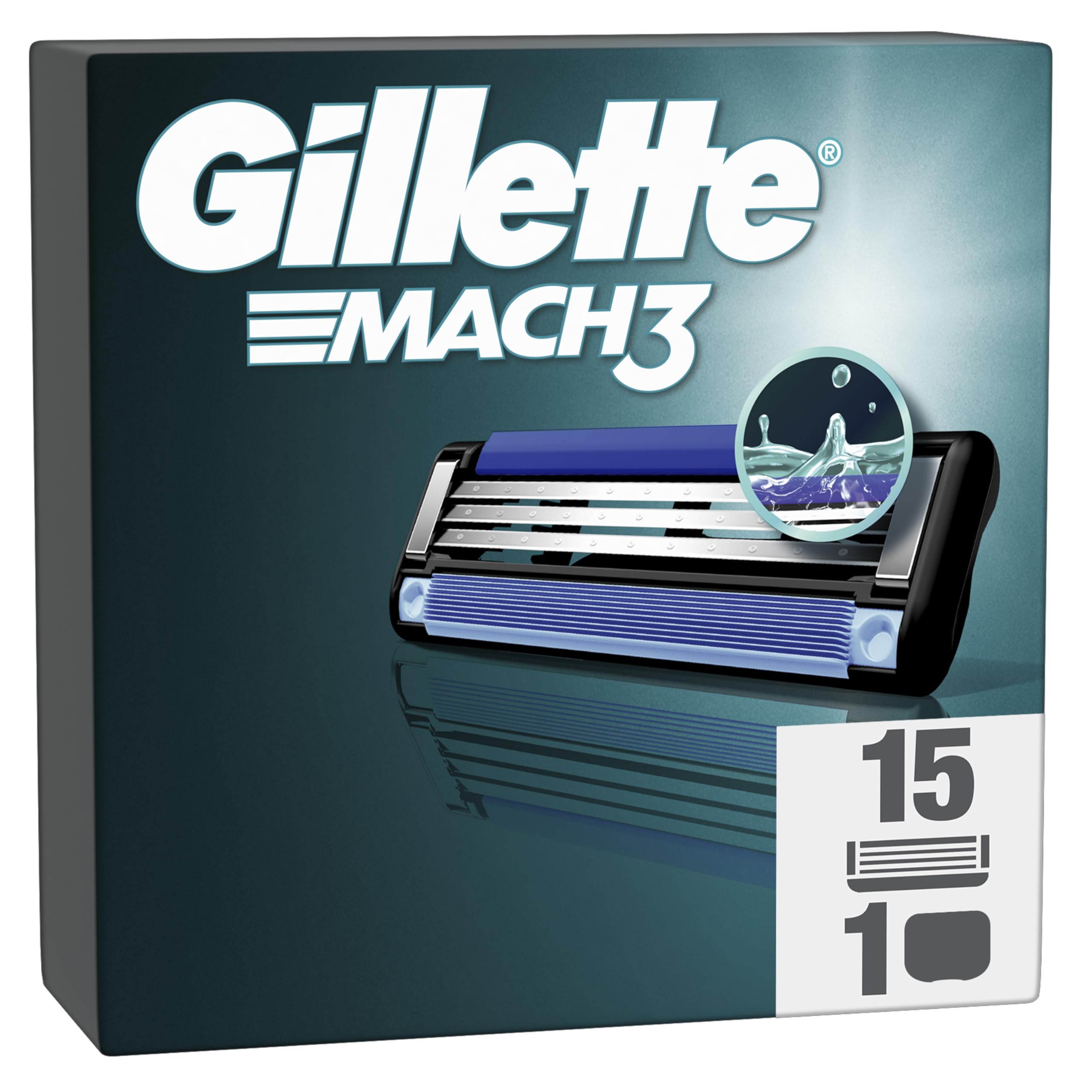 Gillette Mach3 Rasierklingen, 15 ORIGINAL Ersatzklingen, Klingen für Herren mit Gleitstreifen für ein sanftes Gleiten und NEUER Klingenbeschichtung — Inkl. Reiseschutzkappe