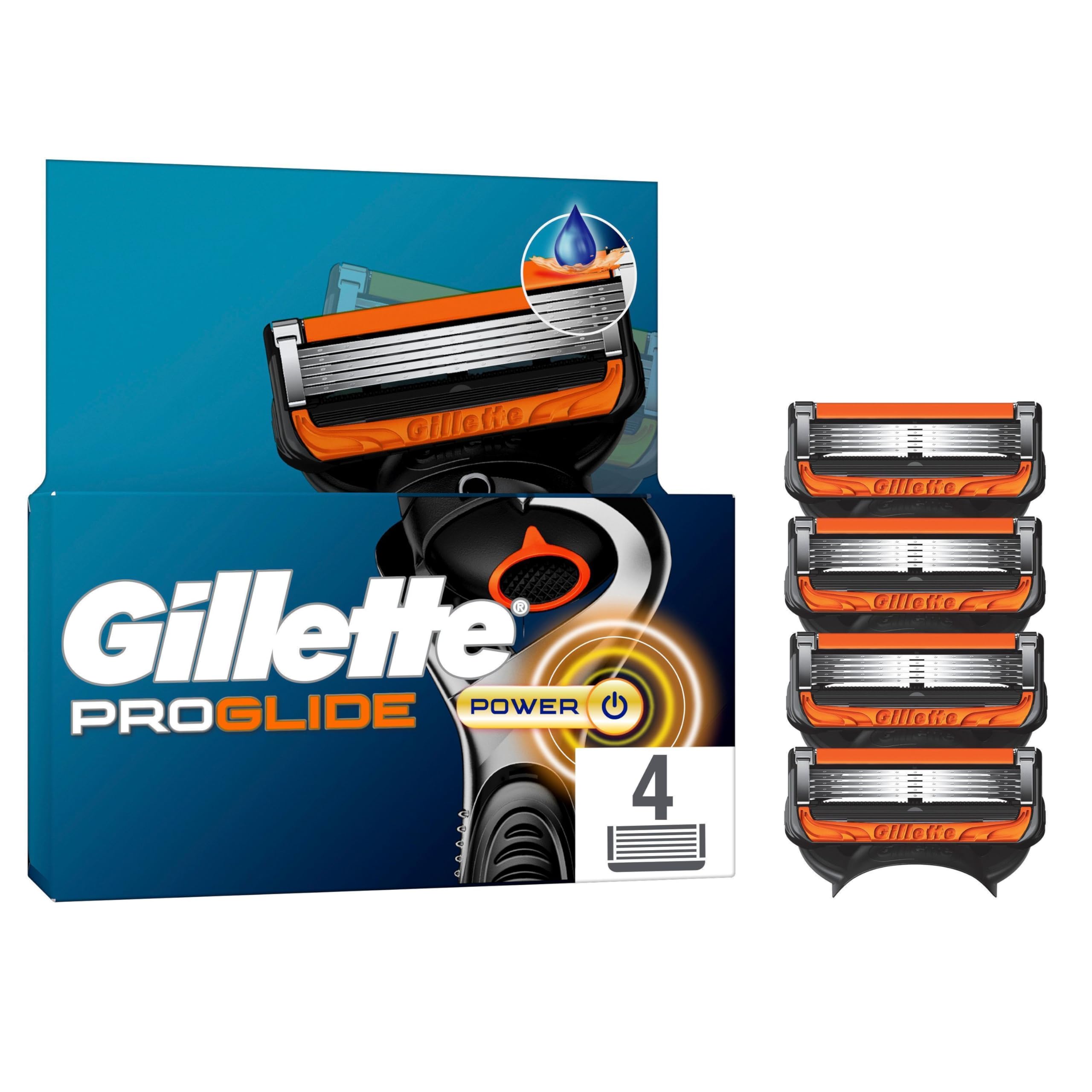 Gillette Proglide Power Klingen, 4 Original Ersatzklingen, Rasierklingen Herren, 2x Gleitstreifen vor und nach den Klingen und EverGlide Gleitstreifen für unglaubliche Gründlichkeit und Komfort