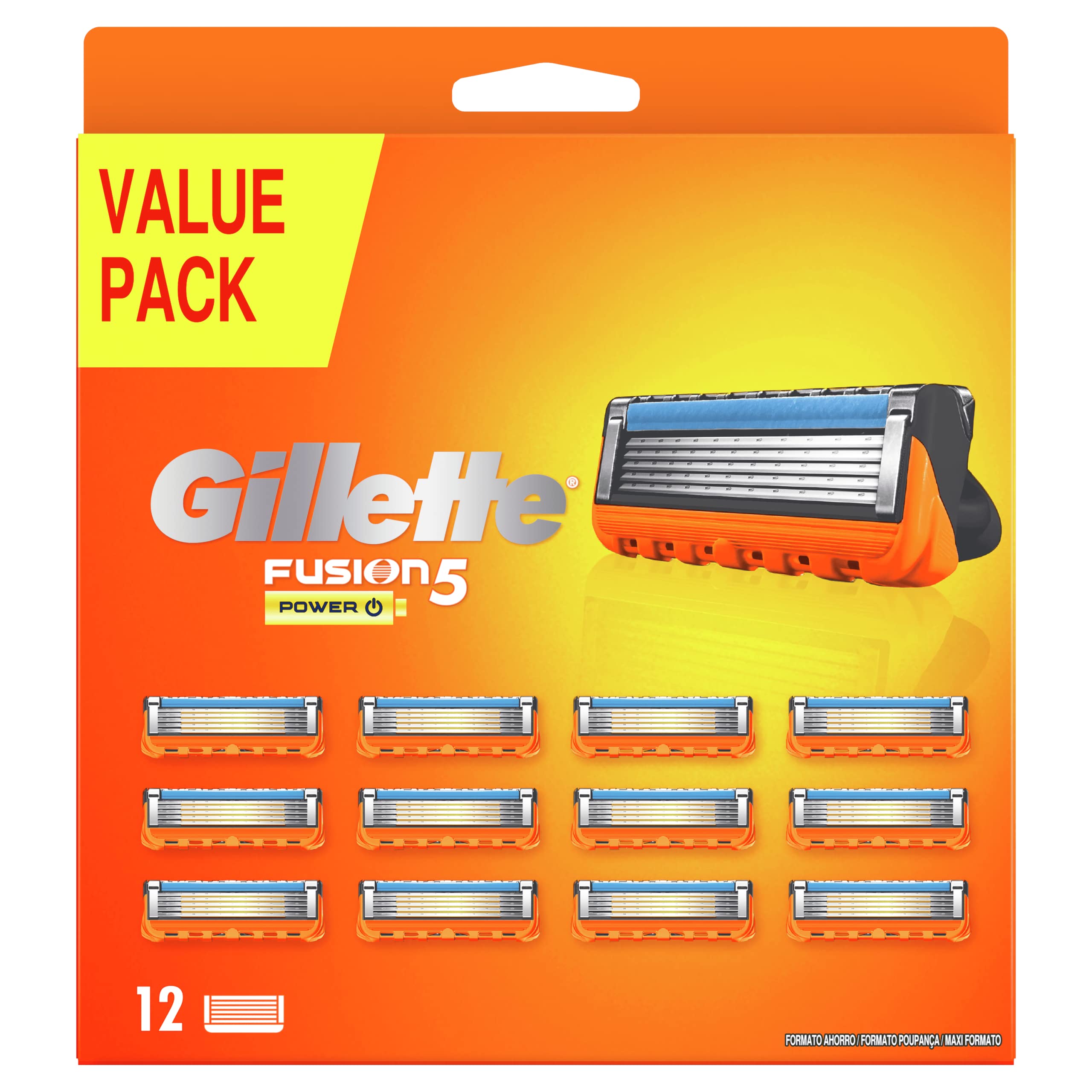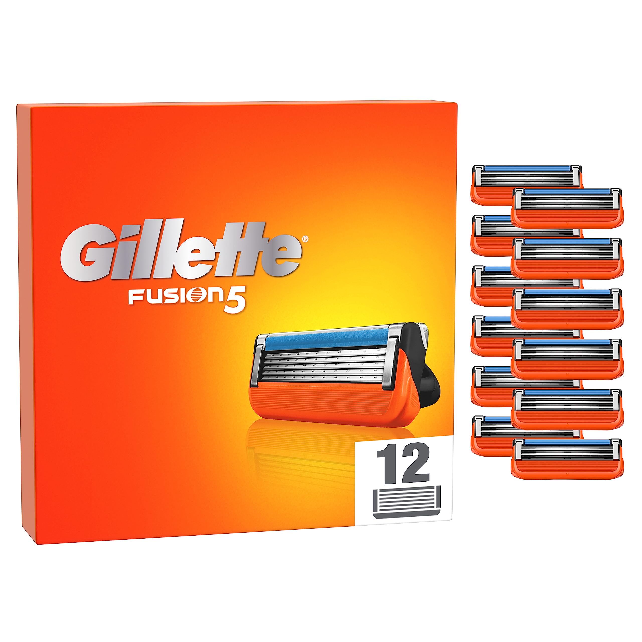 Gillette Fusion 5 Power Rasierklingen, 12 Ersatzklingen mit 5 Klingen, unübertroffene Härte, gleitende Rasur mit Gleitstreifen
