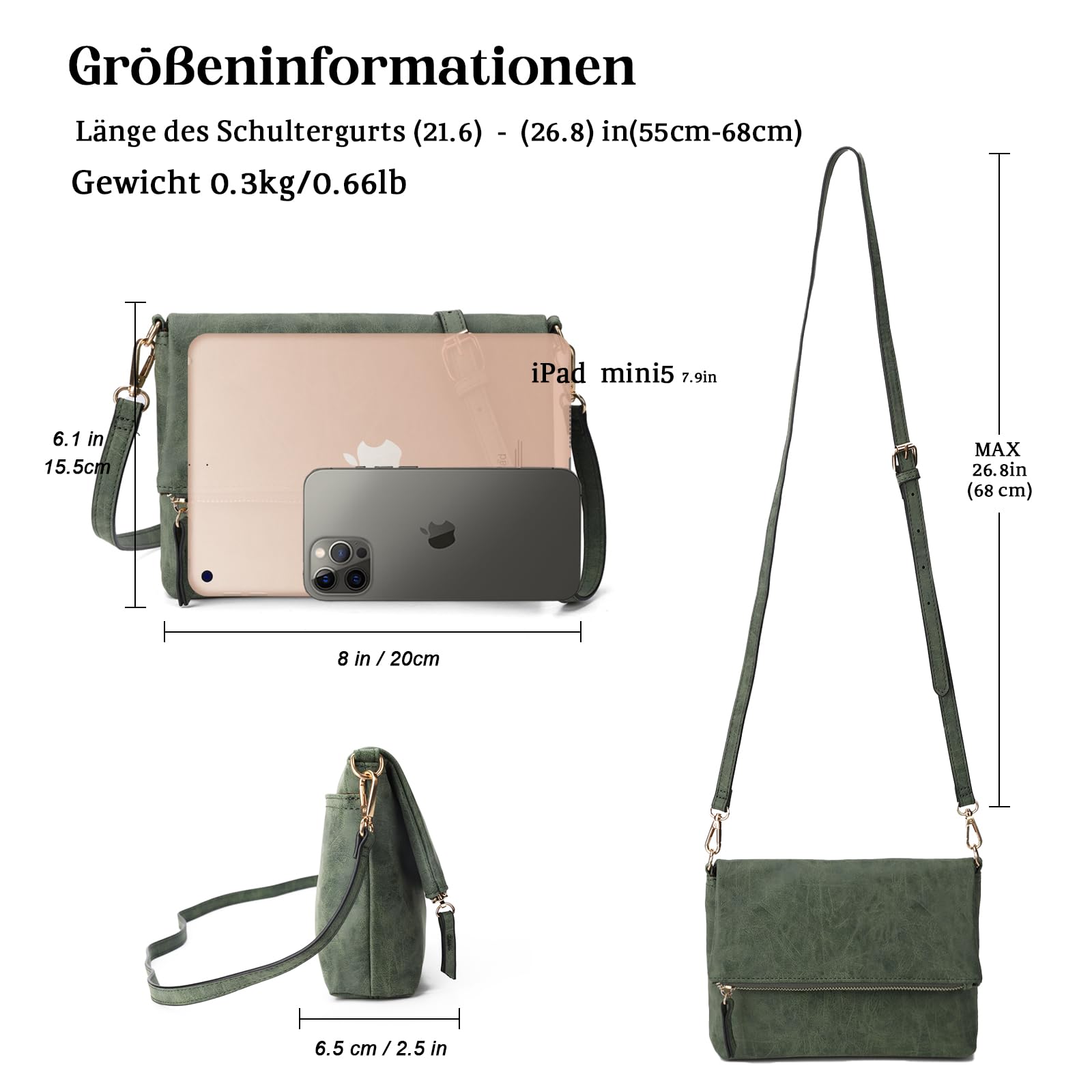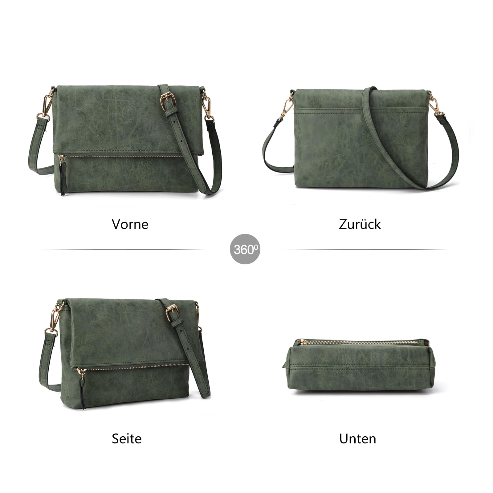 Gladdon Umhängetasche Damen Klein Handtasche,Crossbody Tasche Schultertasche Elegant Clutch Messenger PU-Leder Taschen Für Täglich Arbeit Einkaufen(Dunkelgrün)