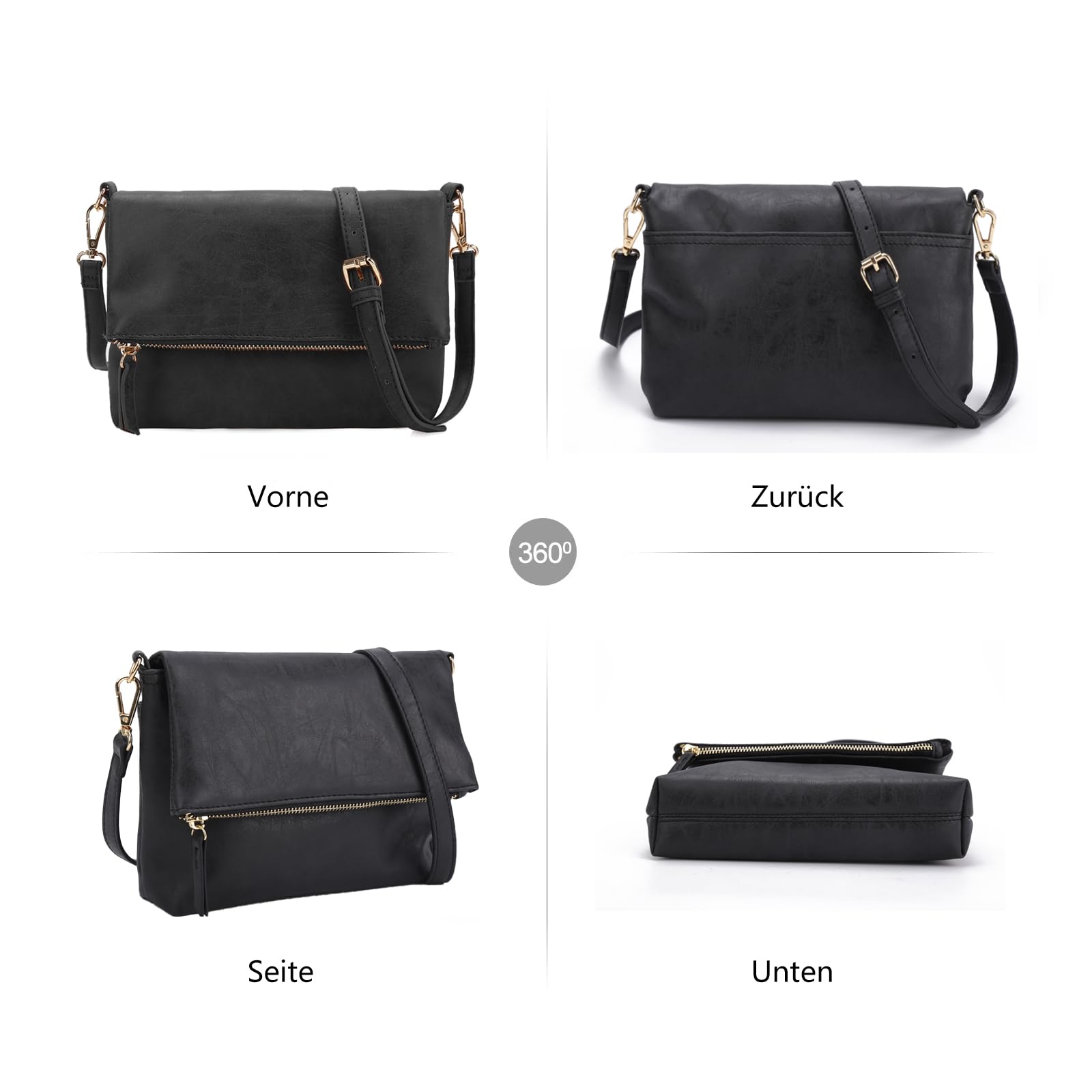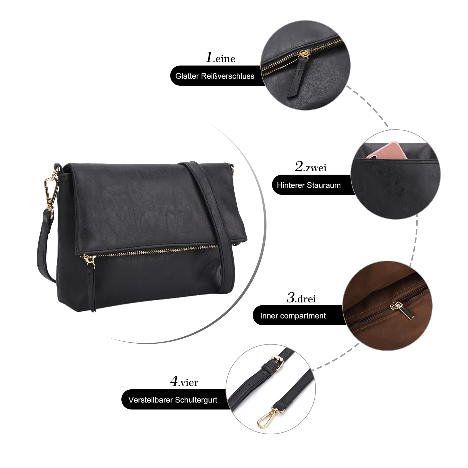 Gladdon Umhängetasche Damen Klein Handtasche,Crossbody Tasche Schultertasche Elegant Clutch Messenger PU-Leder Taschen Für Täglich Arbeit Einkaufen(Schwarz)