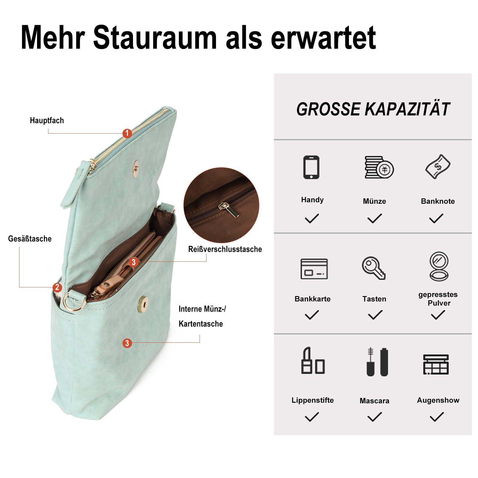 Gladdon Umhängetasche Damen Klein Handtasche,Crossbody Tasche Schultertasche Elegant Clutch Messenger PU-Leder Taschen Für Täglich Arbeit Einkaufen(Beifuss Grün)