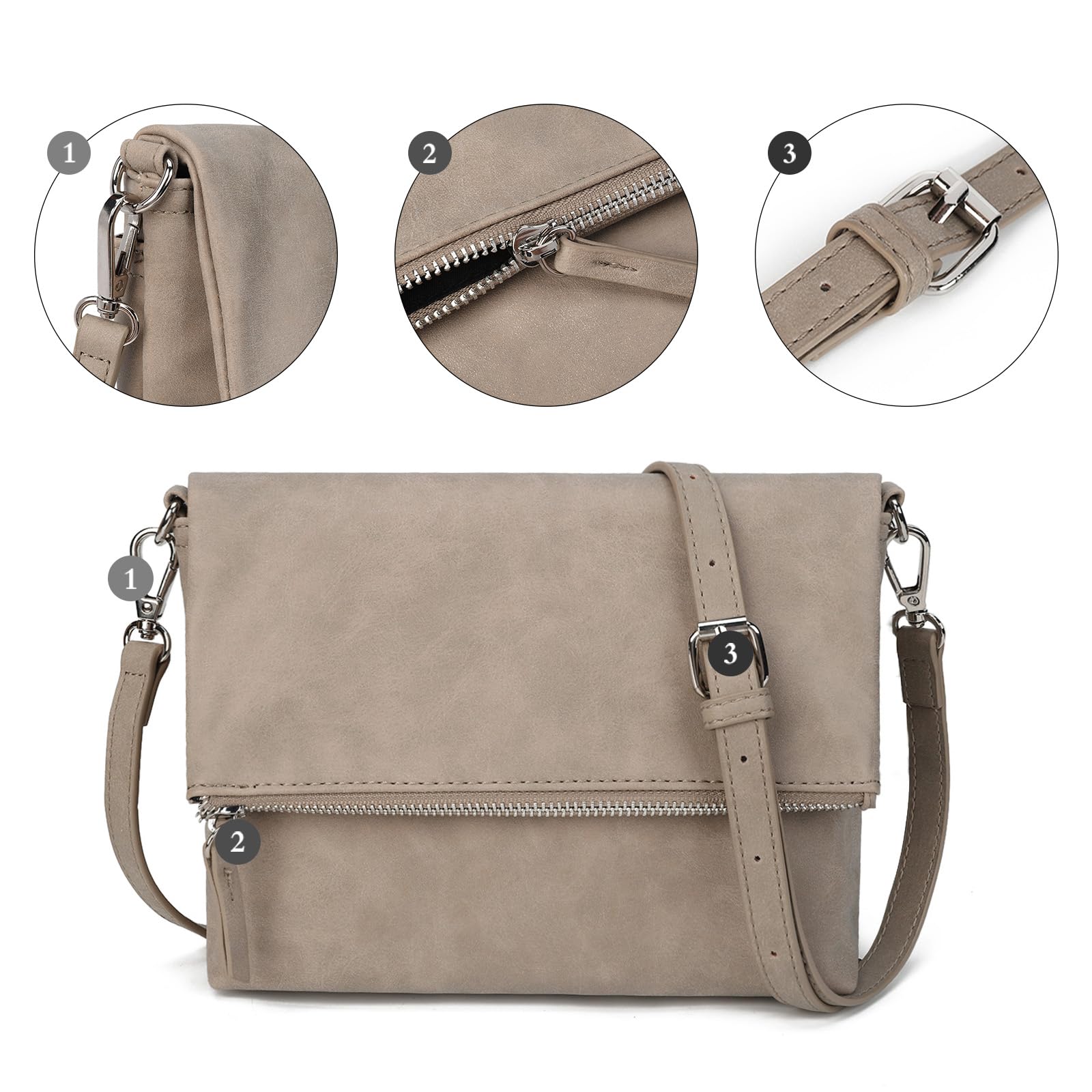 Gladdon Umhängetasche damen,Schultertasche mit Reissverschluss, Crossbody Tasche, Leder Handtasche Klein, Daypack…