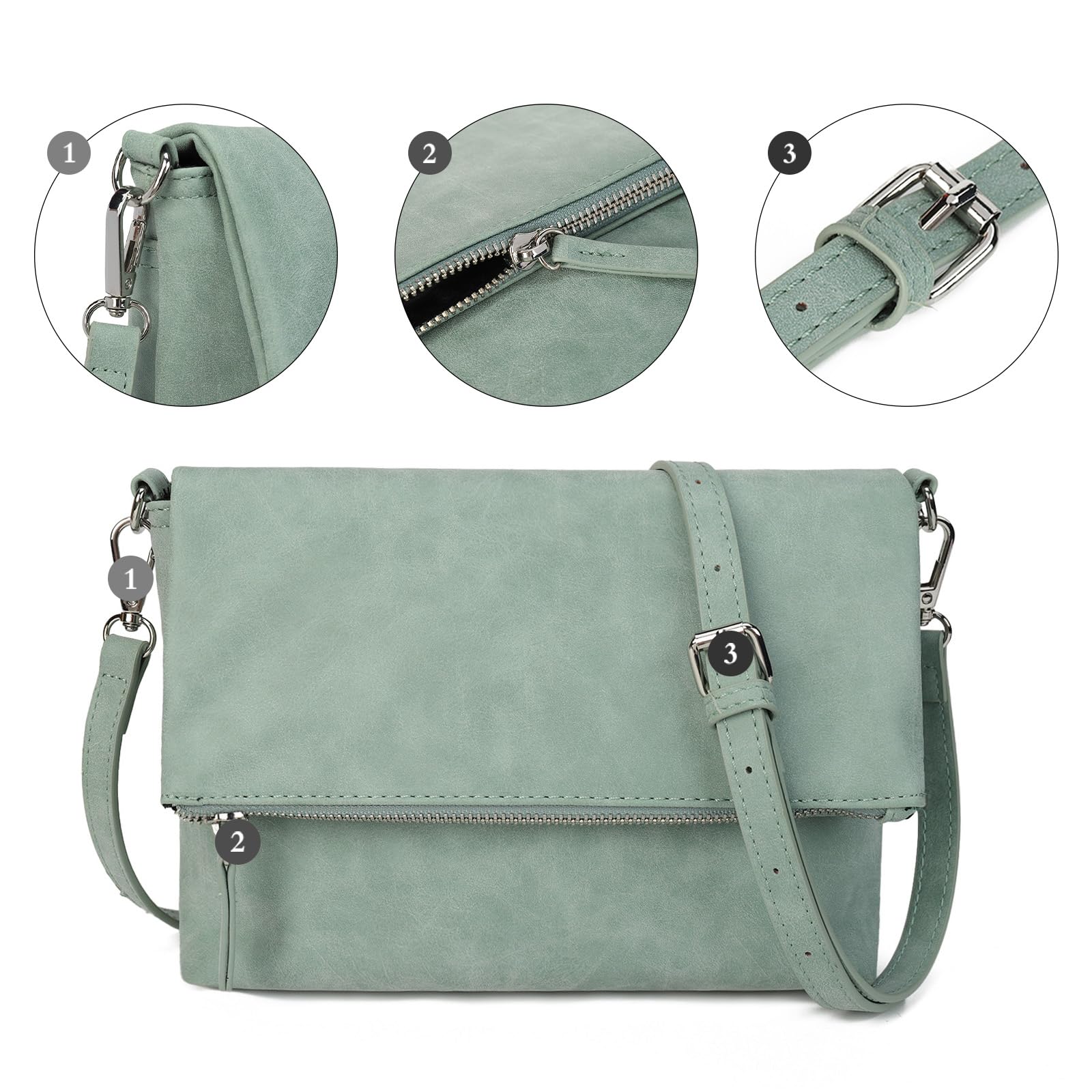 - ♥ VIELSEITIGE VERWENDBARKEITEN: Die umhängetasche damen klein mit abnehmbarem und verstellbarem Lederriemen (Länge des Schulterriemens ca. 100cm-128cm) kann als Crossbody-Tasche, Mini-Schultertasche, flap over bag damen, kleine Handtasche oder Clutch-Portemonnaie verwendet werden. Eine Handtasche für alle Ihre Bedürfnisse.