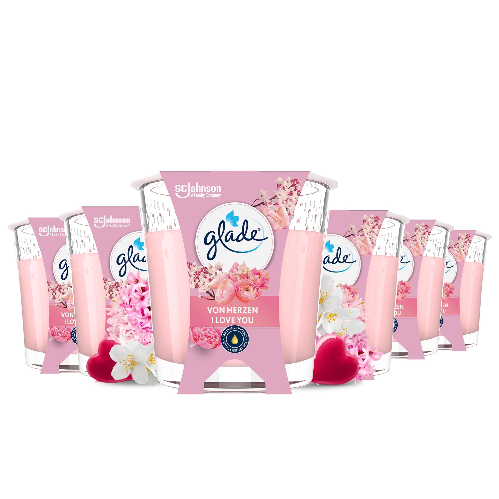 Glade Duft-Kerze im Glas, I Love You, bis zu 27 Stunden Brenndauer, 6er Pack (6 x 112g)