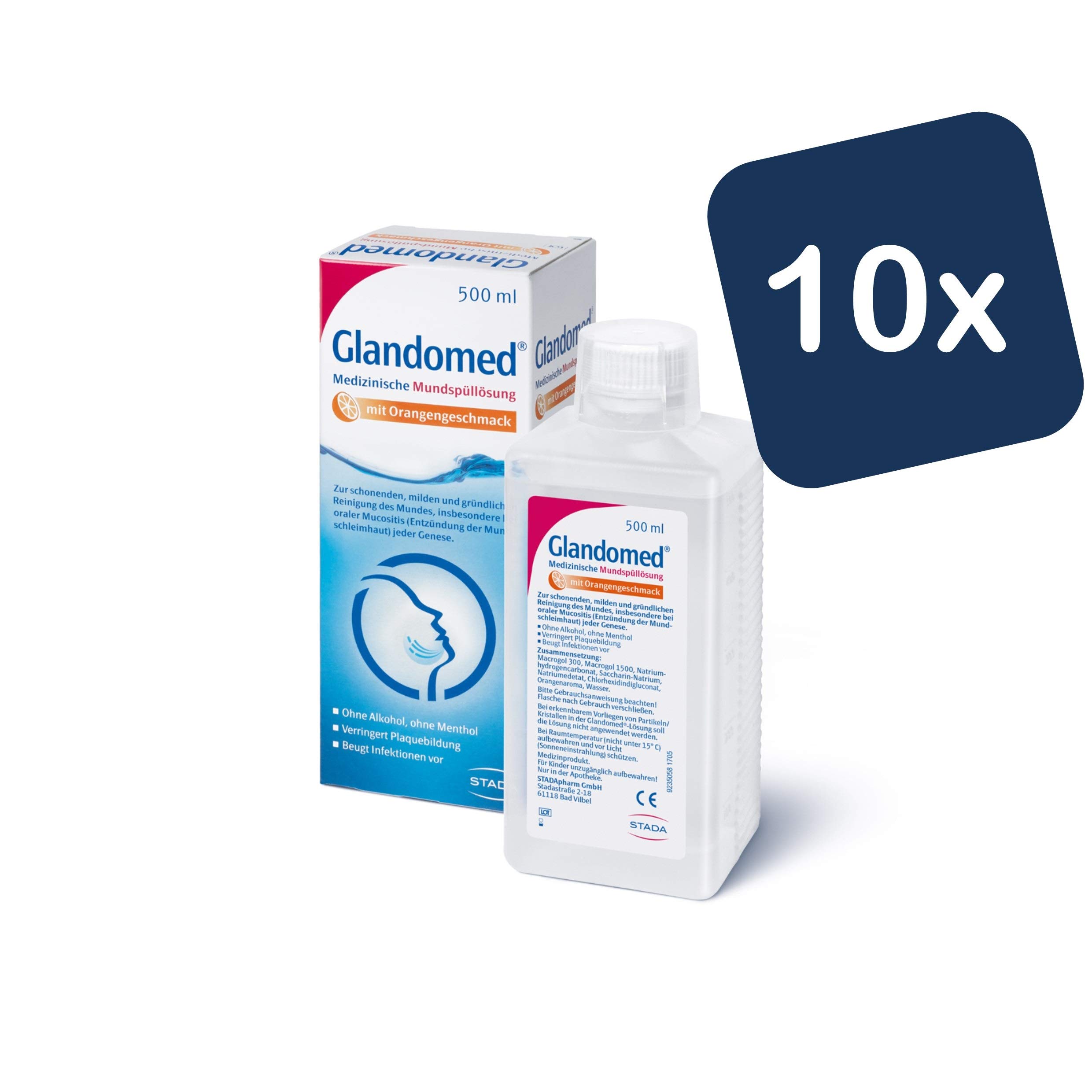 Glandomed medizinische Mundspülung: Gegen Entzündungen der Schleimhaut im Mund, Mukositis, Geschmack Orange, 10 x 500 ml