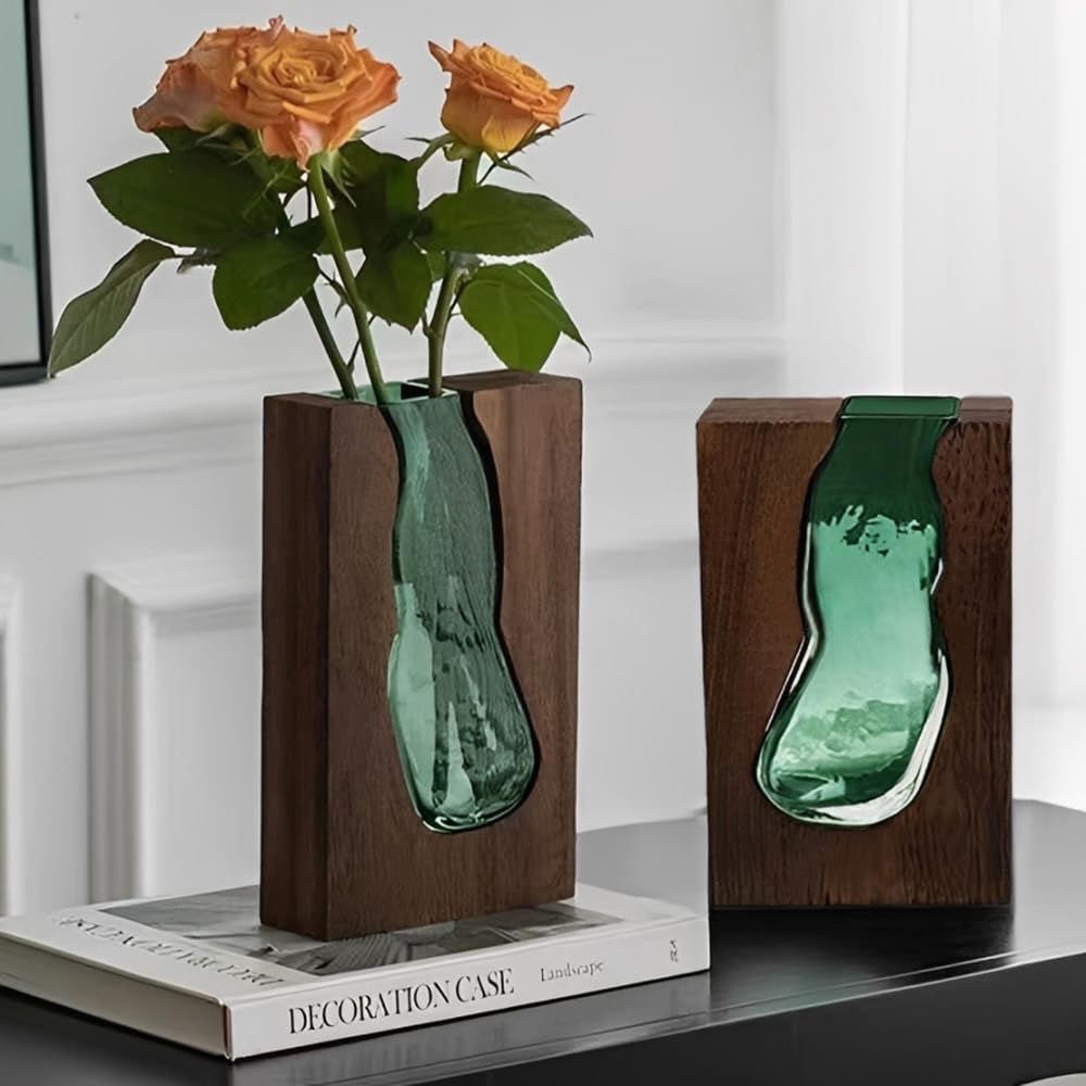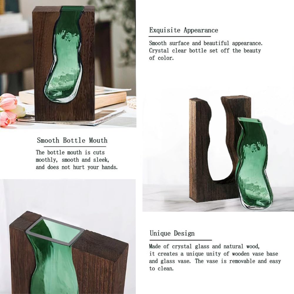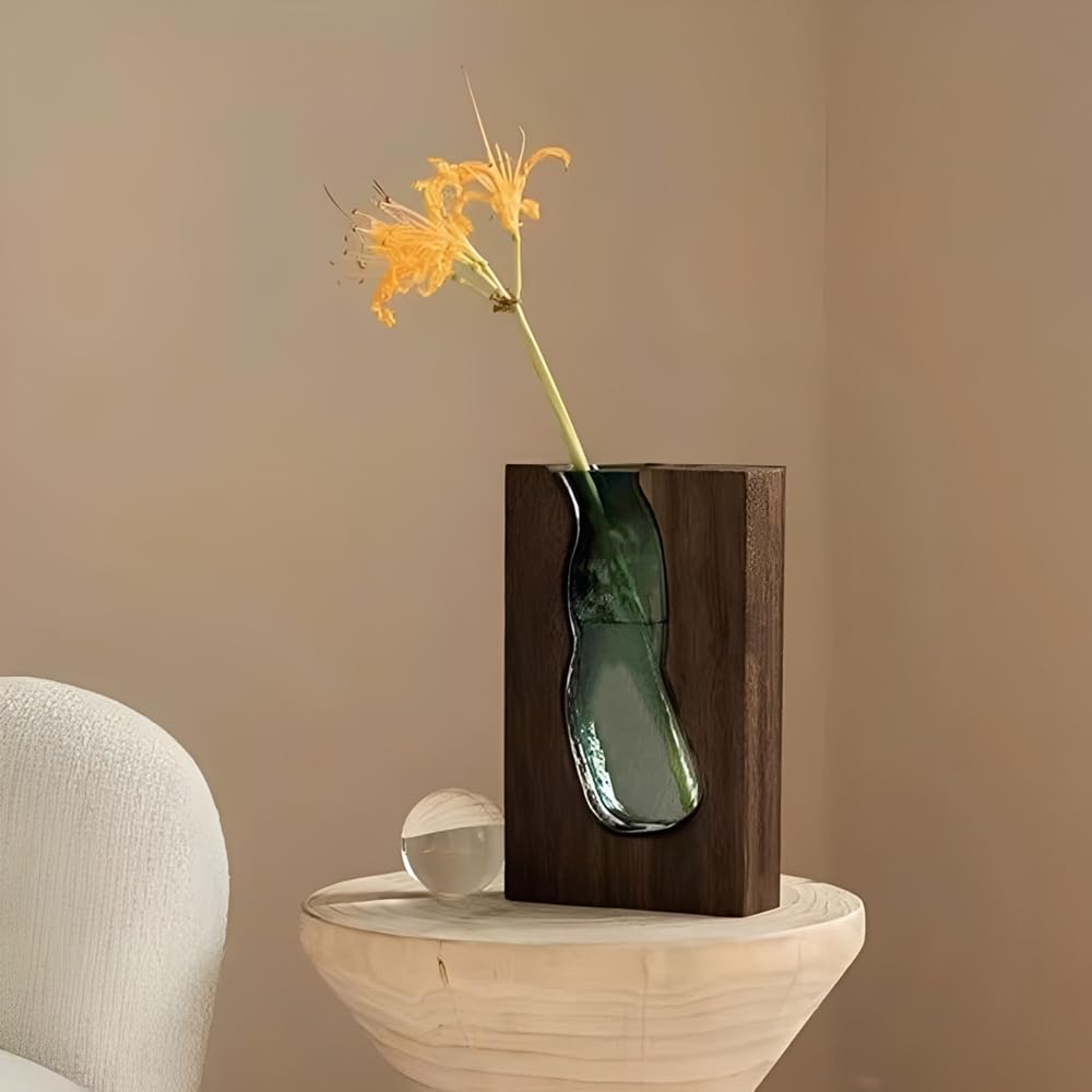 Auciej Blumenvase modern Glasvase Handgefertigte Vase glas rechteckig Schmale Vasen mit Holzsockel für Home Office Dekor, Geschenk für Hochzeit Einweihungsparty feiern Höhe 24 cm