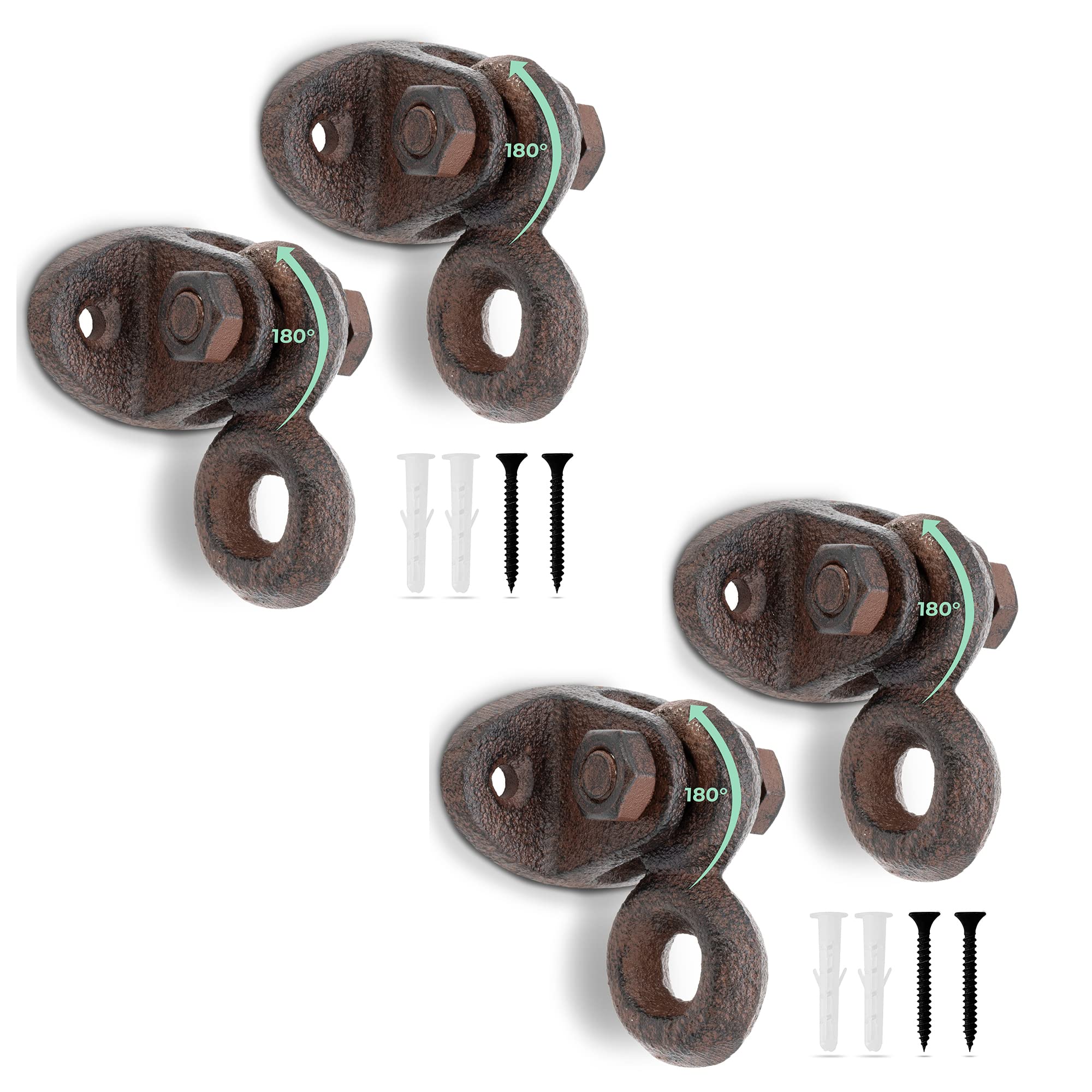 Glaskönig - 4x Rustikale Wand Öse-bewegliche Deckenöse aus Gusseisen im Landhaus Design-Kleiderhaken antik als Garderobenhaken-inkl. Befestigungsmaterial (Öse beweglich-Gusseisen)