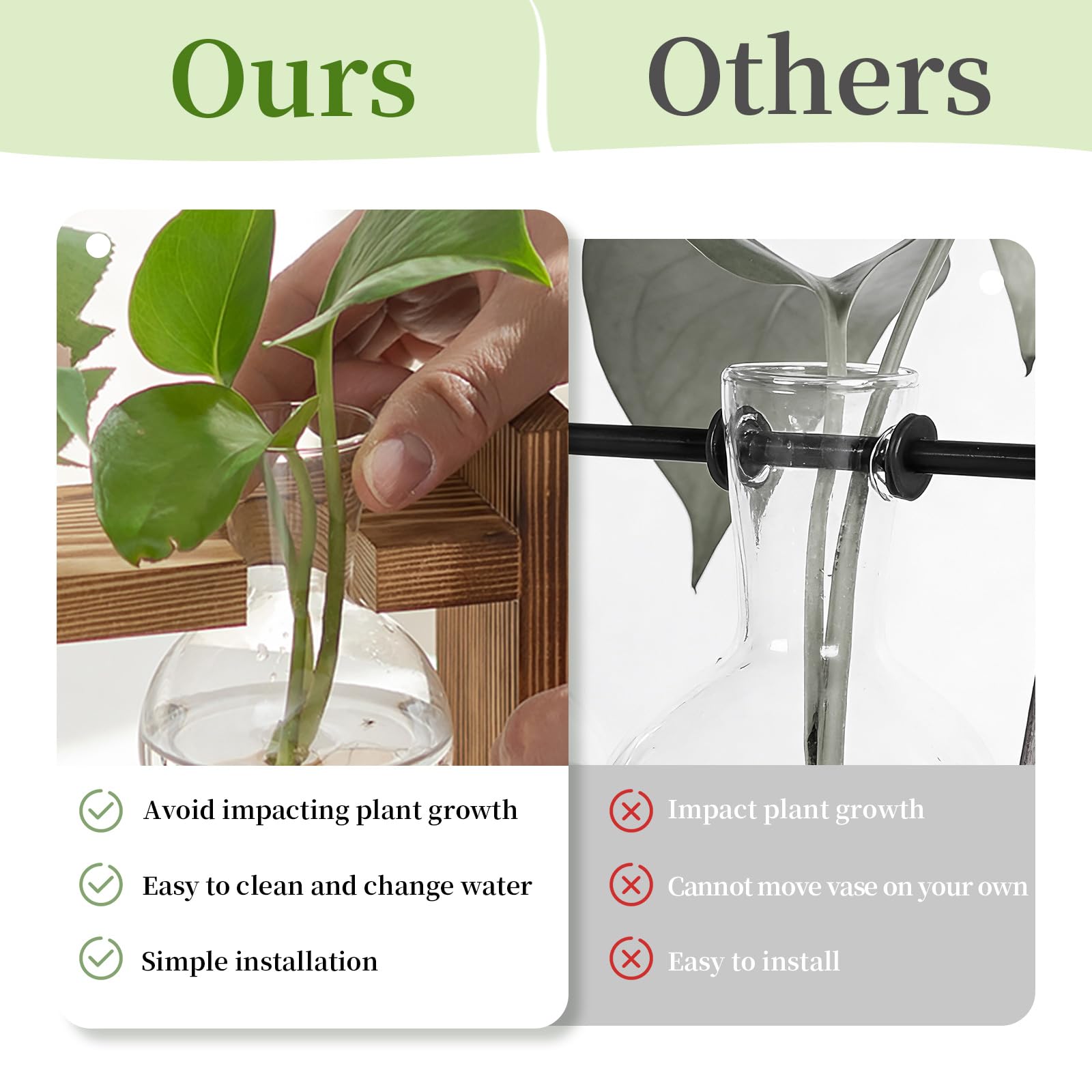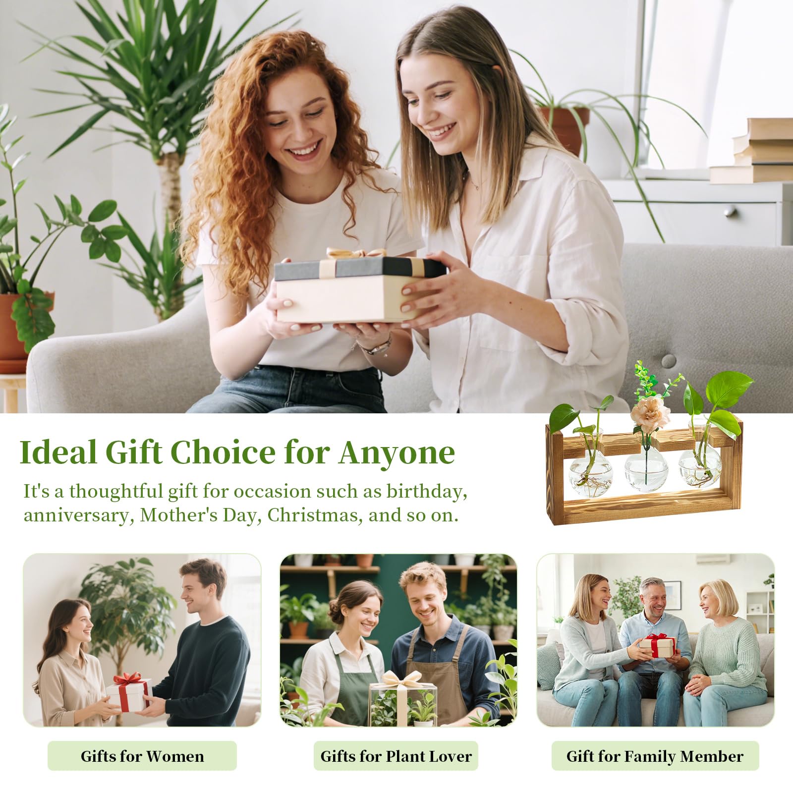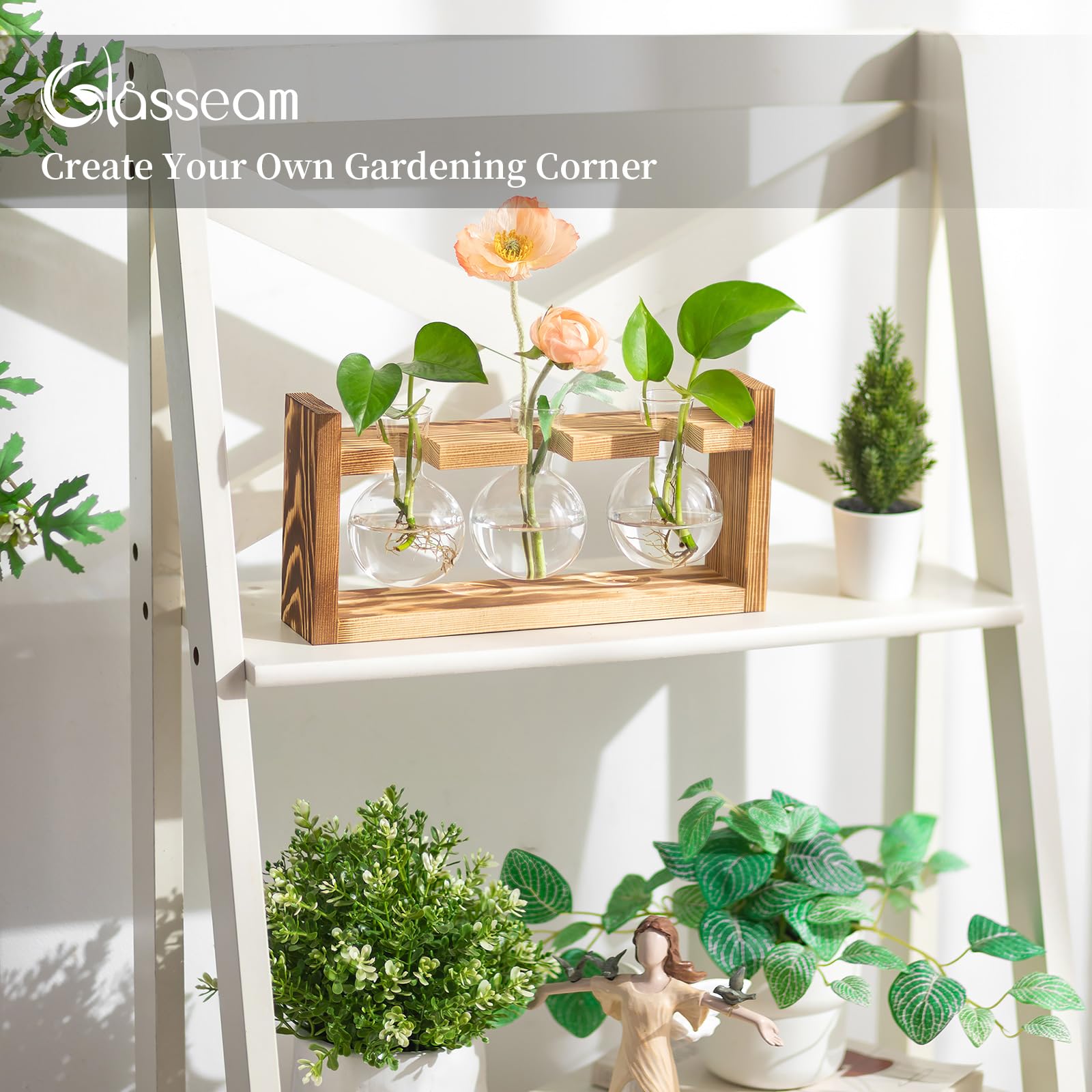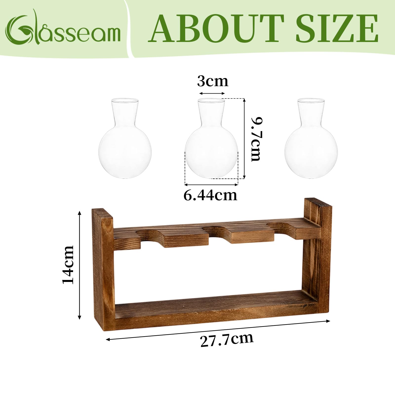 Glasseam Blumenvase Vintage Kleine Vasen Für Tischdeko Modern Glas Reagenzgläser Für Blumen Mit Ständer Holz Propagation Station Für Wohnzimmer Outdoor Taufe Geburtstag Hydroponik Deko