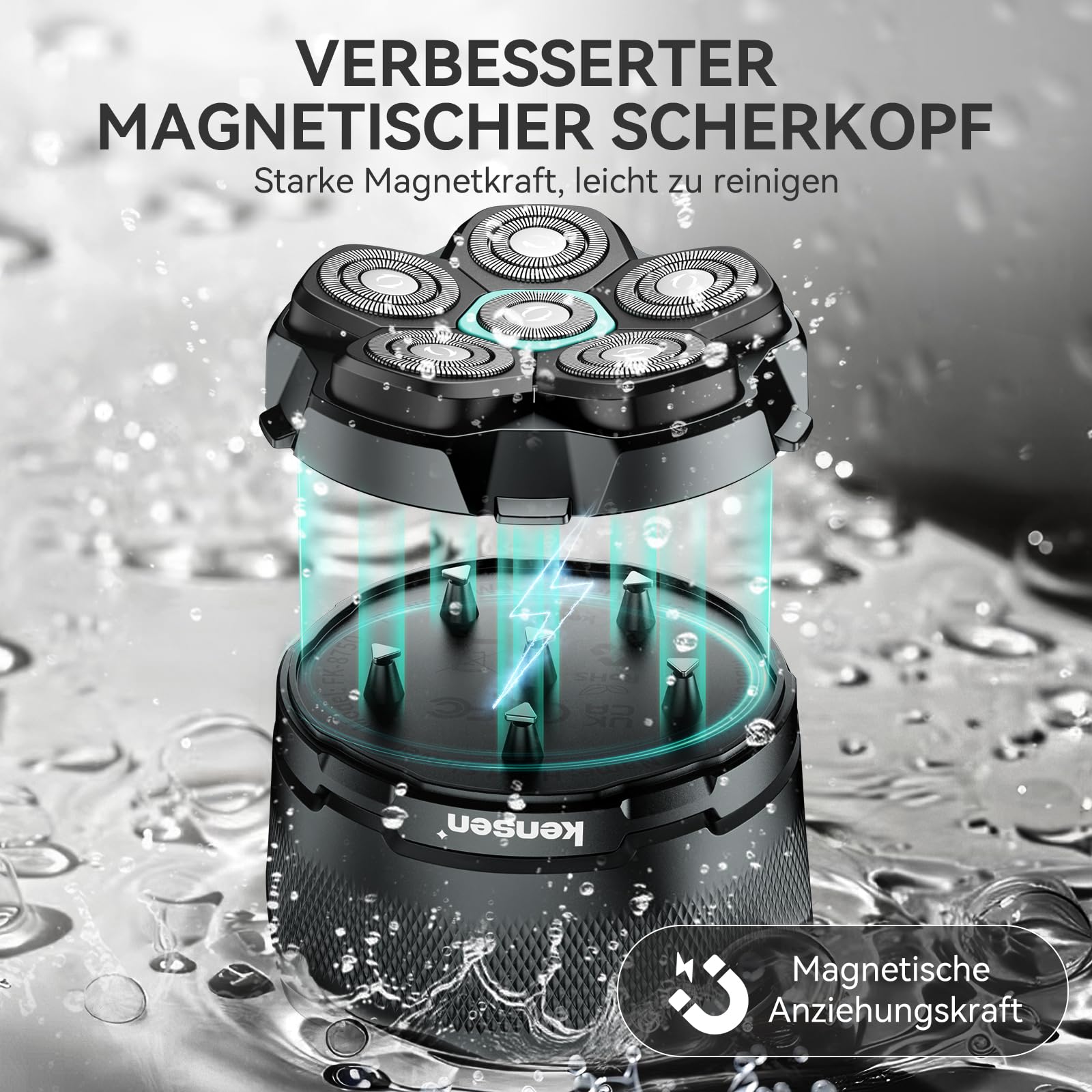Mindestanzahl für die Bestellung von "Glatzen Rasierer Herren, kensen Kopfrasierer Glatze Wasserdicht Kopf Rasierer Herren Wiederaufladbar Typ-c Head Shaver Men Magnetische Leicht zu Reinigen Akkulaufzeit 160 Mins" ist 1.