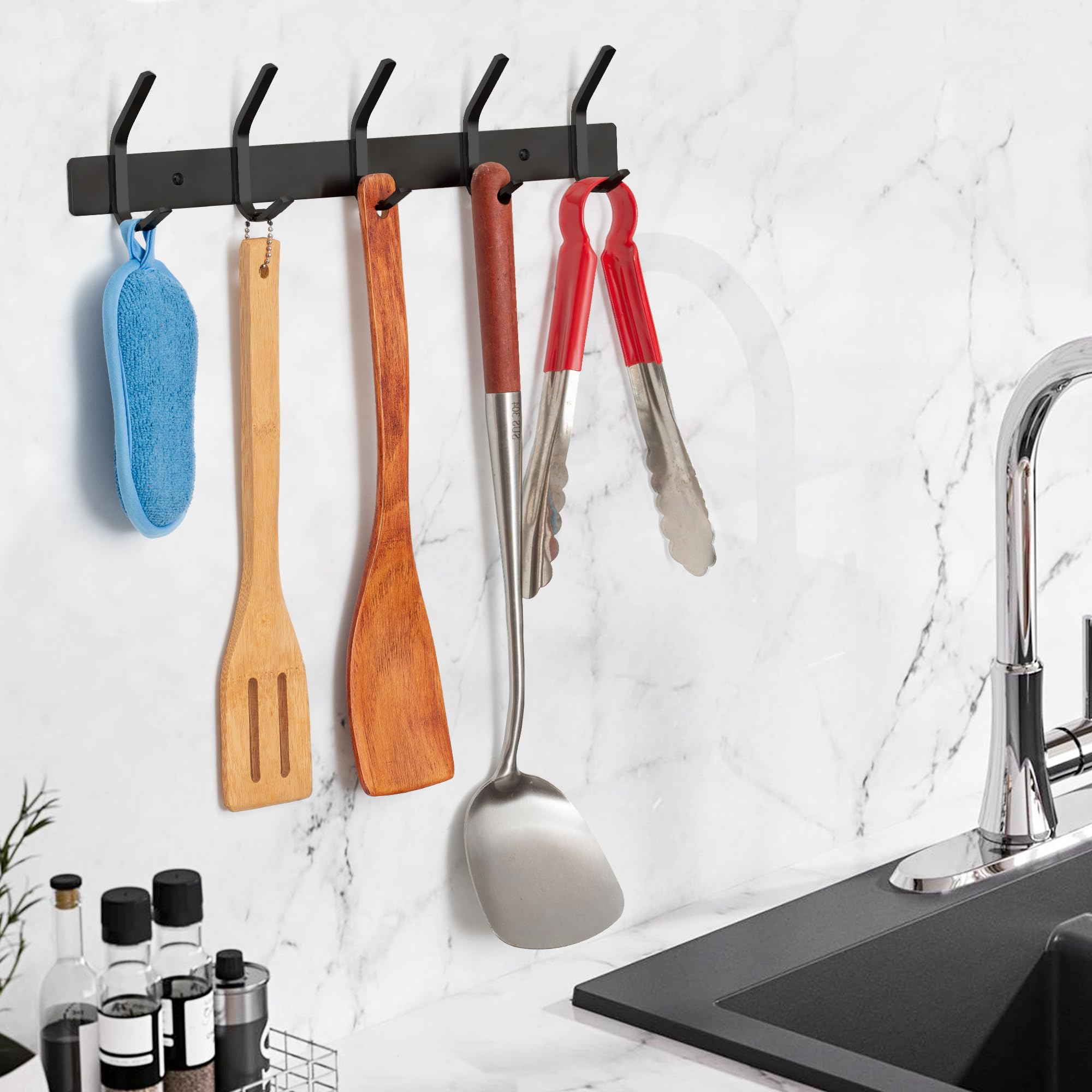 Kleiderhaken wand - Garderobenleiste Edelstahl (2 Stuck), Garderobenhaken Schwere, Garderobe Wandhaken, Wandgarderobe, Hakenleiste (Schwarz)