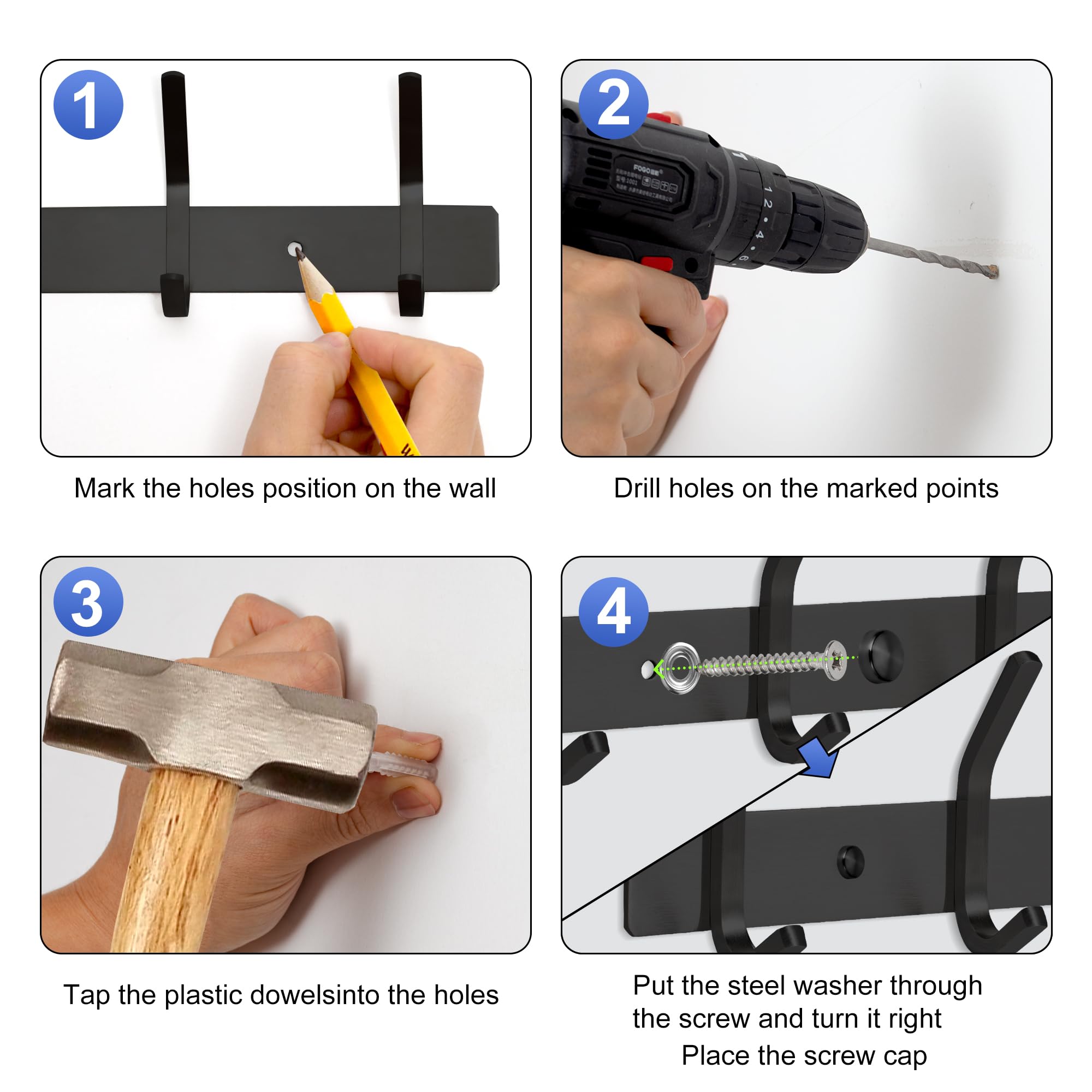 GlazieVault Kleiderhaken sind aus Edelstahl gefertigt, um ein zuverlässiges, robustes und elegantes Produkt für unsere wertvollen Kunden zu gewährleisten. Unsere Wandhaken sind flexibel und können an Wänden, Türen, Badezimmern, Küchen, Waschküchen und mehr montiert werden, ohne Ihre Wohnungseinrichtung zu stören. Das glänzende Erscheinungsbild, das der Edelstahl-Oberfläche zugeschrieben wird, wird den Charme Ihrer Wohnmöbel erhöhen. Qualitätssicherung: Für GlazieVault kann die Qualität des Produkts nicht beeinträchtigt werden. Daher ist unser Produkt echt aus hochwertigem, sehr widerstandsfähigem 304 Edelstahl gefertigt. Darüber hinaus stellen wir sicher, dass die Kleiderhaken korrosions- und rostfrei sind. Sie können Ihre Sachen bequem daran hängen, ohne sich Gedanken über Rostflecken machen zu müssen. Drei-Haken-Design: GlazieVault Kleiderhaken Jeder Haken hat drei Haken, die so entworfen wurden, dass mehr Sachen darauf gesammelt werden können. Dadurch können Sie mehr Kleidung oder Mäntel aufhängen, um Platzbeschränkungen zu minimieren. Jede Stange unseres Produkts verfügt über 5 Kleiderhaken mit runden Kanten. Jeder Haken hat drei weitere Haken, um eine maximale Aufhängekapazität zu gewährleisten. Eleganter Umriss: Der Kleiderhaken verfügt über ein schlankes Design mit einer glänzenden Edelstahl-Oberfläche, wodurch er für den Mehrzweckgebrauch geeignet ist. Drei runde Kantenhaken an jedem Haken ermöglichen neben der Aufnahme mehrerer Kleidungsstücke auch ein elegantes Erscheinungsbild. Einfach zu installieren: GlazieVault bietet alle notwendige Hardware, um diesen Kleiderhaken zu installieren. Die Installation dieser Kleiderhaken ist ein Kinderspiel. Diese Wandgarderobe verfügt über vorgebohrte Löcher für eine bequeme Installation. 2 Edelstahl-Wandhaken sind mit Schrauben und Schraubenabdeckung für einen ordentlichen Look versehen. Spezifikation: Rostfreier Edelstahl mit 5 Haken auf jedem Gestell. Jeder Haken verfügt über ein 3-Haken-Design. Packung mit 2 Kleiderhaken