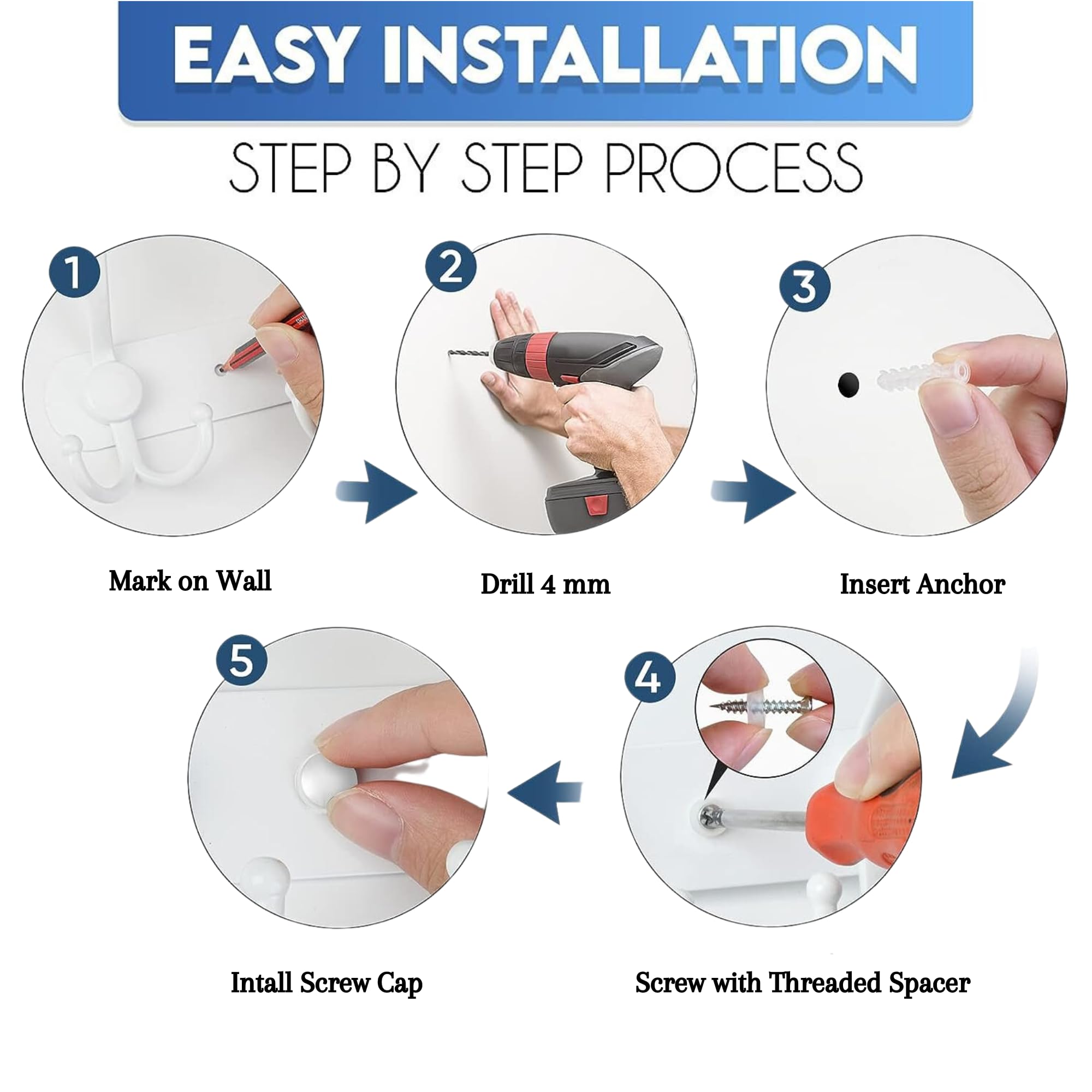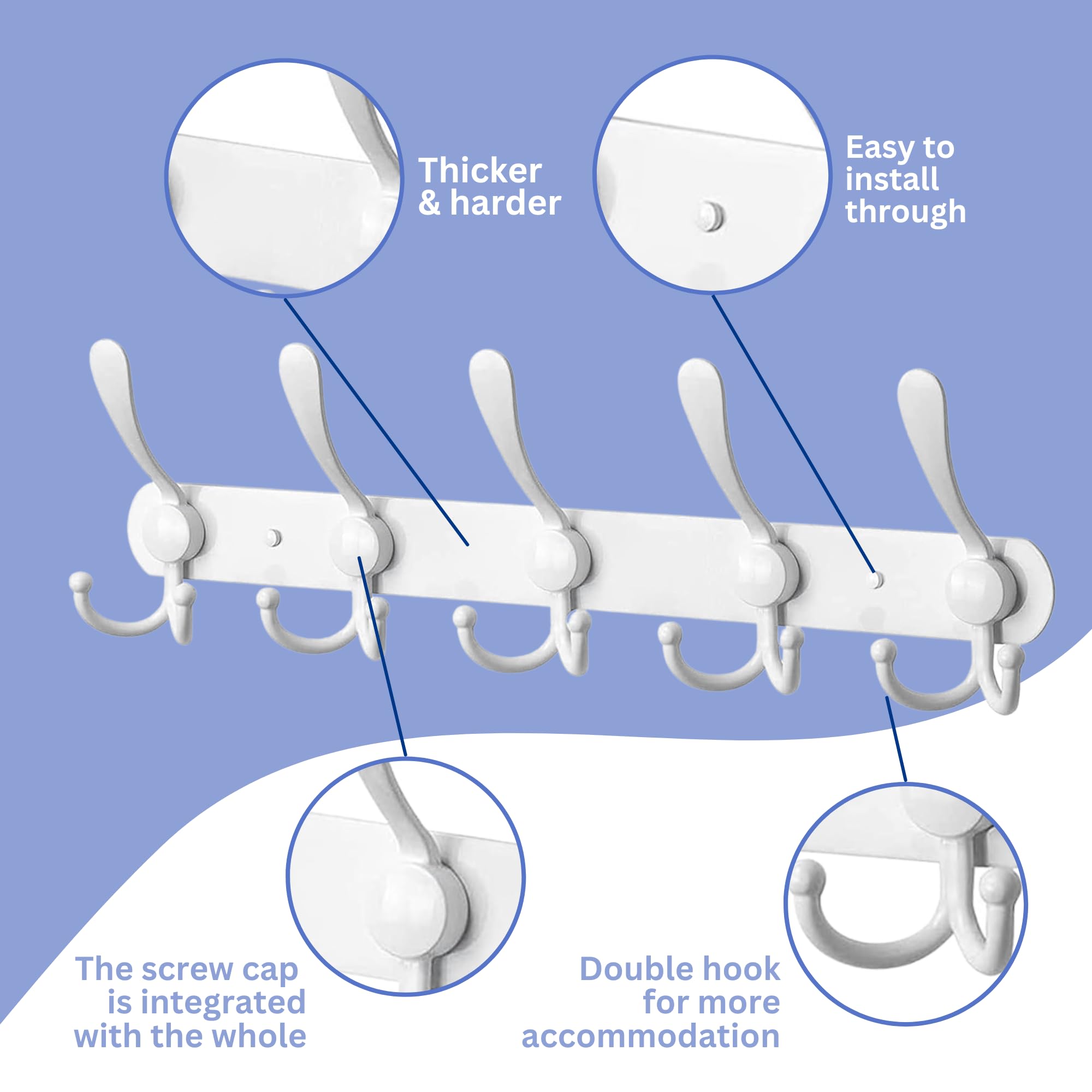 GlazieVault Kleiderhaken wand - Garderobenleiste Edelstahl (2 Stuck), Garderobenhaken Schwere, Garderobe Wandhaken, Wandgarderobe, Hakenleiste (Weisses Tricolor)