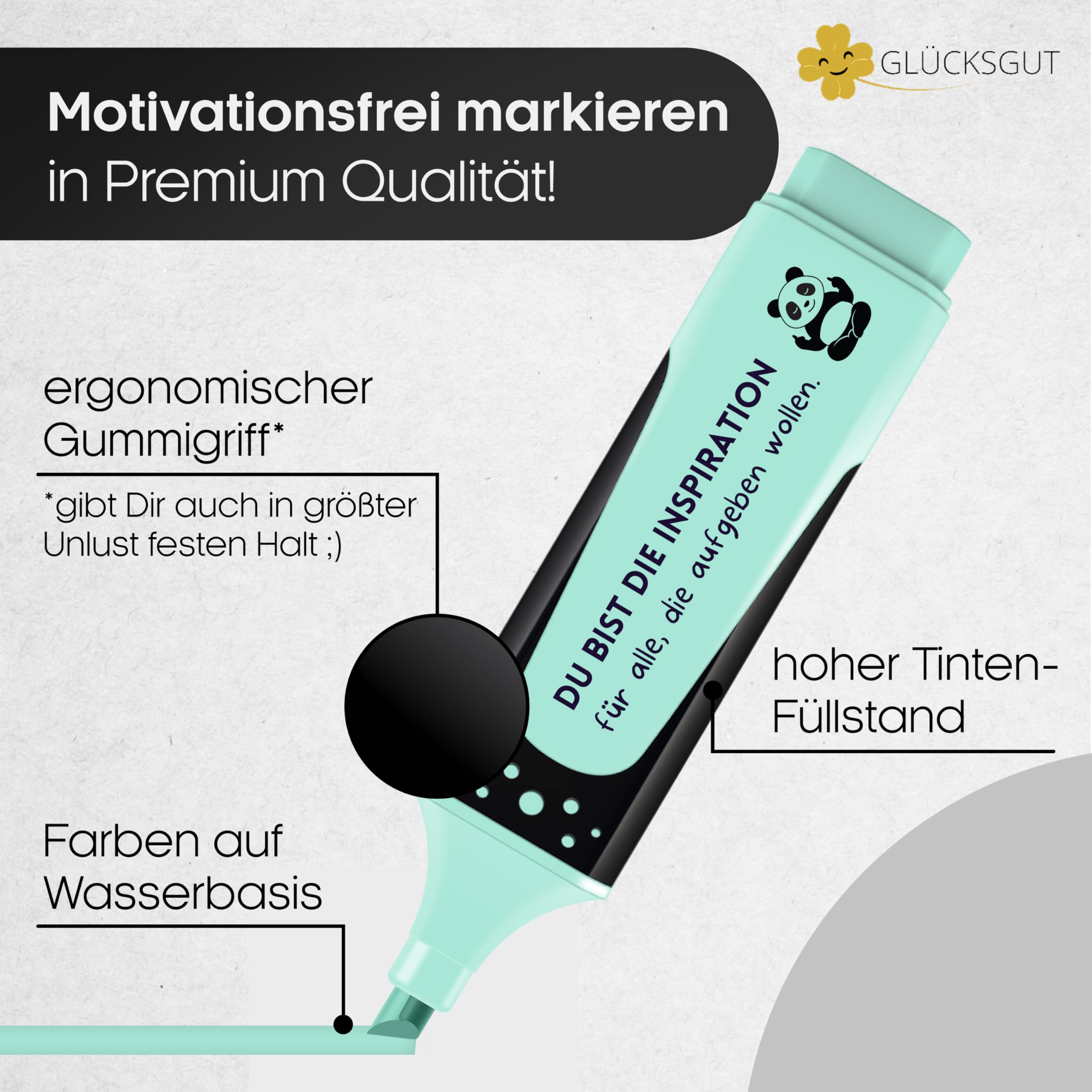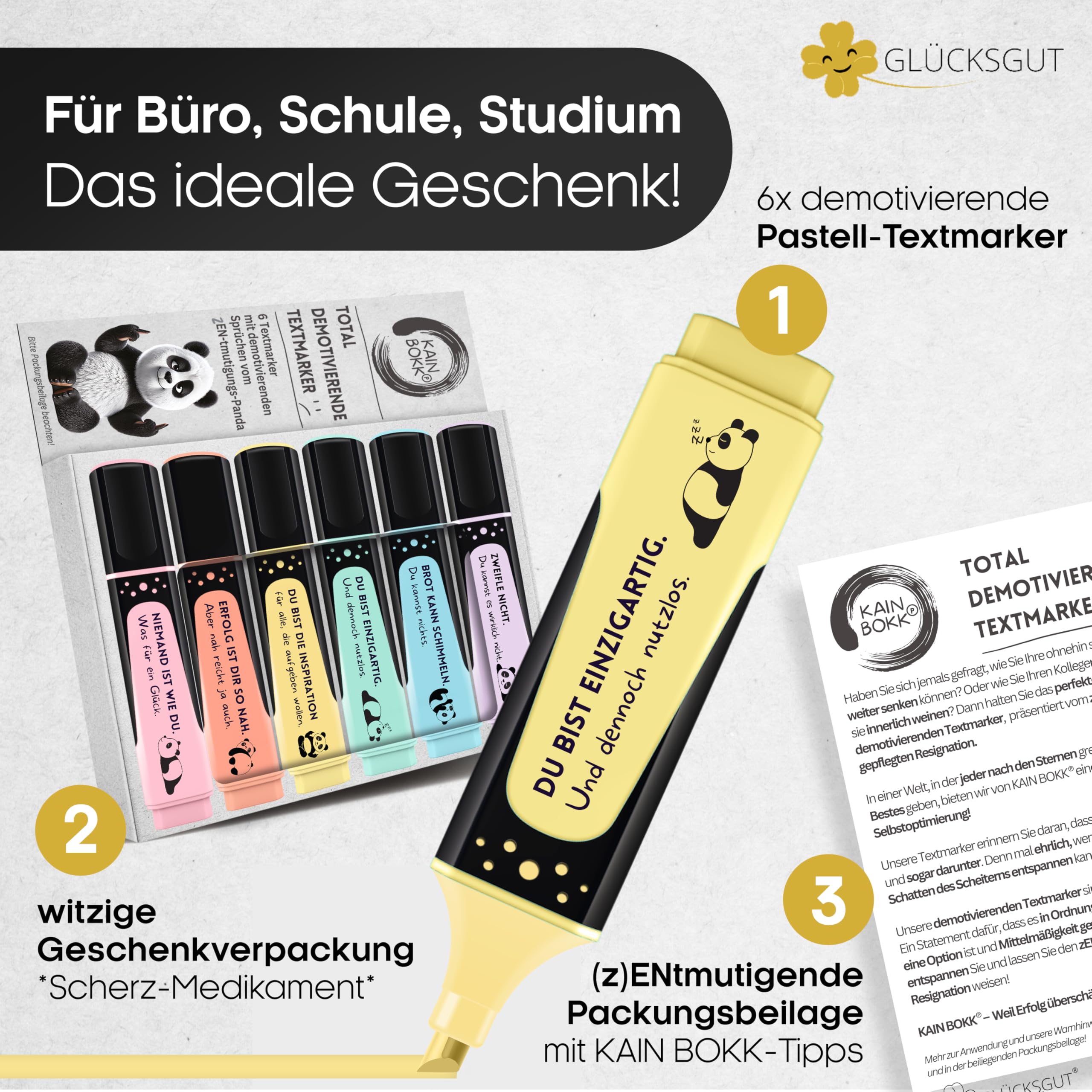 GLÜCKSGUT® 6x Textmarker | Demotivierende Sprüche | Geschenk für Büro Studium Uni Schule | Abschiedsgeschenk für Kollegen Chef Lehrer | Anti Stress
