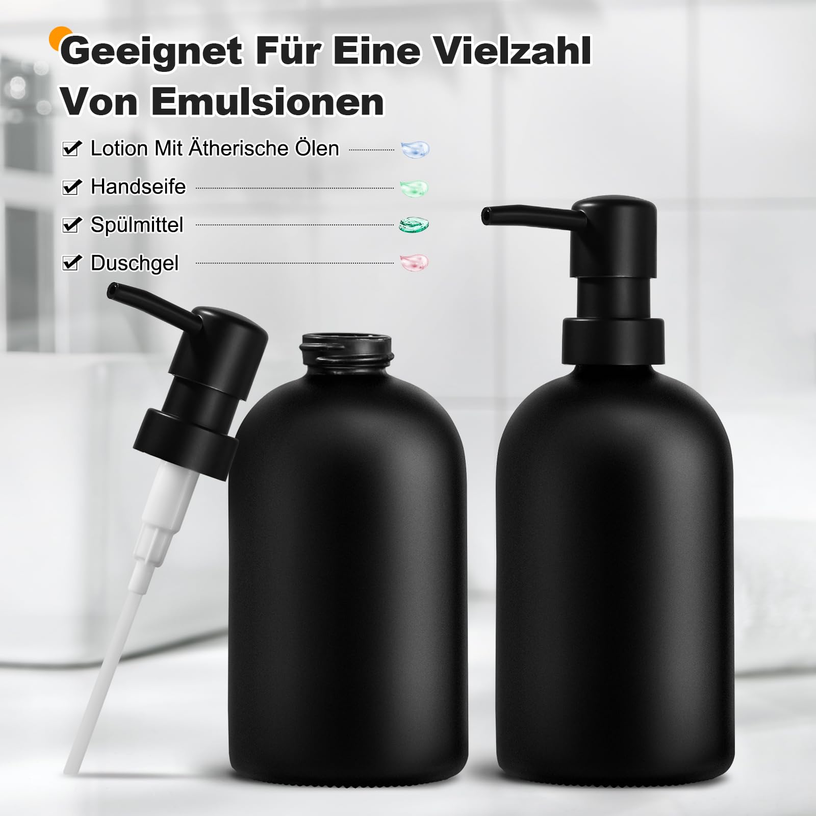 【Schlankes Und Modernes Design】Verwandeln Sie Ihre Wohnkultur mit diesem schwarzen seifenspender glas. Mit einem runden, seifenspender schwarz aus Glas, gepaart mit einer robusten Pumpe, verleihen diese Spender jedem modernen Zuhause eine elegante und einzigartige Note. Jeder seifenspender bad mit einem Fassungsvermögen von 400 ml reduziert den Bedarf an häufigem Nachfüllen und macht den täglichen Gebrauch bequemer.