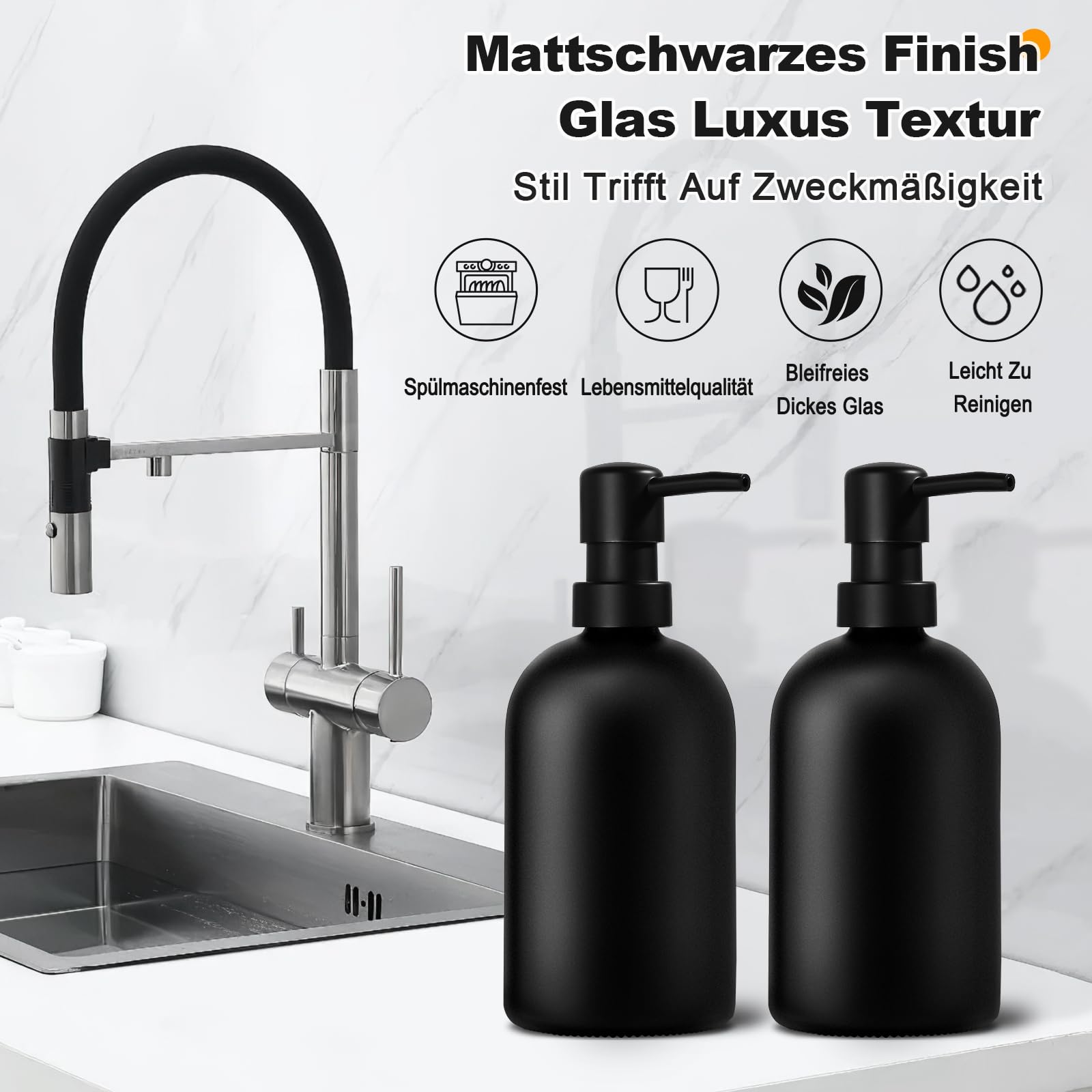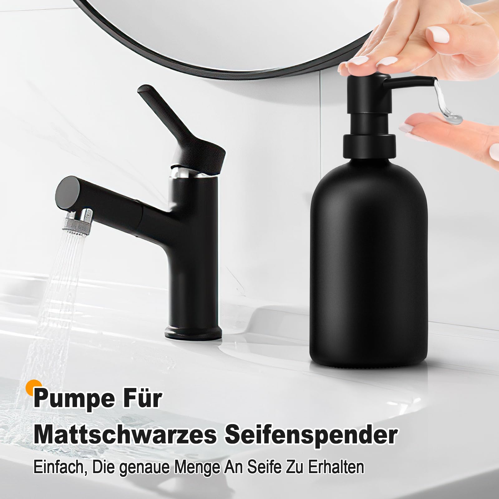 【Fantastisches Mattschwarzes Finish】Diese seifenspender schwarz sind aus Glas gefertigt und verfügen über ein modisches mattschwarzes Finish, das dabei hilft, Gebrauchsspuren zu verbergen und ihr atemberaubendes Aussehen im Laufe der Zeit beizubehalten. Dieser seifenspender glas bringt einen Hauch von Raffinesse und Eleganz in jede Umgebung, egal ob es sich um Ihre Küchenspüle oder Ihre Badezimmertheke handelt.