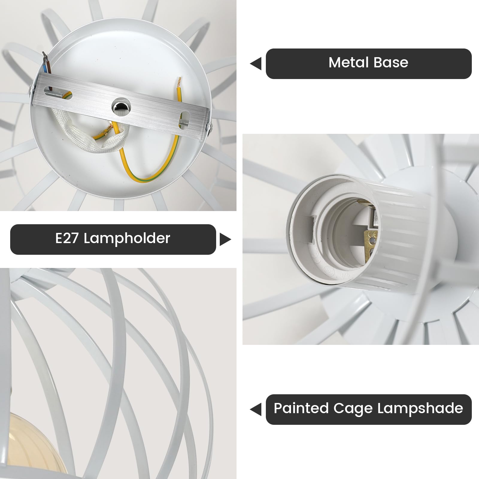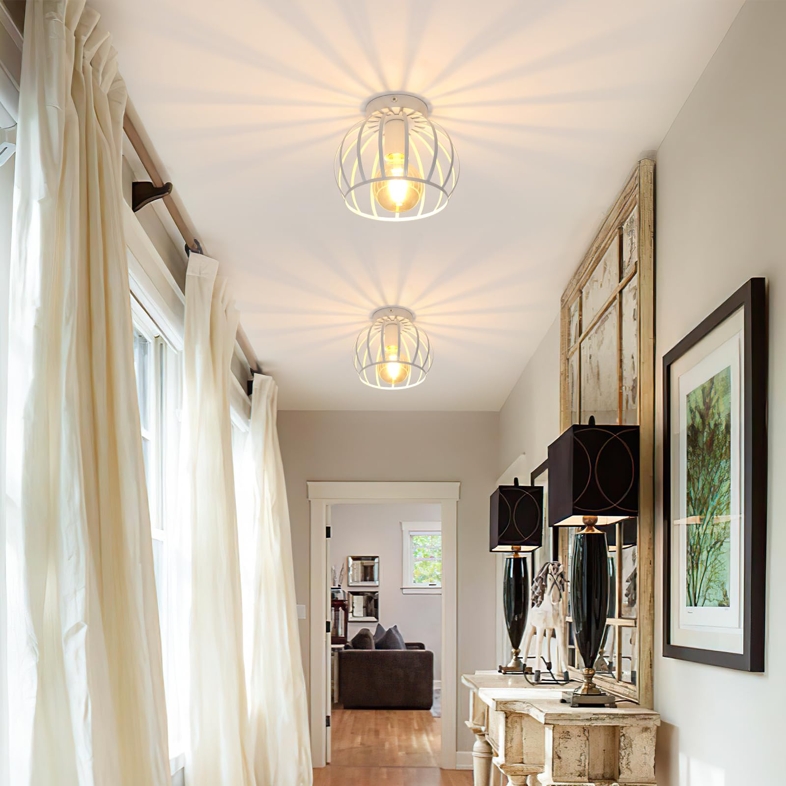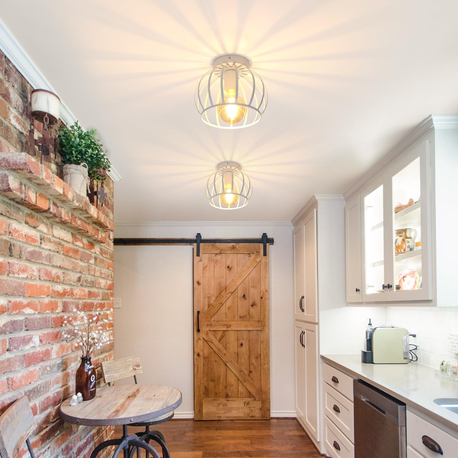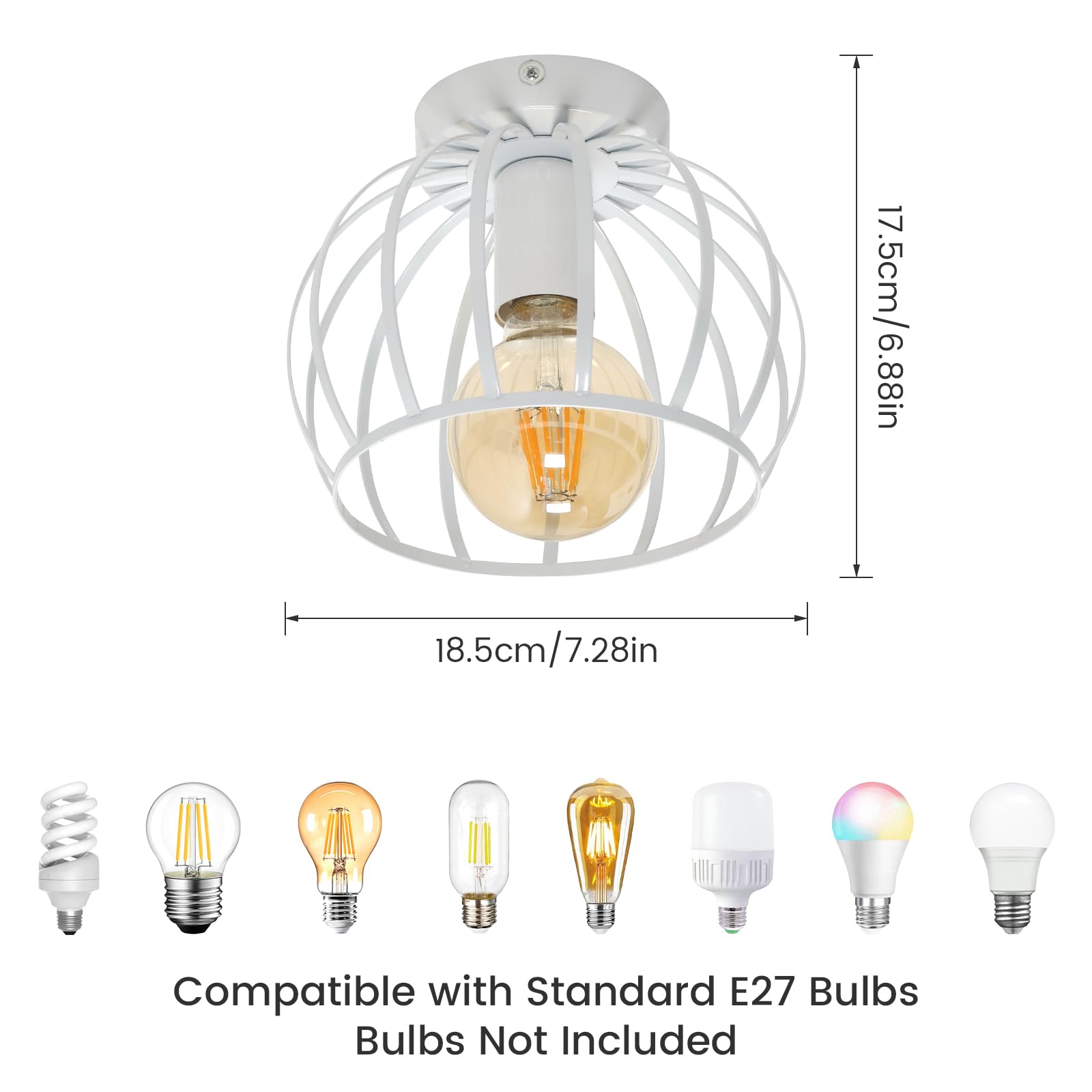 Goeco Deckenleuchte Weiss, E27 Lampenfassung Industrial Deckenlampe Lampenschirm in Form eines Metallkäfigs, Pendelleuchte innen Vintage für Flur, Balkon, Ø 19cm(Glühbirnen nicht inbegriffen)