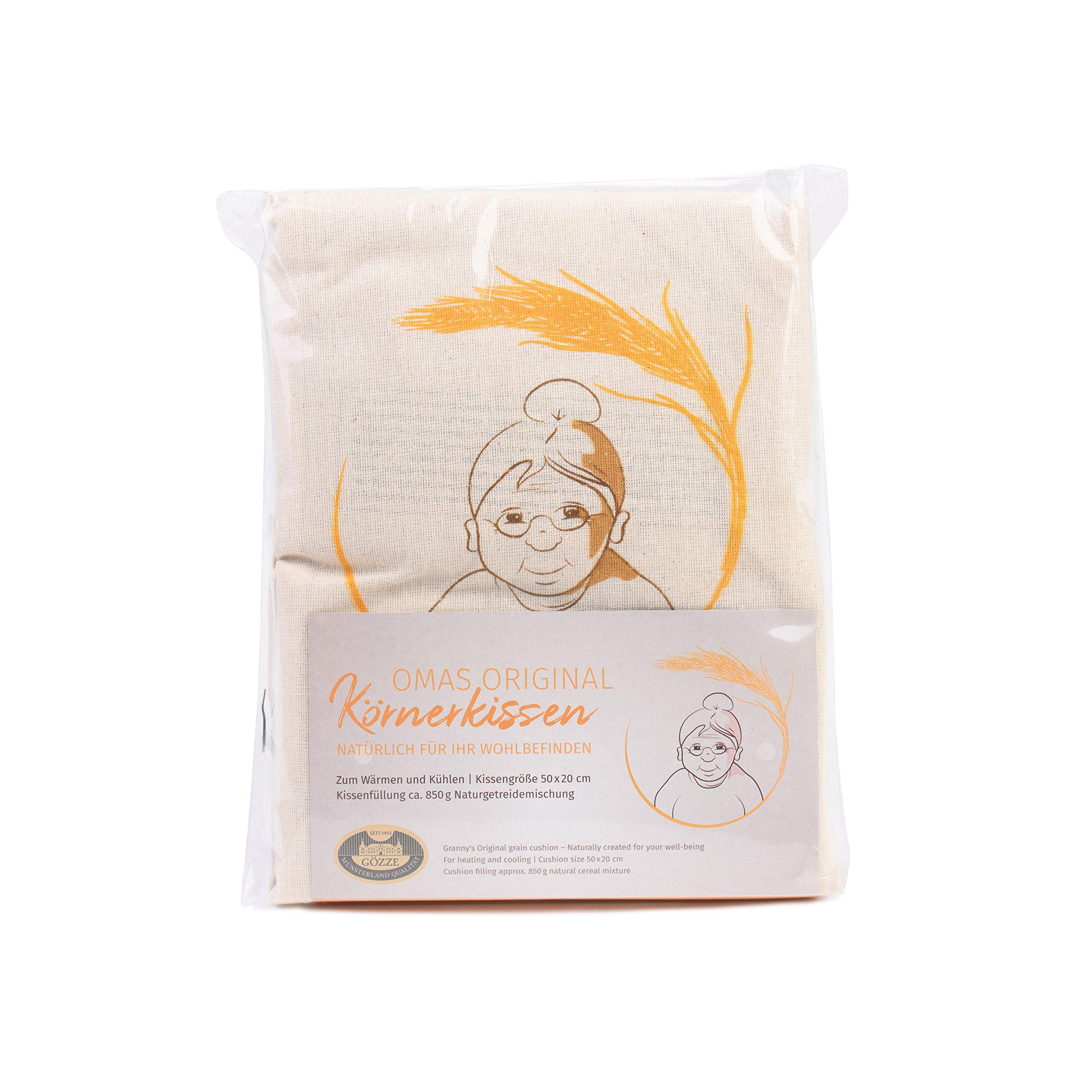 Verwenden Sie das Original Omas Körnerkissen auch als Kühlkissen. Optimal bei entzündungsschmerzen, Kopfschmerzen oder Prellungen.Bezug aus festem, strapazierfähigem Stoff, bei 60 °C waschbar