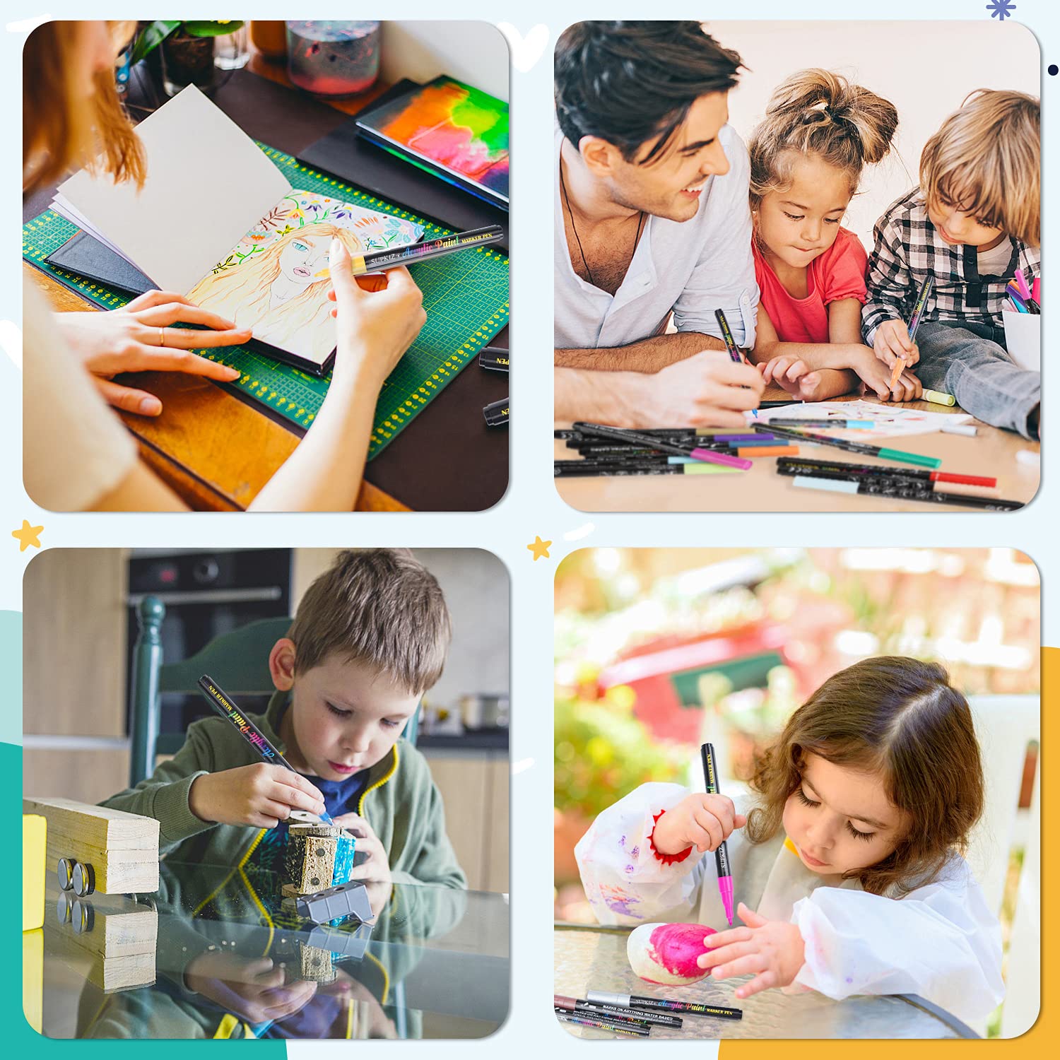 Das Acrylstift-Set für Steine enthält 24 helle Farben, ideal zum Ausdrücken Ihrer Kreativität und zur Gestaltung Ihres Lebens. Die Malstifte funktionieren auf fast allen Oberflächen, wie Stein, Glas, Papier, Holz, Leinwand, Keramik, Metall, Kunststoff, Stoff, Ostereier usw. Unsere Acryl-Malstifte verwenden Tinte auf Wasserbasis, die ungiftig, geruchlos und auch wasserfest ist. Die hochwertige Tinte der Buntstifte macht Ihre Malerei hell und lebendig.
