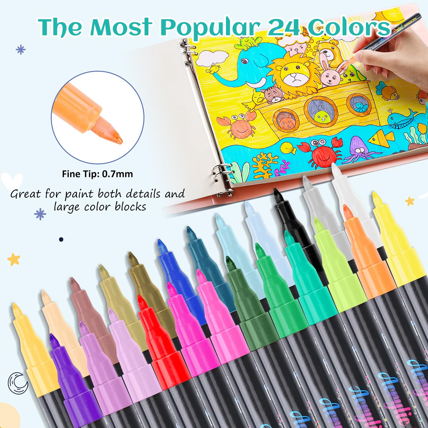Goffii Acrylstifte für Steine wasserfest 24 Farbe Steine Bemalen Acrylstifte feine Spitze Farbstifte für Holz, Stein, Stoff, Leinwand, Keramik, Scrapbooking-Zubehör, Bastel- und Künstlerbedarf