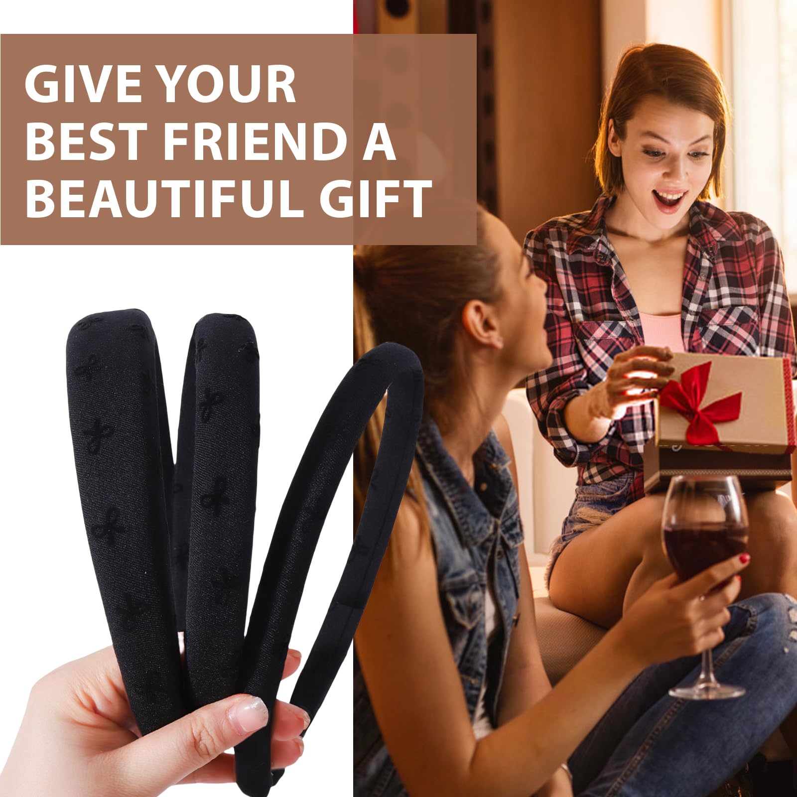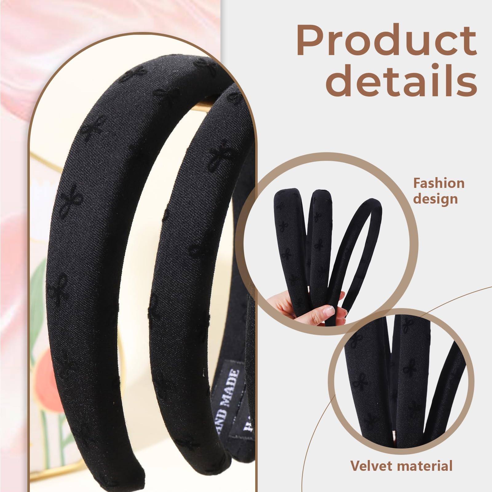 Goiern 3 Stück Kopfbänder für Frauen, Schwarzes Kopfband für Mädchen Schleifen-Muster Haarband Ohne Zähne Dicke Breite Kopfbänder Hoops Cute Haaraccessoires