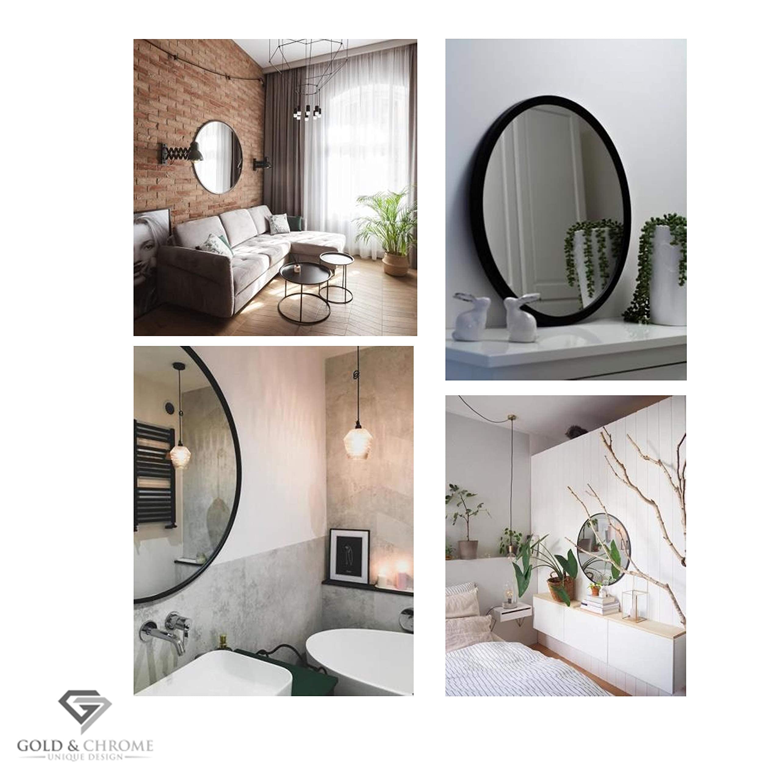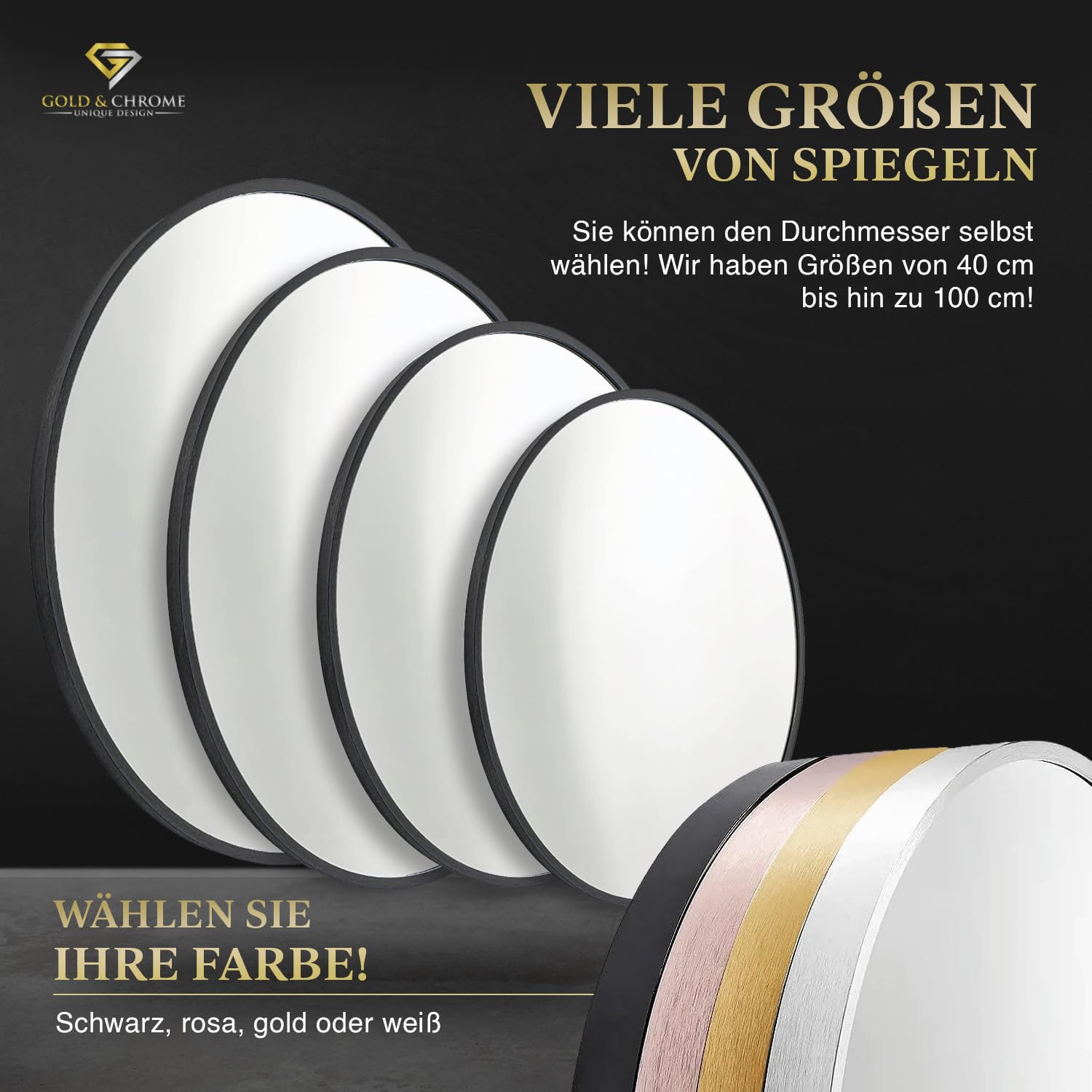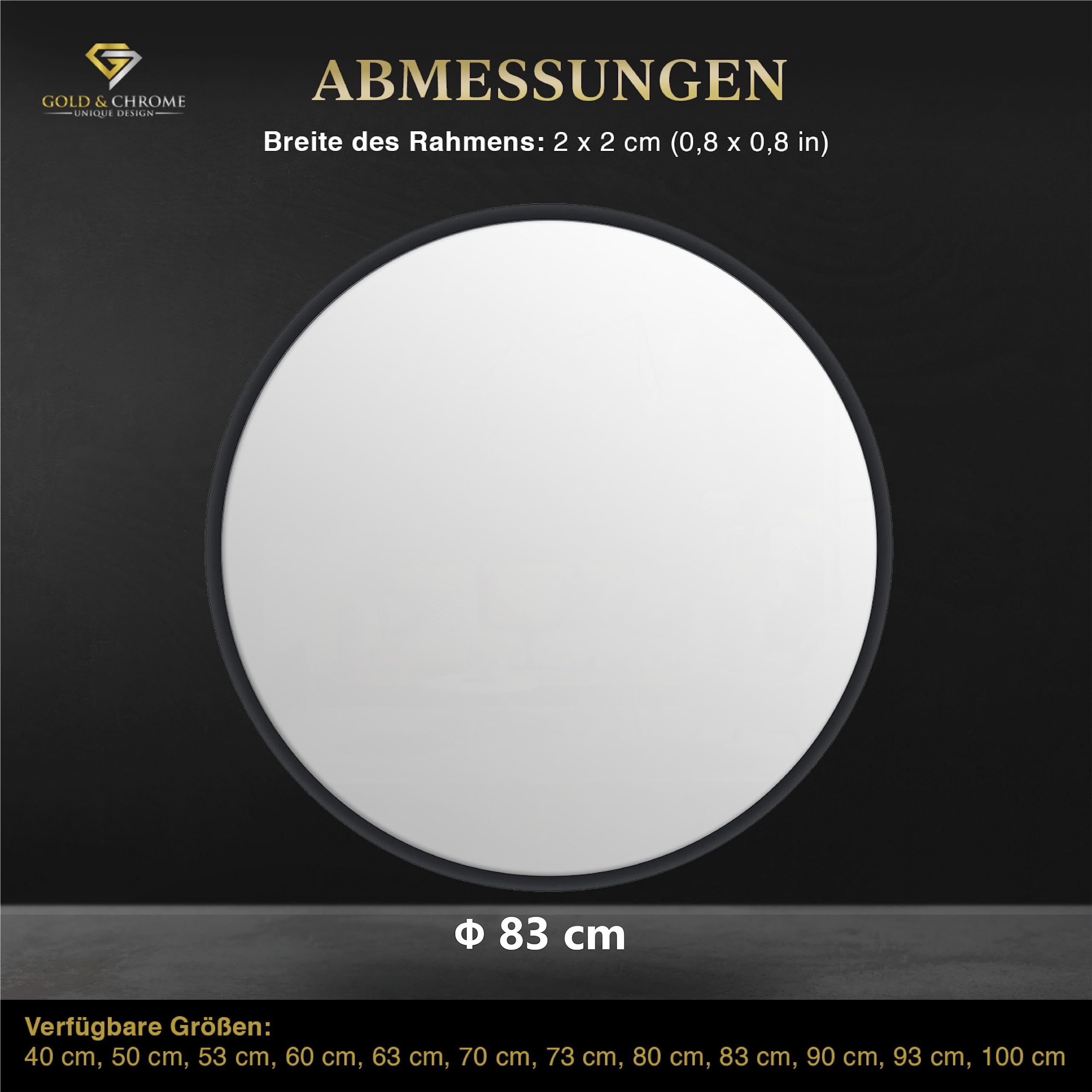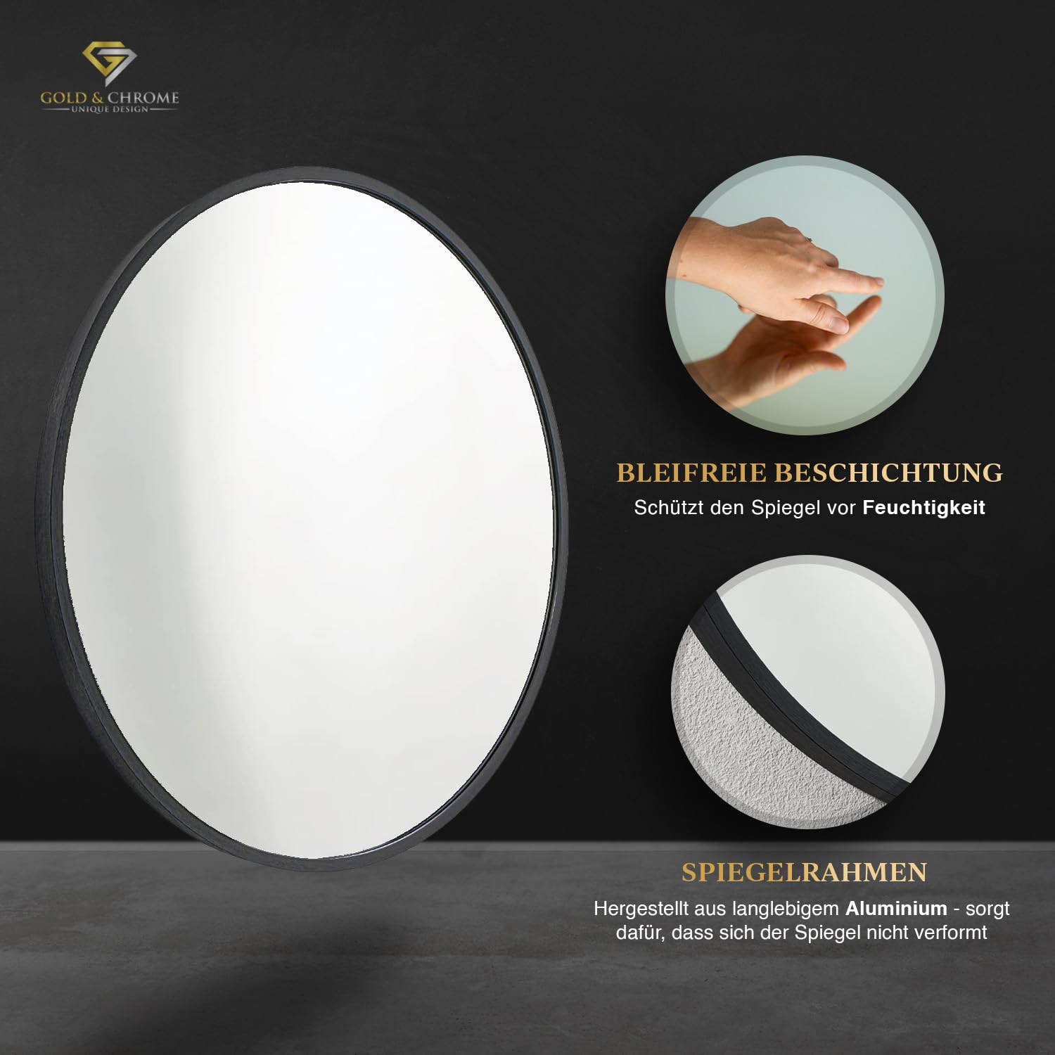 GOLD&CHROME UNIQUE DESIGN Dekorative Wandspiegel Rund ⌀83 cm mit Aluminiumrahmen - Spiegel Rund Schwarz mit Teflon beschichtet Spiegeloberfläche - Spiegel Wand Pulverbeschichteter Spiegelrahmen 2 cm