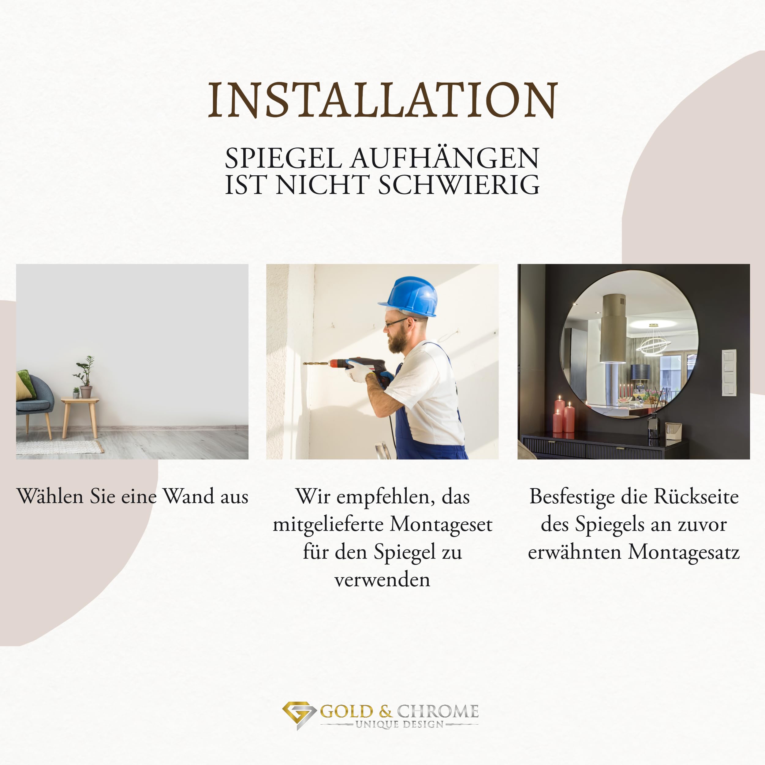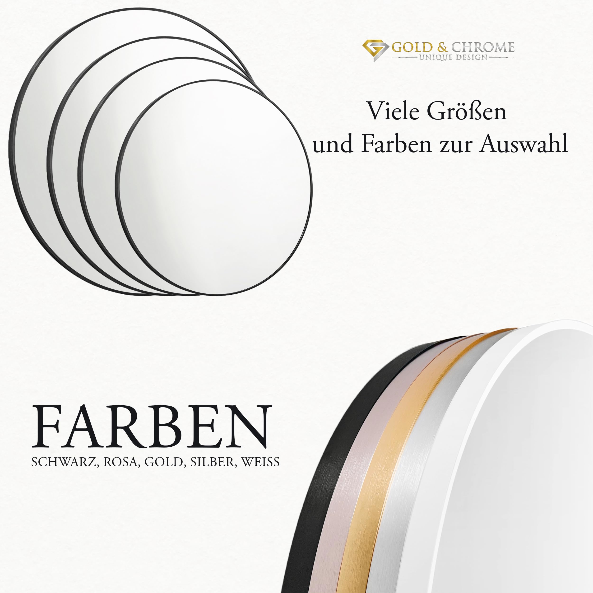 GOLD&CHROME UNIQUE DESIGN Dekorative Wandspiegel Rund ⌀50 cm Aluminiumrahmen - Spiegel Rund Weiss mit Teflon beschichtet Spiegeloberfläche - Spiegel Wand Pulverbeschichteter Spiegelrahmen 0,9 cm