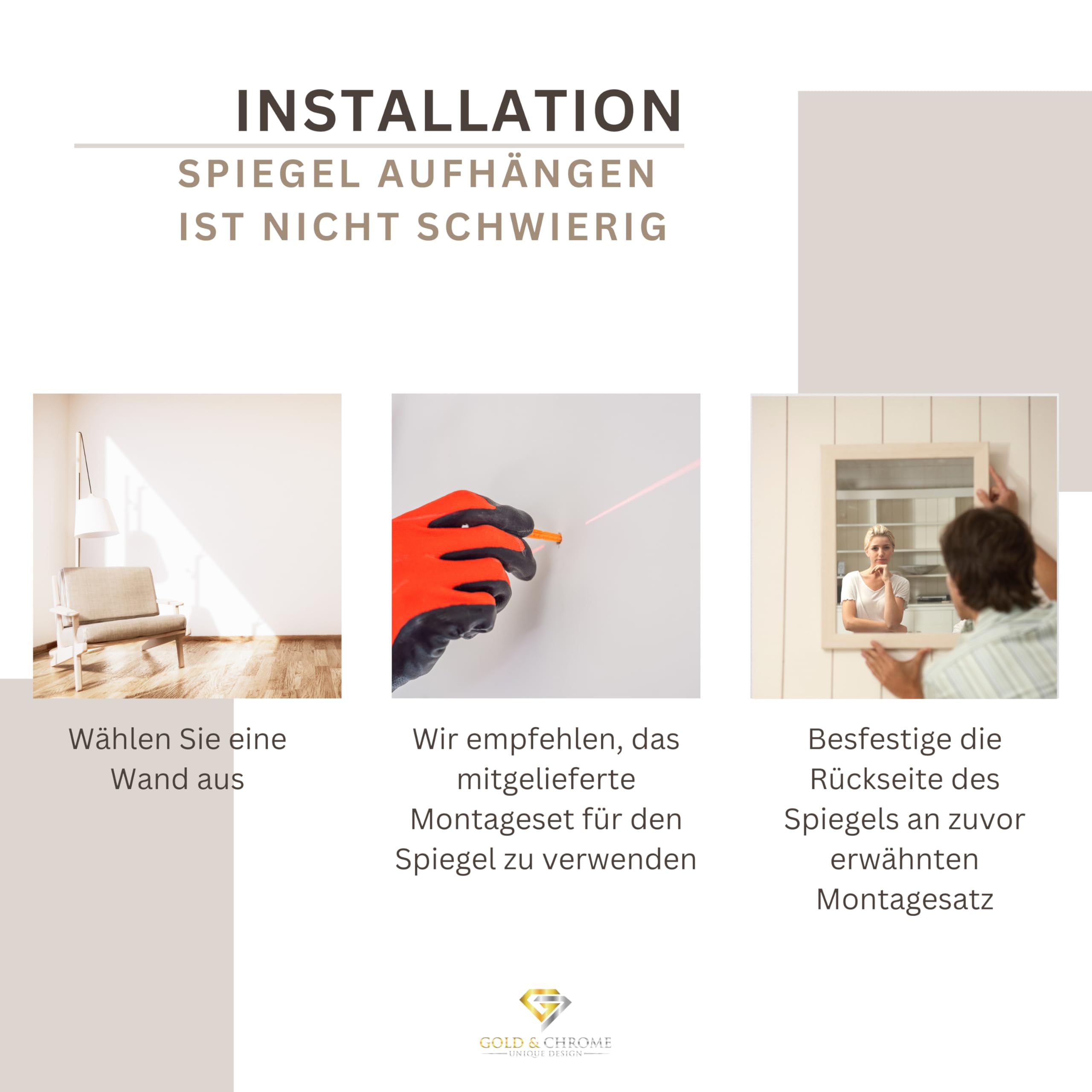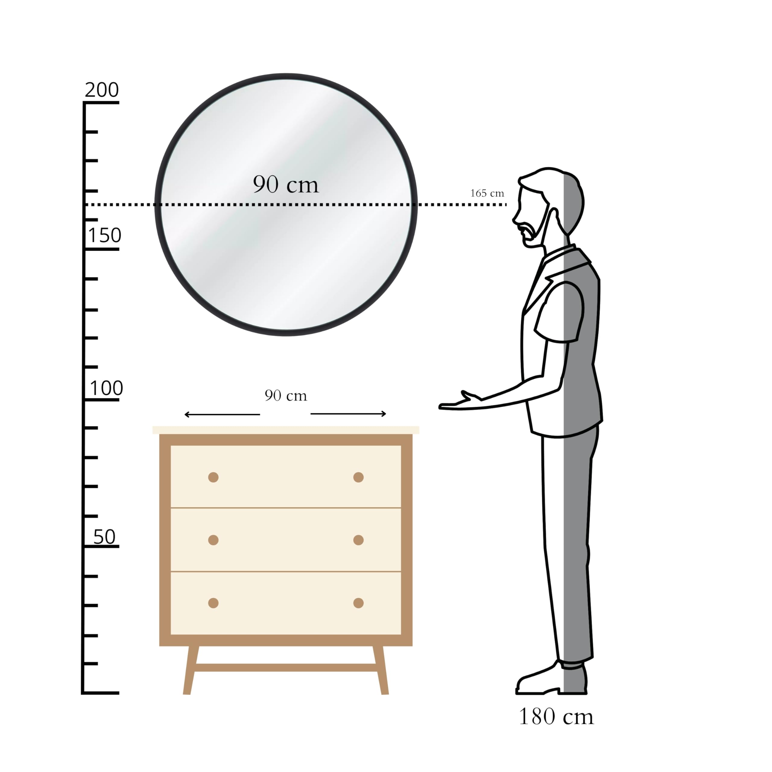 GOLD&CHROME UNIQUE DESIGN Dekorative Wandspiegel Rund ⌀90 cm Aluminiumrahmen - Spiegel Rund Gold mit Teflon beschichtet Spiegeloberfläche - Spiegel Wand Pulverbeschichteter Spiegelrahmen 0,9 cm