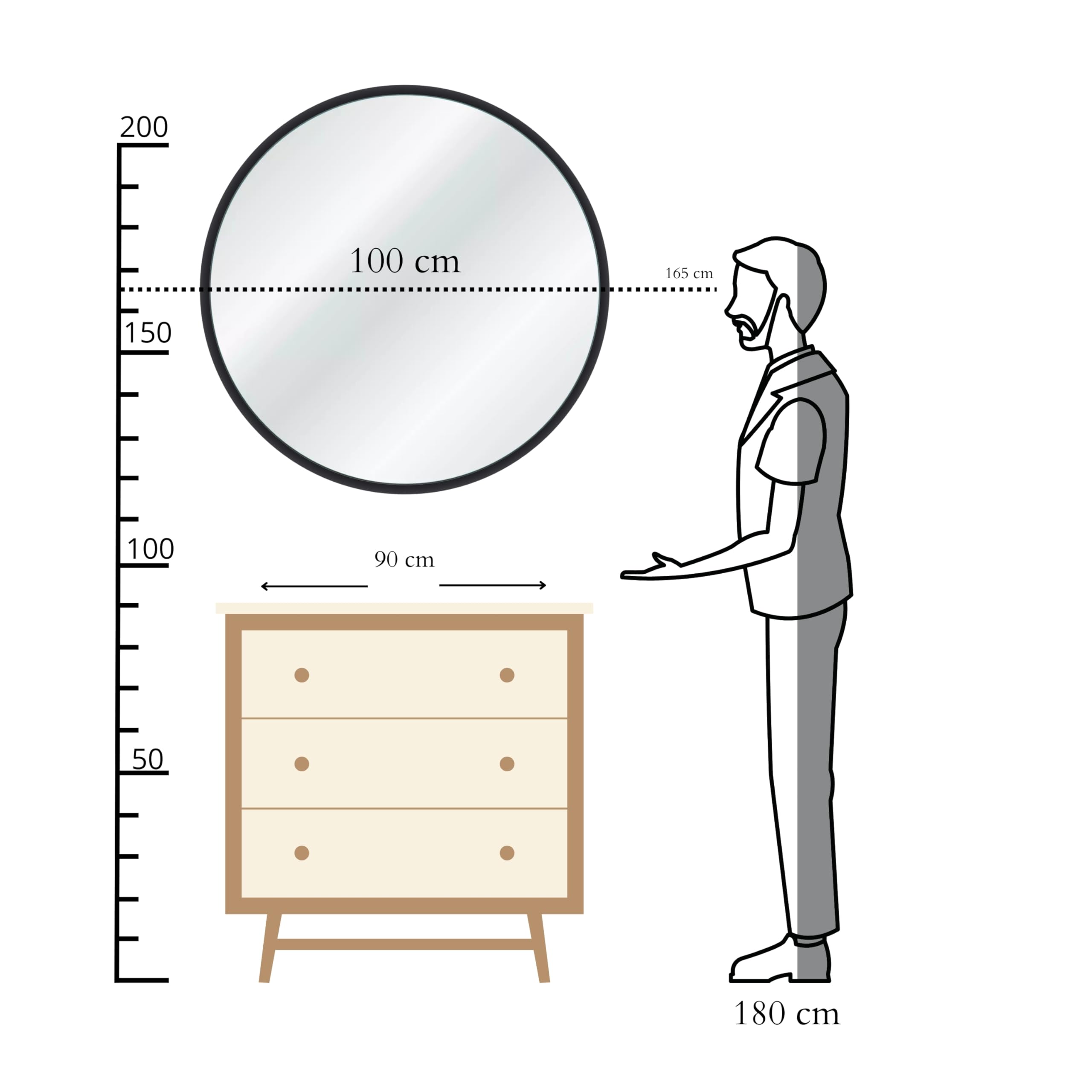 GOLD&CHROME UNIQUE DESIGN Dekorative Wandspiegel Rund ⌀100 cm Aluminiumrahmen - Spiegel Rund Weiss mit Teflon beschichtet Spiegeloberfläche - Spiegel Wand Pulverbeschichteter Spiegelrahmen 0,9 cm