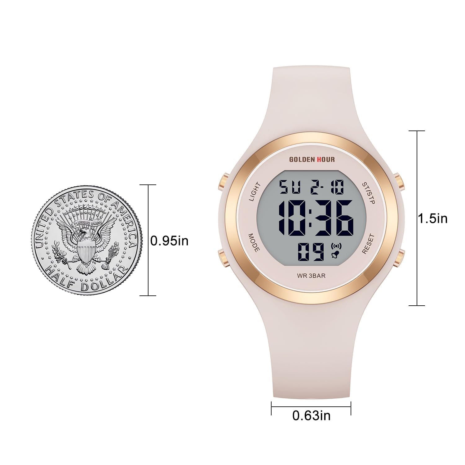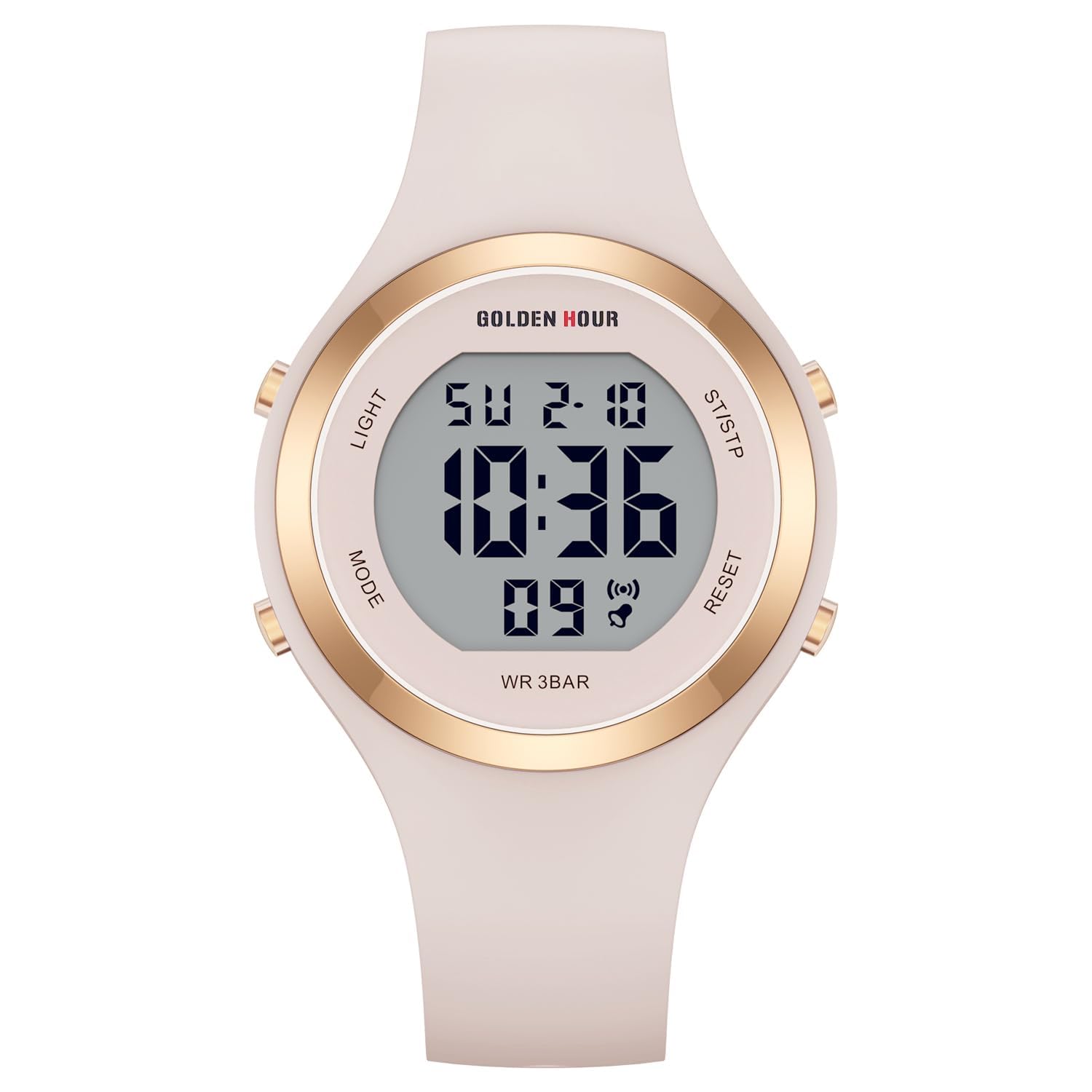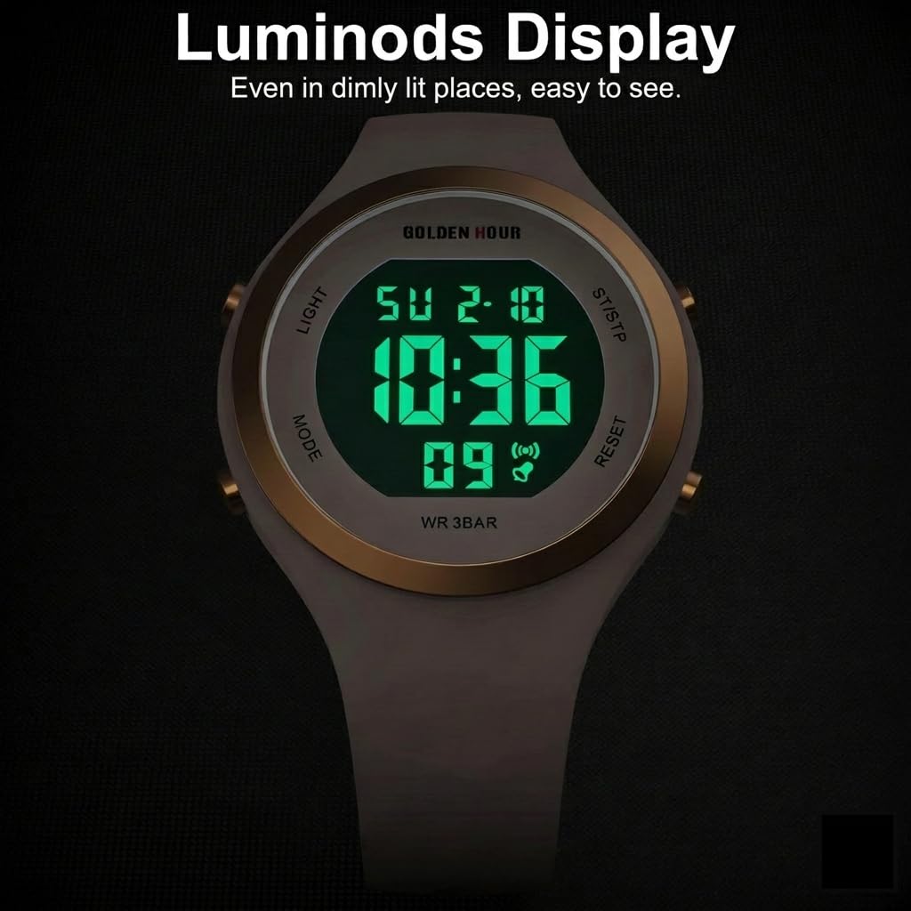GOLDEN HOUR Digital Uhr Damen 5ATM wasserdichte Sport Chronograph Silikonarmband Armbanduhr Damen Sportlich Elegant Uhren Damen mit Datum Leuchtend Leicht ablesbares Zifferblatt
