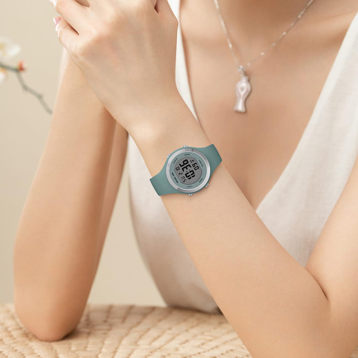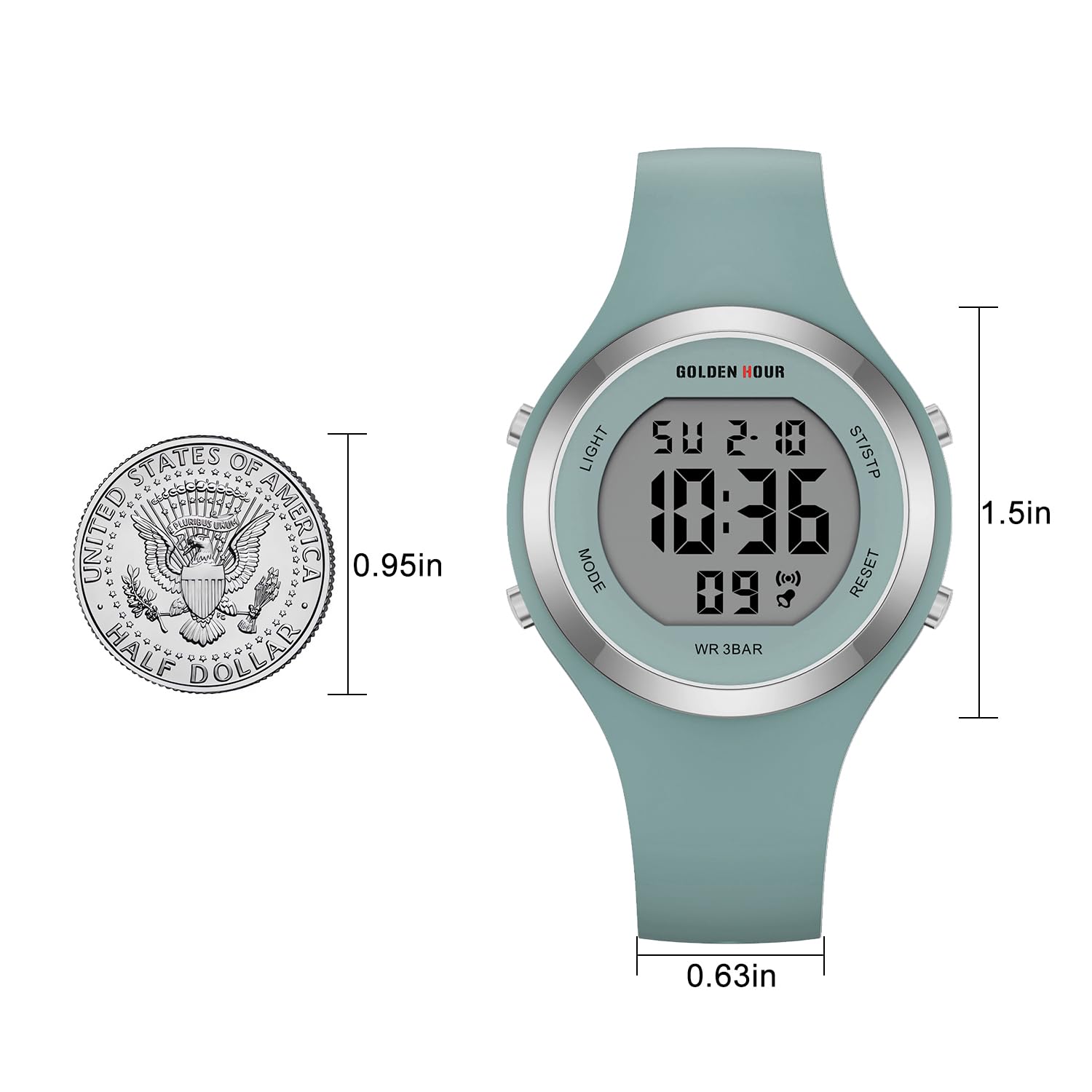 GOLDEN HOUR Digital Uhr Damen 5ATM wasserdichte Sport Chronograph Silikonarmband Armbanduhr Damen Sportlich Elegant Uhren Damen mit Datum Leuchtend Leicht ablesbares Zifferblatt