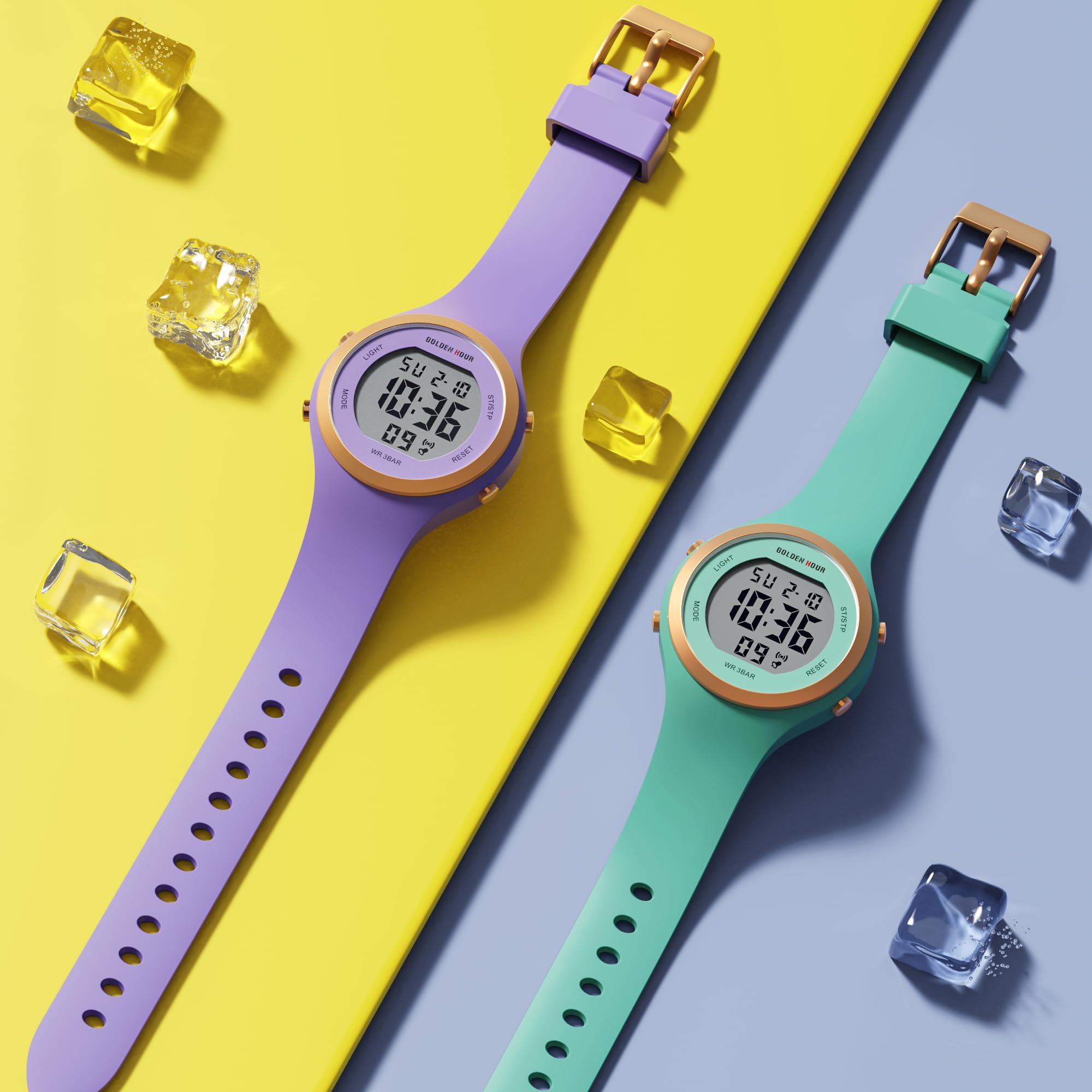 GOLDEN HOUR Digital Uhr Damen 5ATM wasserdichte Sport Chronograph Silikonarmband Armbanduhr Damen Sportlich Elegant Uhren Damen mit Datum Leuchtend Leicht ablesbares Zifferblatt