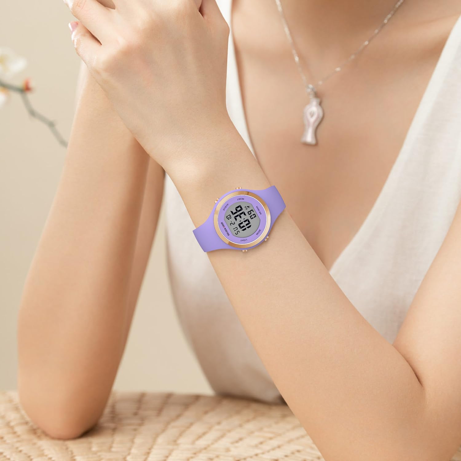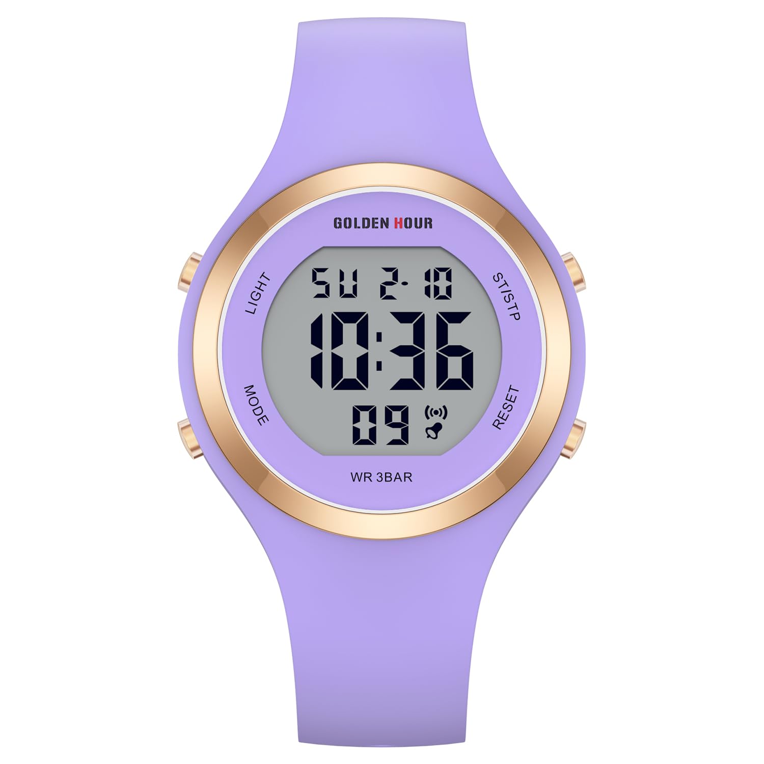 GOLDEN HOUR Digital Uhr Damen 5ATM wasserdichte Sport Chronograph Silikonarmband Armbanduhr Damen Sportlich Elegant Uhren Damen mit Datum Leuchtend Leicht ablesbares Zifferblatt