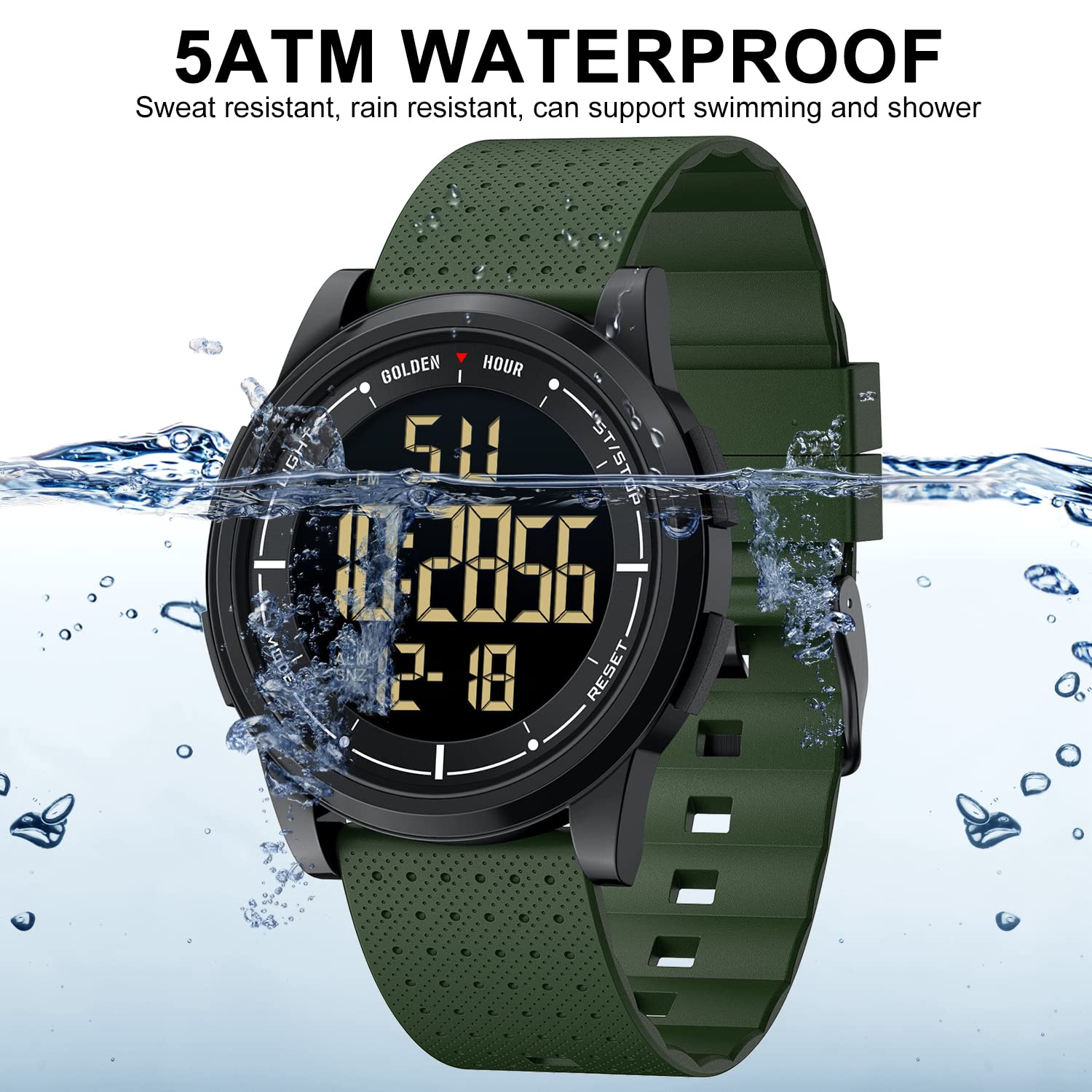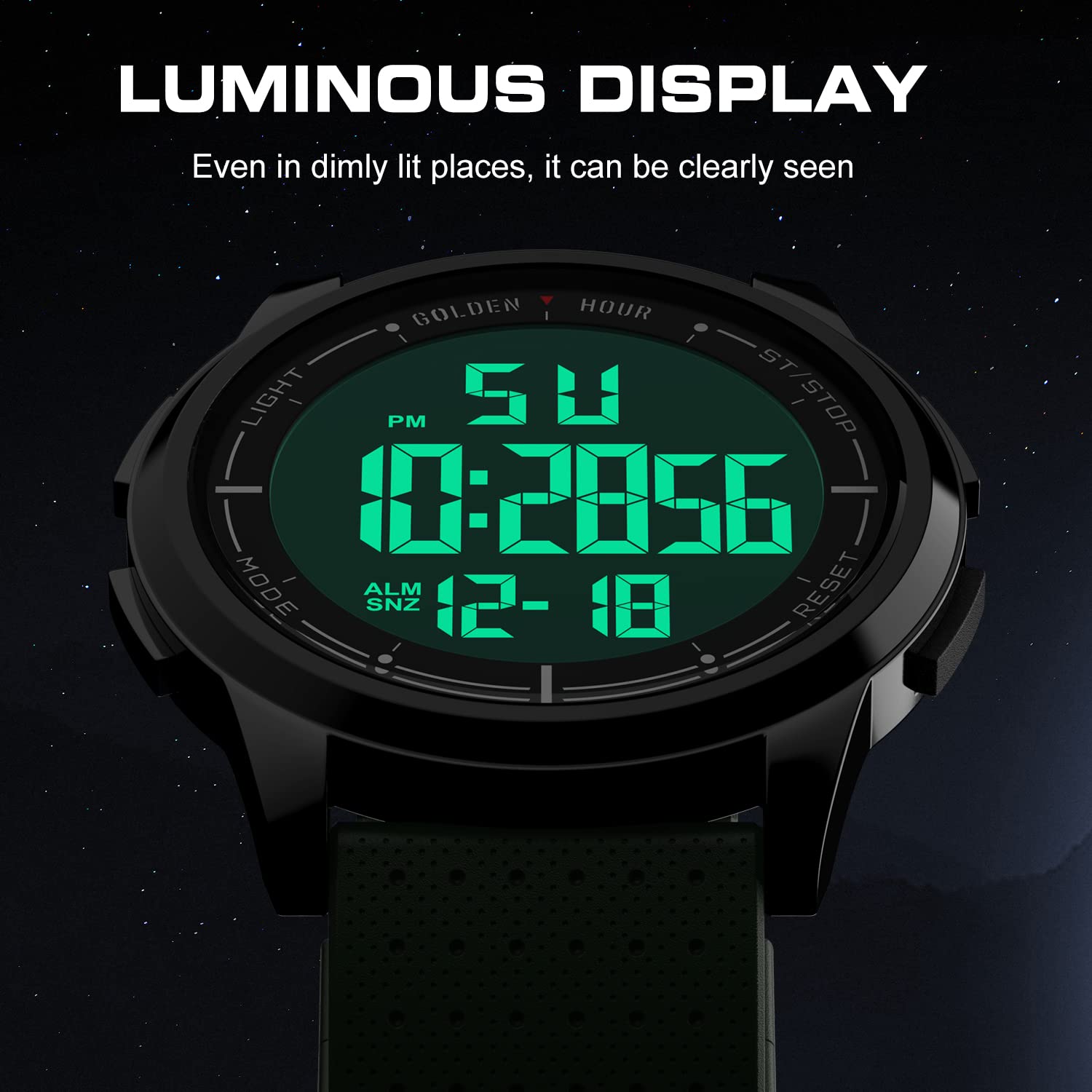 GOLDEN HOUR Ultradünne Minimalistische Sportuhr wasserdichte Digitaluhren Herren mit Weitwinkel-Metallgehäuse Helles Display Gummiband Armbanduhr für Herren Damen