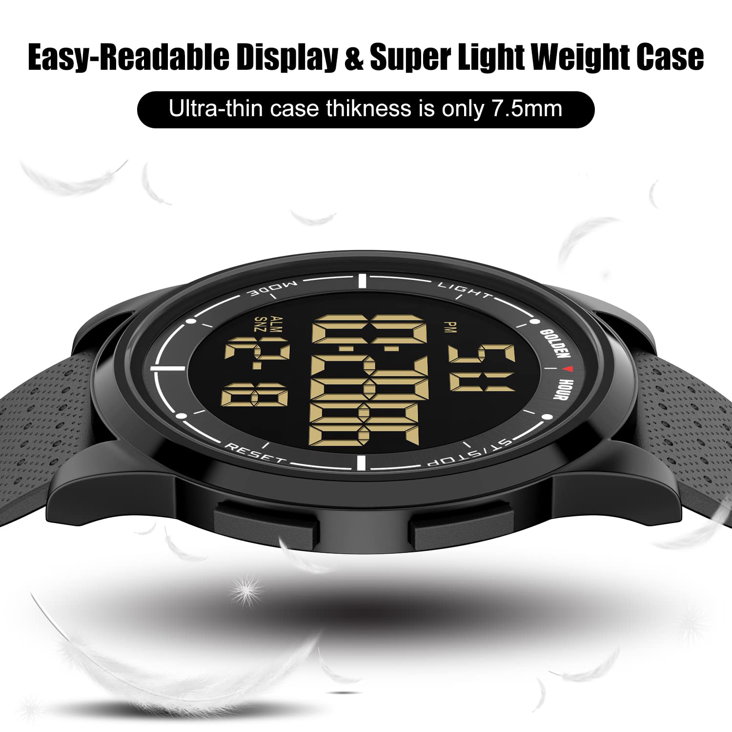 GOLDEN HOUR Ultradünne Minimalistische Sportuhr wasserdichte Digitaluhren Herren mit Weitwinkel-Metallgehäuse Helles Display Gummiband Armbanduhr für Herren Damen