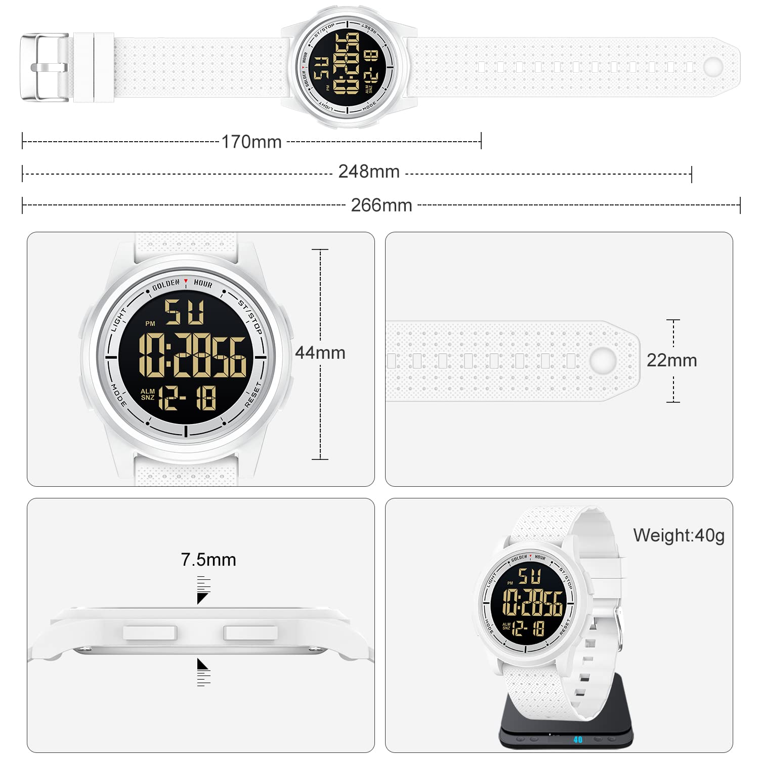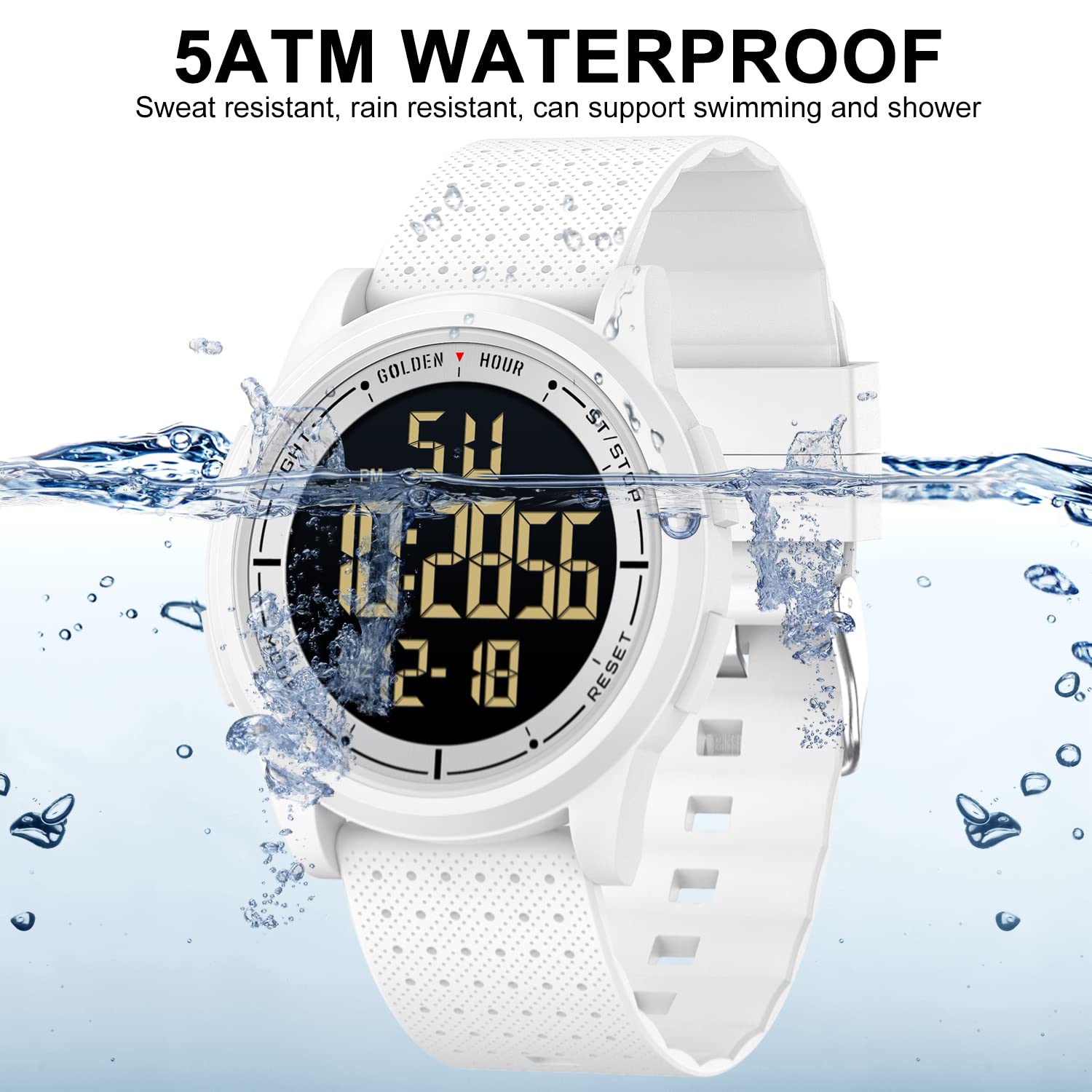 GOLDEN HOUR Ultradünne Minimalistische Sportuhr wasserdichte Digitaluhren Herren mit Weitwinkel-Metallgehäuse Helles Display Gummiband Armbanduhr für Herren Damen