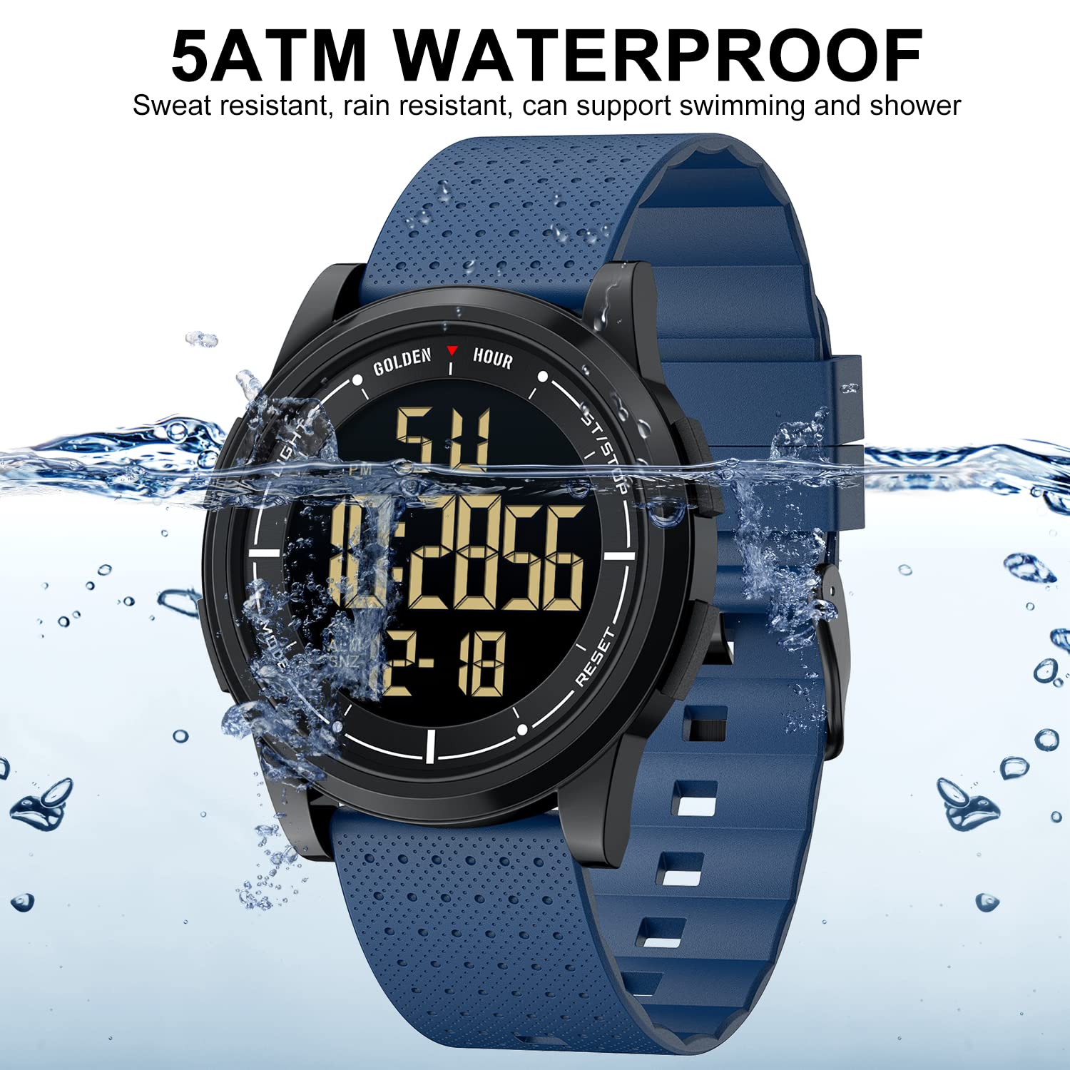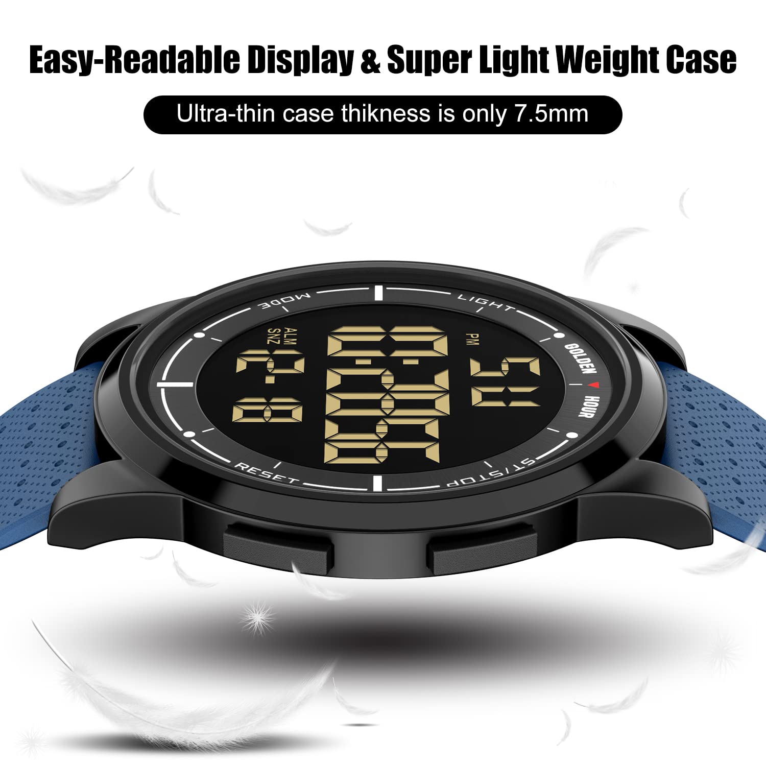 GOLDEN HOUR Ultradünne Minimalistische Sportuhr wasserdichte Digitaluhren Herren mit Weitwinkel-Metallgehäuse Helles Display Gummiband Armbanduhr für Herren Damen
