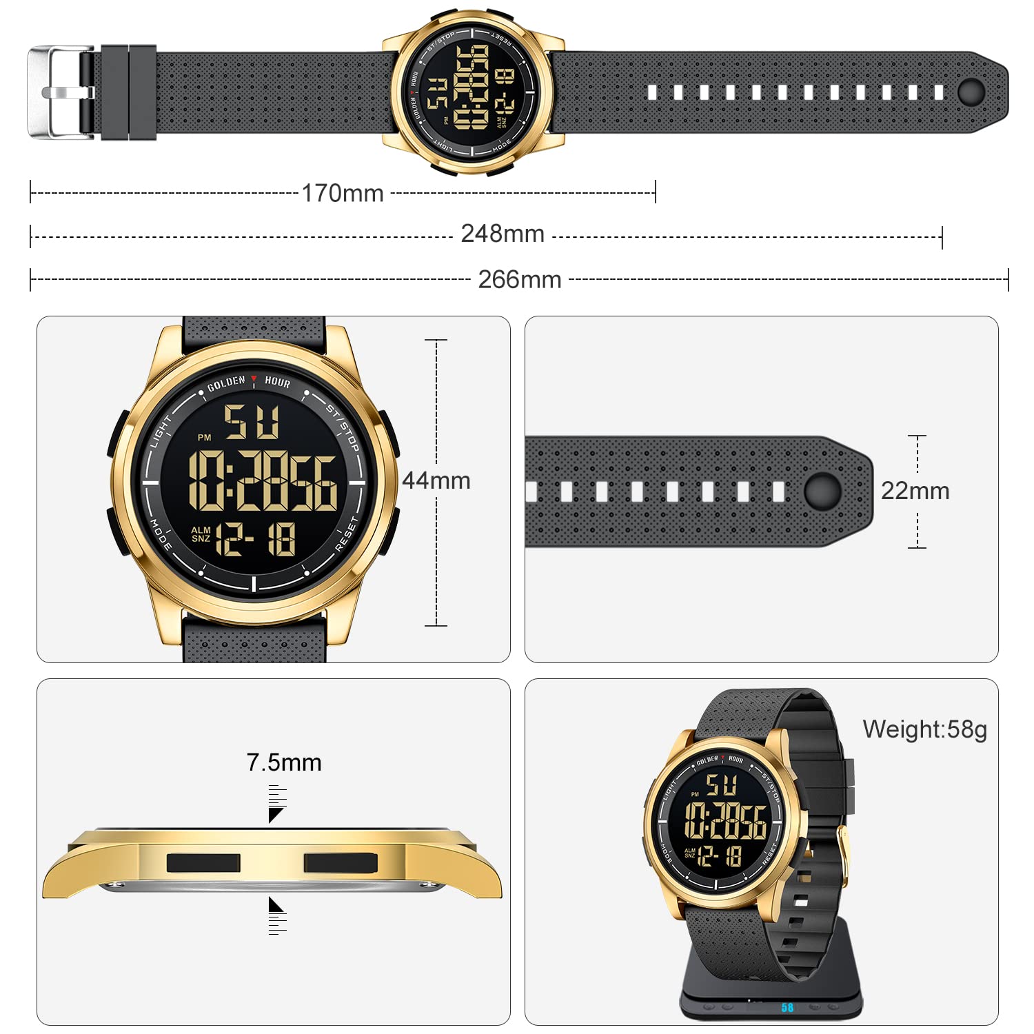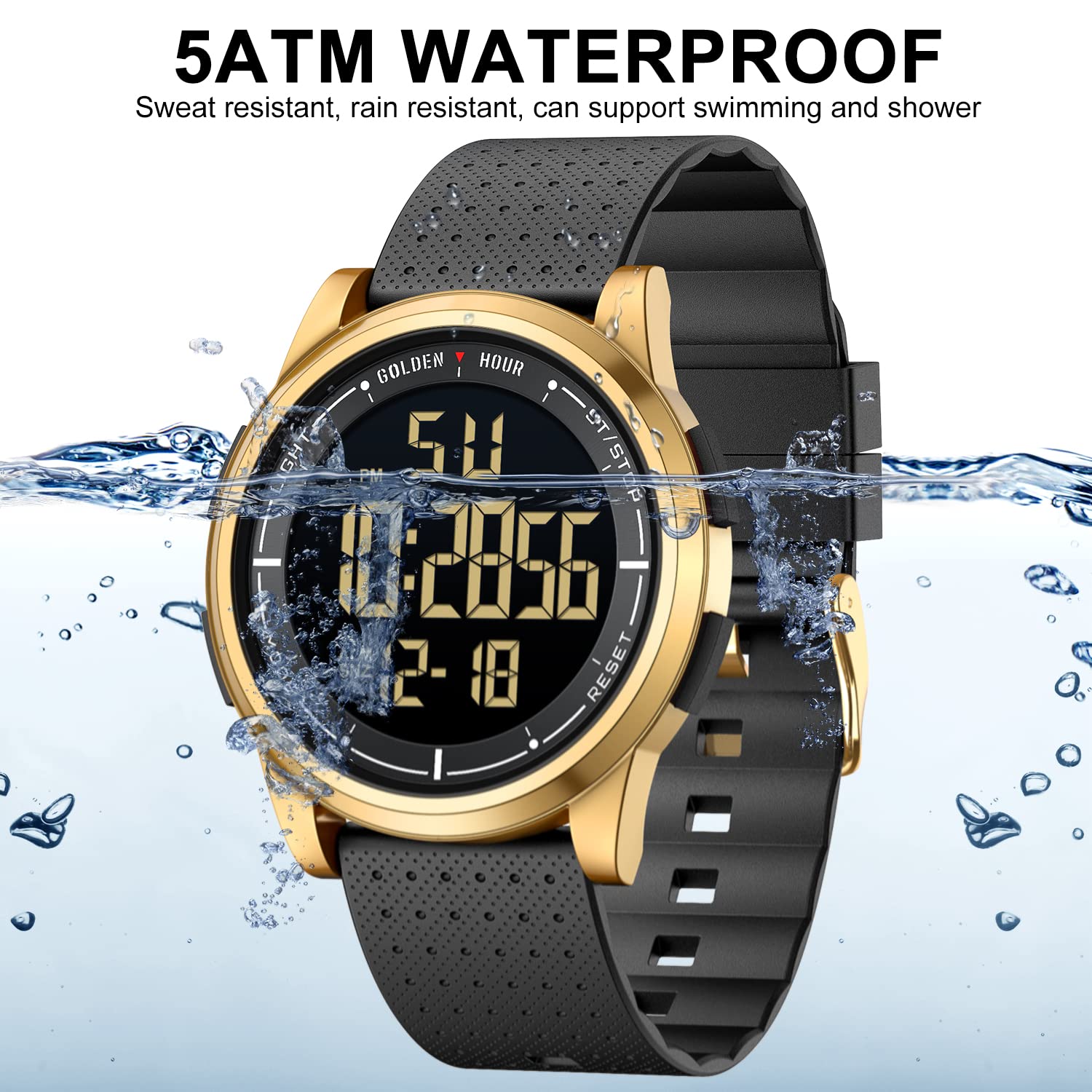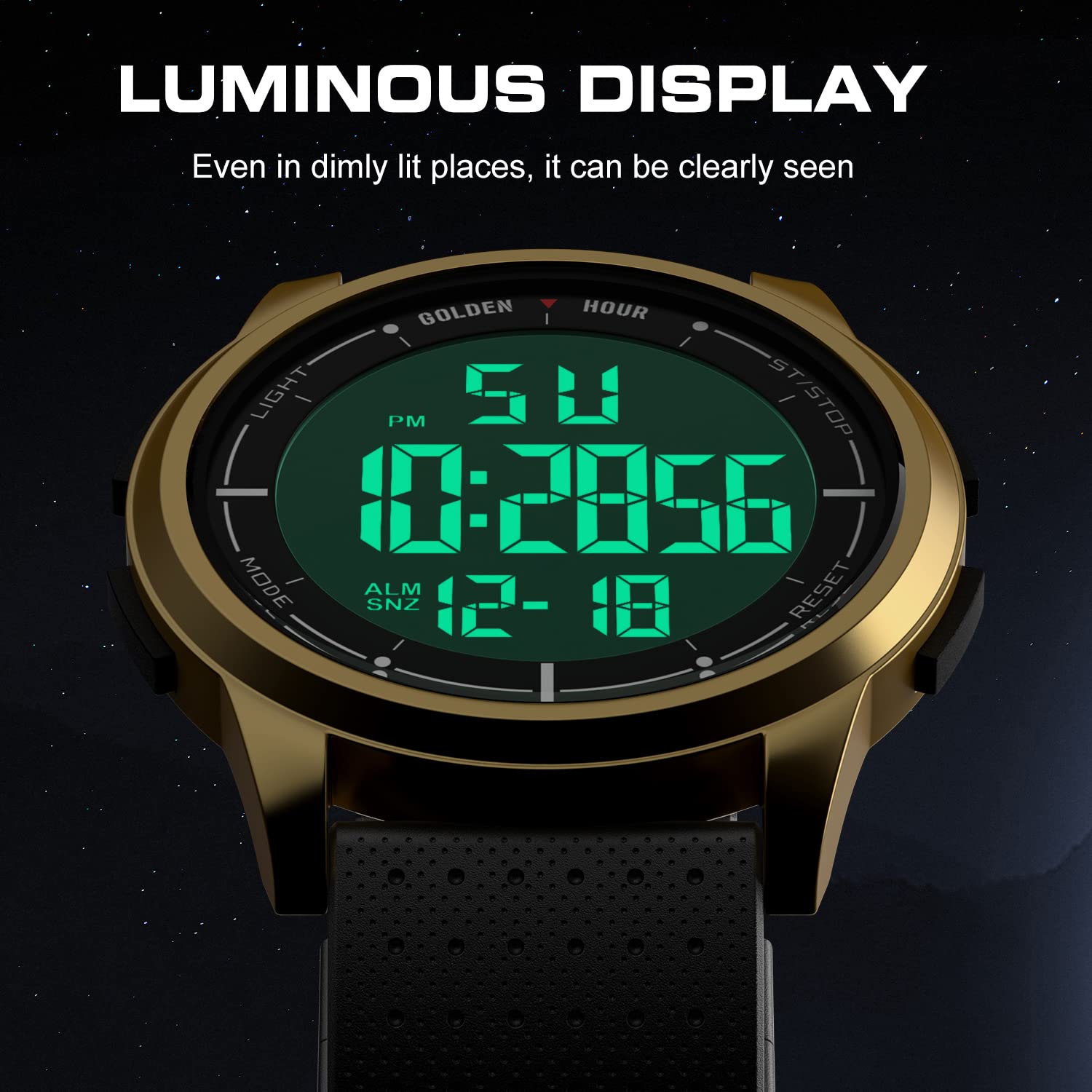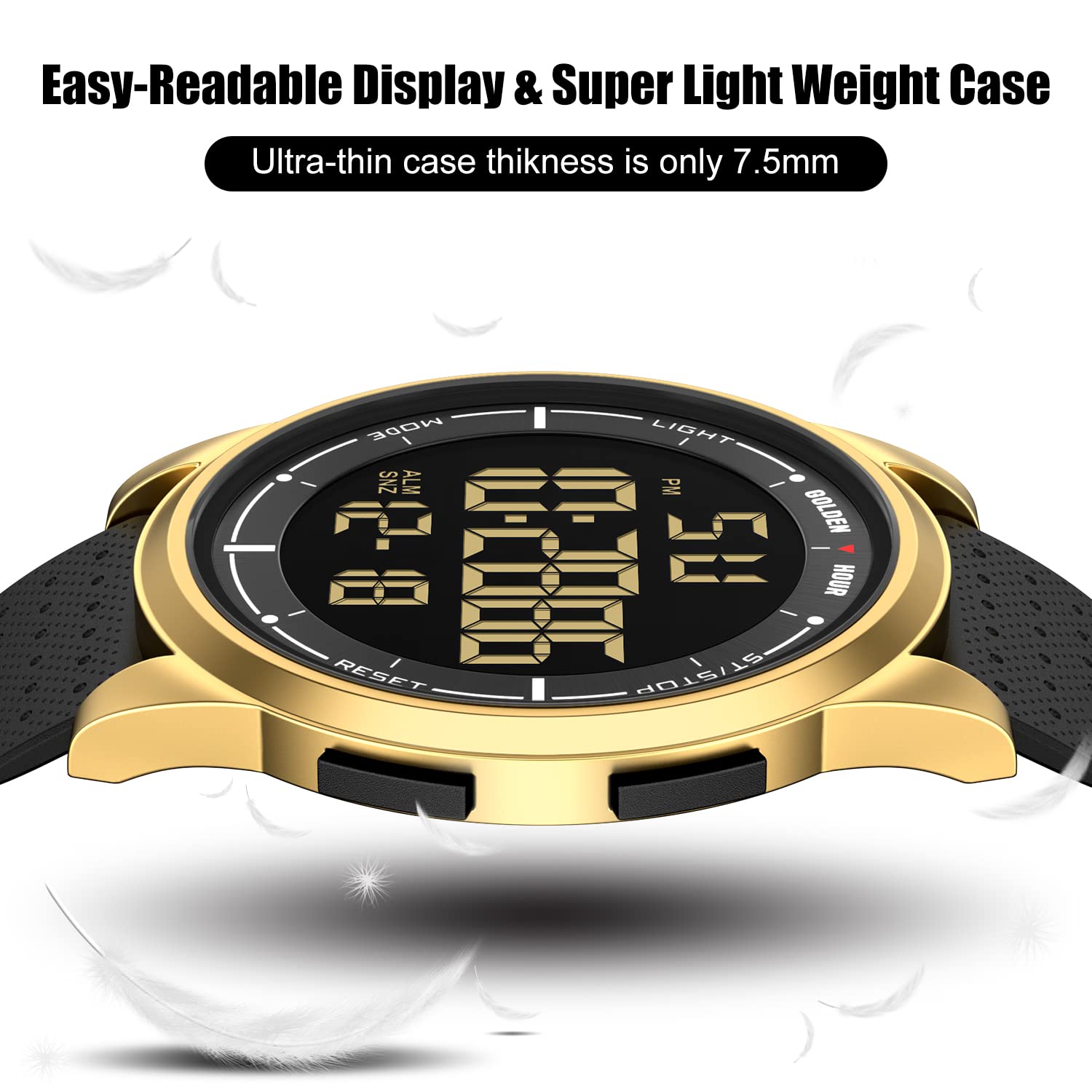 GOLDEN HOUR Ultradünne Minimalistische Sportuhr wasserdichte Digitaluhren Herren mit Weitwinkel-Metallgehäuse Helles Display Gummiband Armbanduhr für Herren Damen