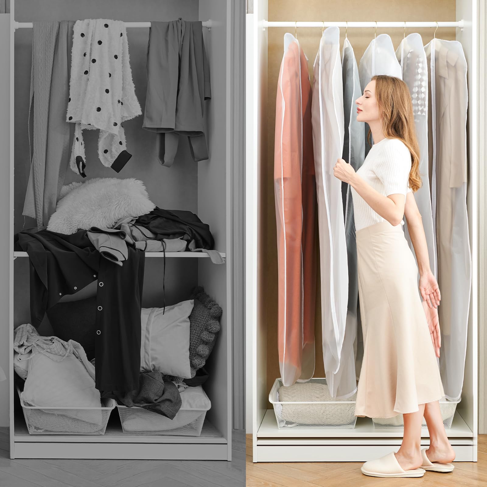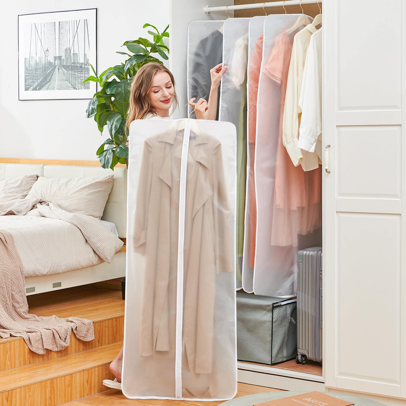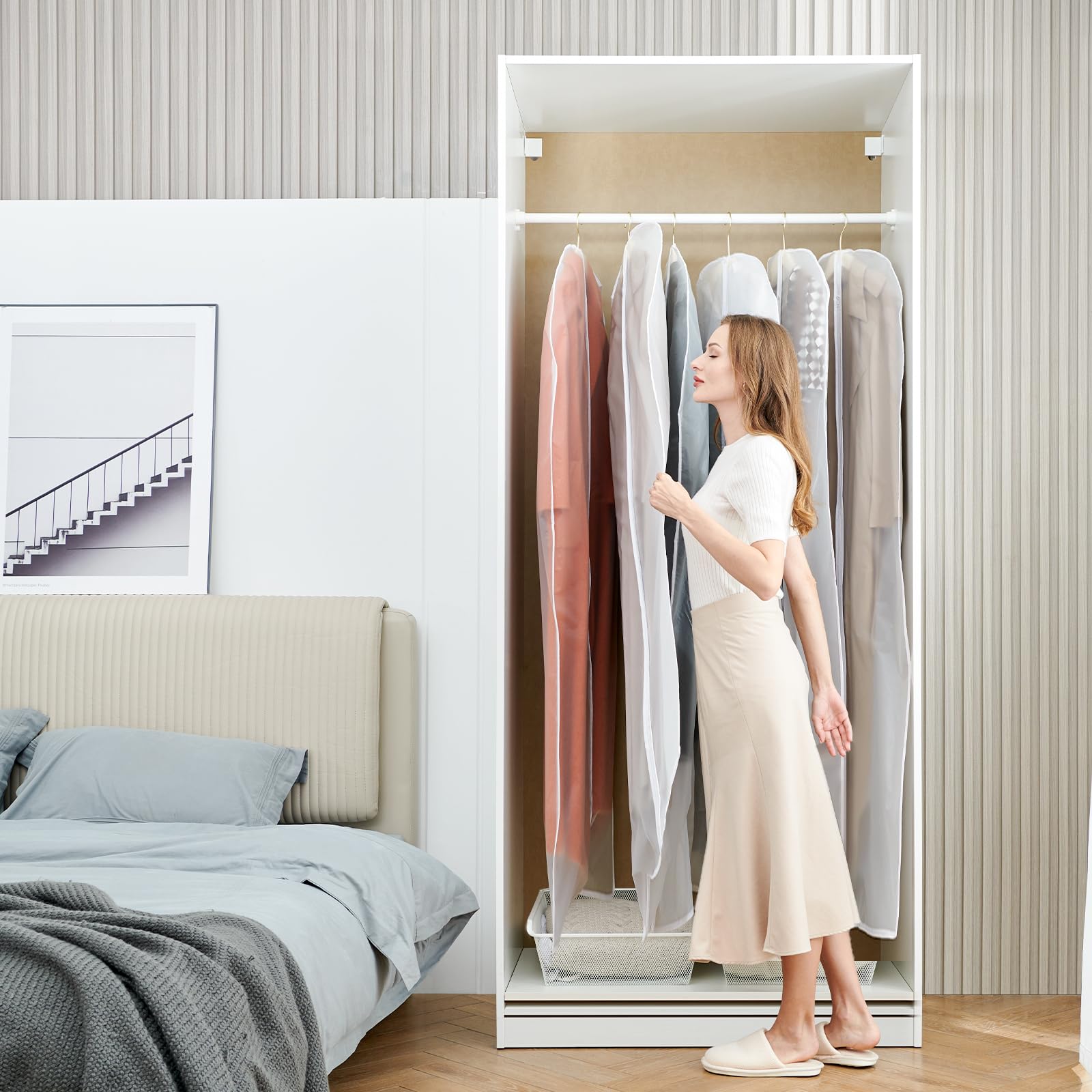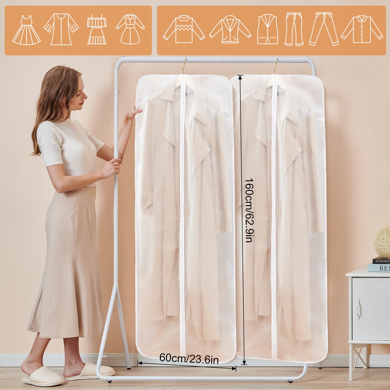 GoMaihe Kleidersack 8-Stück Lang 60CM×160CM Transparent Anzug: Kleidersäcke mit Reissverschluss für Anzüge Kleider Abendkleider Jacken Mäntel Kleidung Aufbewahrung Weiss