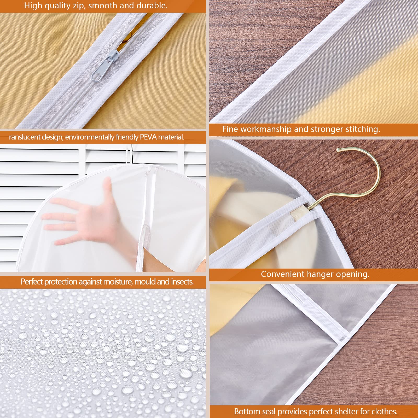 Schützen Sie Ihre Kleidung vor Schäden und Ablagerungen mit unserem GoMaihe Kleidungsschutz-Set. Diese Beutel mit 12pcs Kleidungsabdeckung, hergestellt aus umweltfreundlichem PEVA-Material, ist wasserdicht, staubdicht und widerstandsfähig gegen Schimmel und Insekten. Mit zwei Grössen (M und L) ist es für fast jedes Outfit geeignet, einschliesslich Jacken, Anzügen und Kleider. Das Design ist durchsichtig, um Ihre Kleidung leicht zu finden und verfügt über einen Reissverschluss für eine einfache Handhabung. Der Bezug ist waschbar und kann mit einem feuchten Tuch abgewischt werden. Schützen Sie Ihre Kleidung vor Falten und Vergilben mit unserem GoMaihe Kleidungsschutz-Set.
