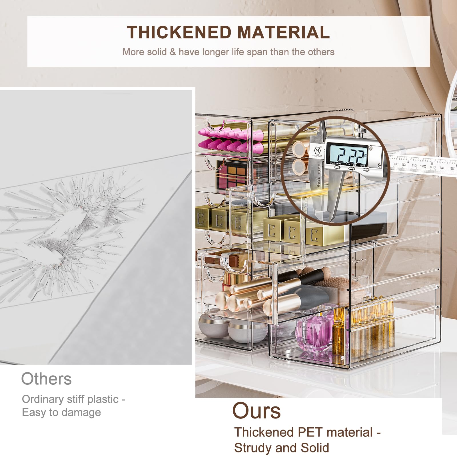 • TRANSPARENTE SICHTBARE AUFBEWAHRUNGSBOX MIT SCHUBLADEN - Aus transparentem, verdicktem PET-Material gefertigt, ist unsere Organizer mit Schubladen nicht nur stabil und haltbar, sondern bietet auch ein klares und ultimatives Benutzererlebnis. Die Suche nach Gegenständen ist kein Problem mehr; die transparente Schubladenbox macht jeden Zugriff leicht und freudig. BITTE NICHT IN DIE SPÜLMASCHINE GEBEN. Nur mit Seife und warmem Wasser reinigen.